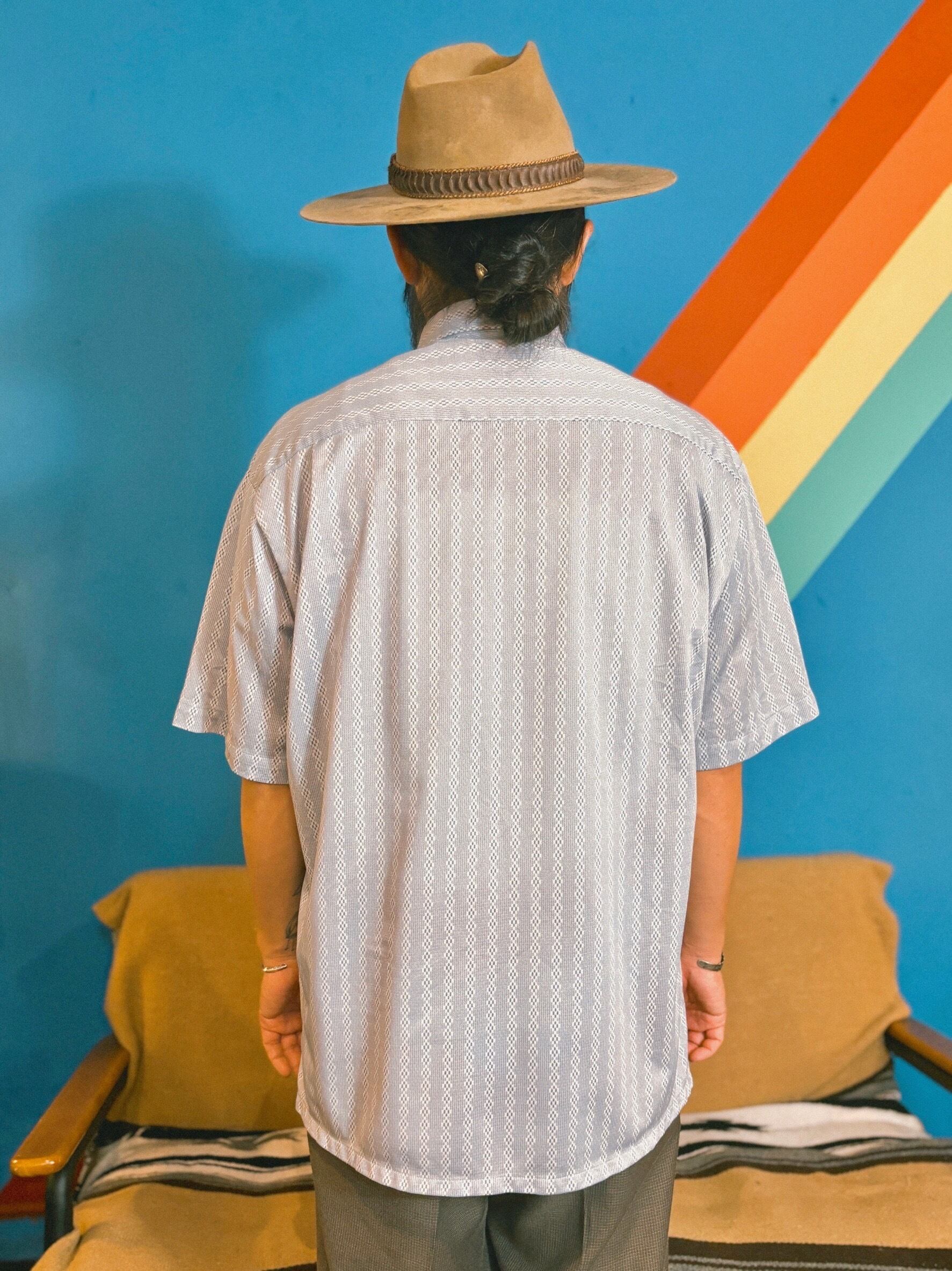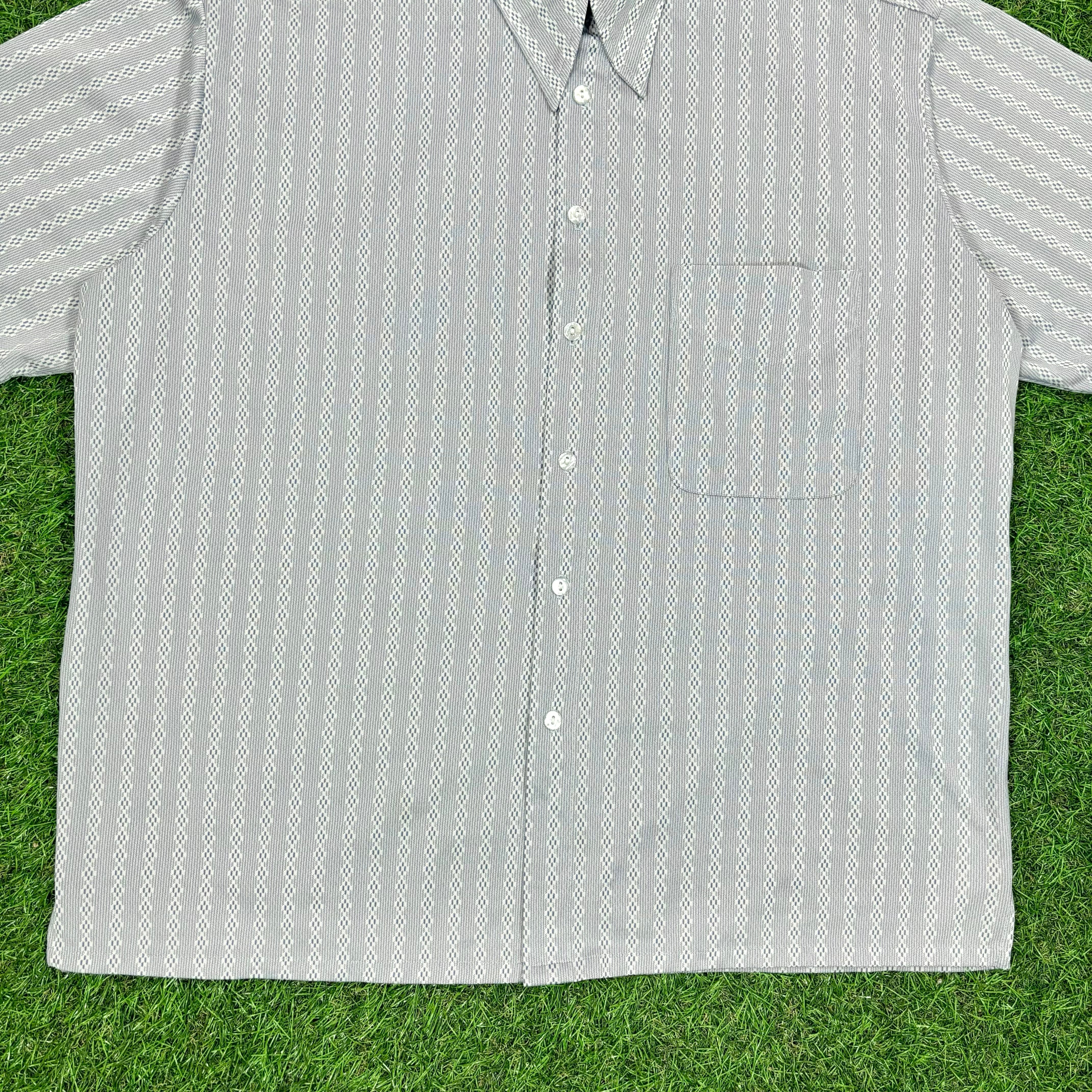 【Men's】 70s - 80s ネイビー 柄 ストライプ 半袖 シャツ / Vintage ヴィンテージ 古着 Made In MEXICO ポリシャツ 半袖シャツ メンズ 大人古着