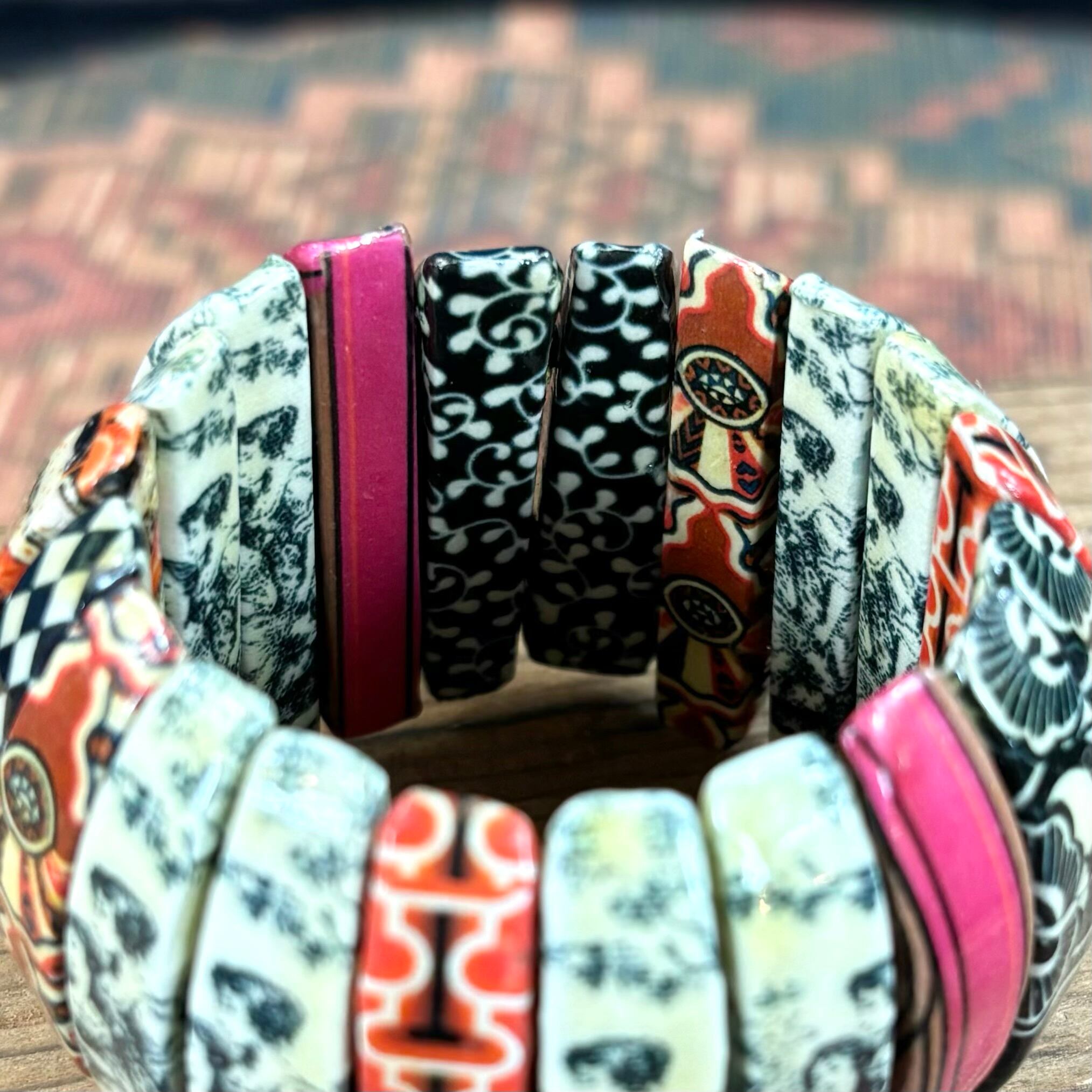 【Unisex】エスニック デザイン ブレスレット / 古着 バングル 総柄