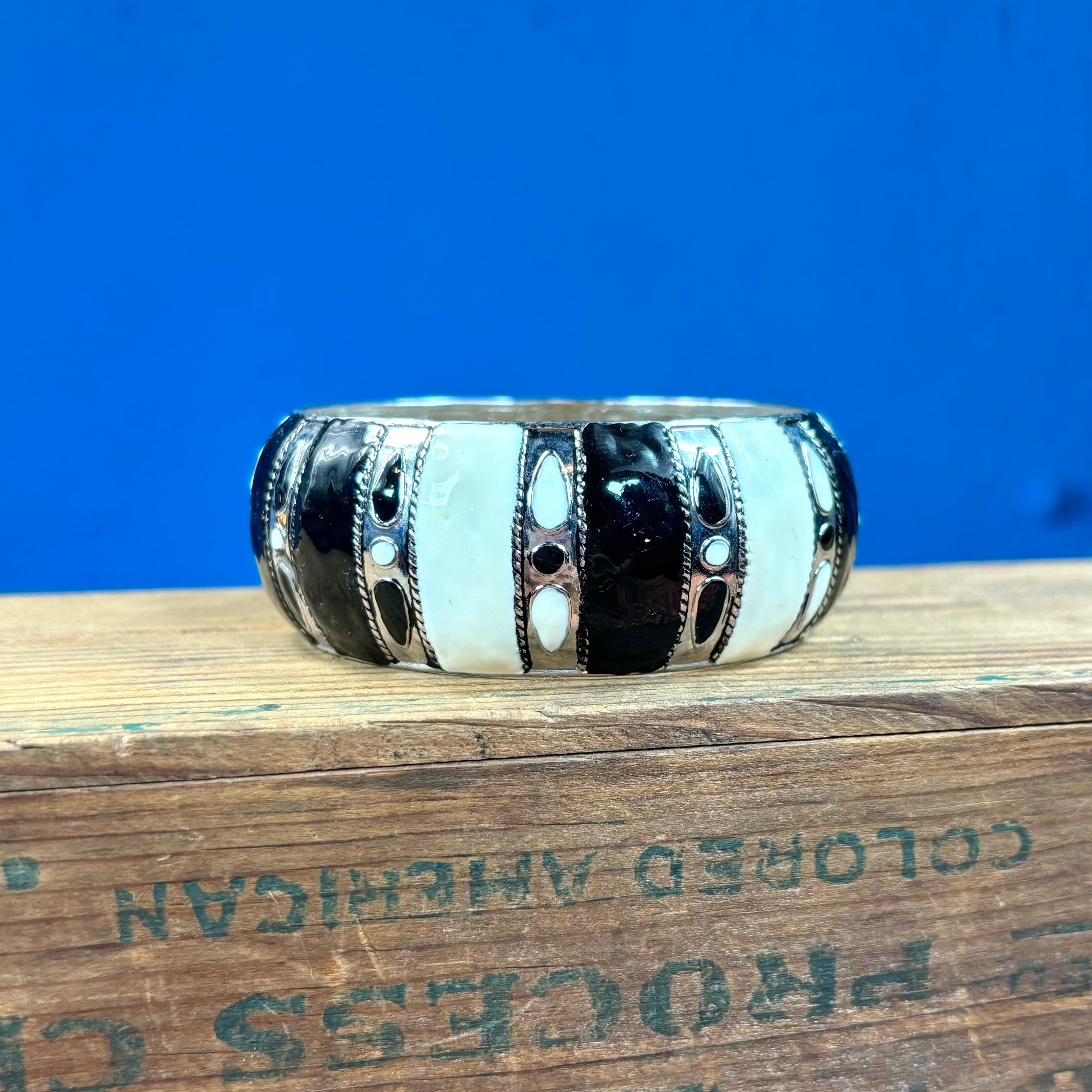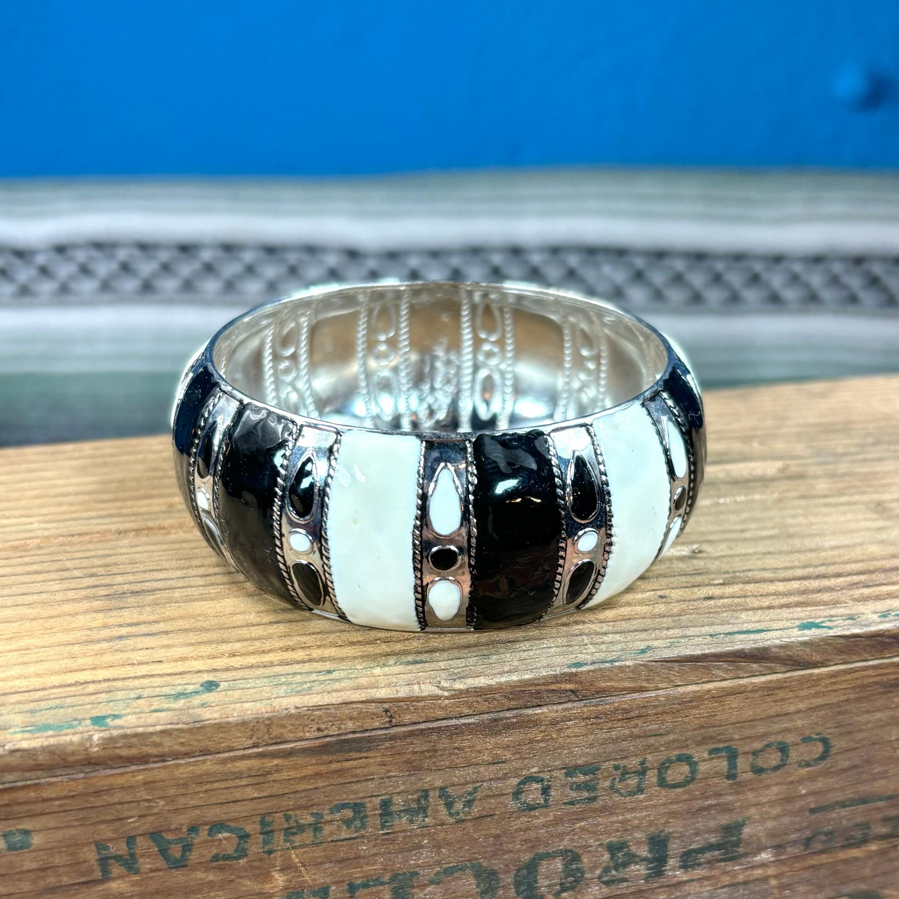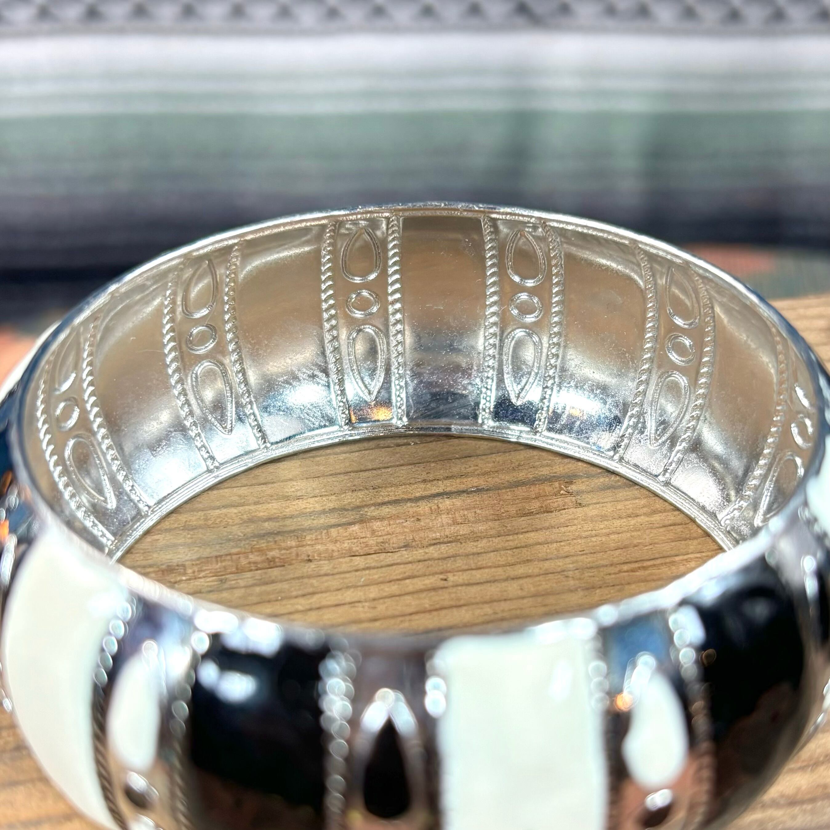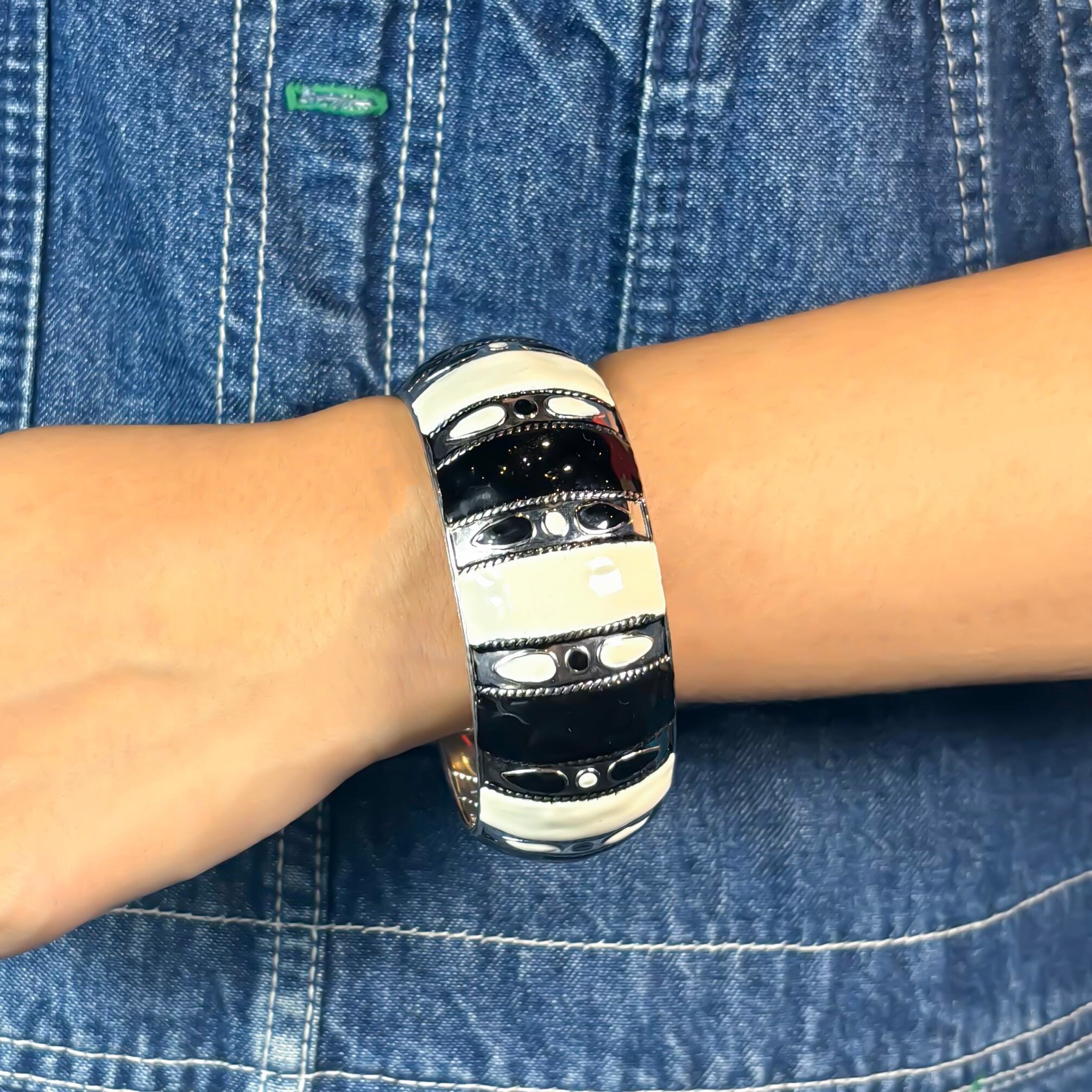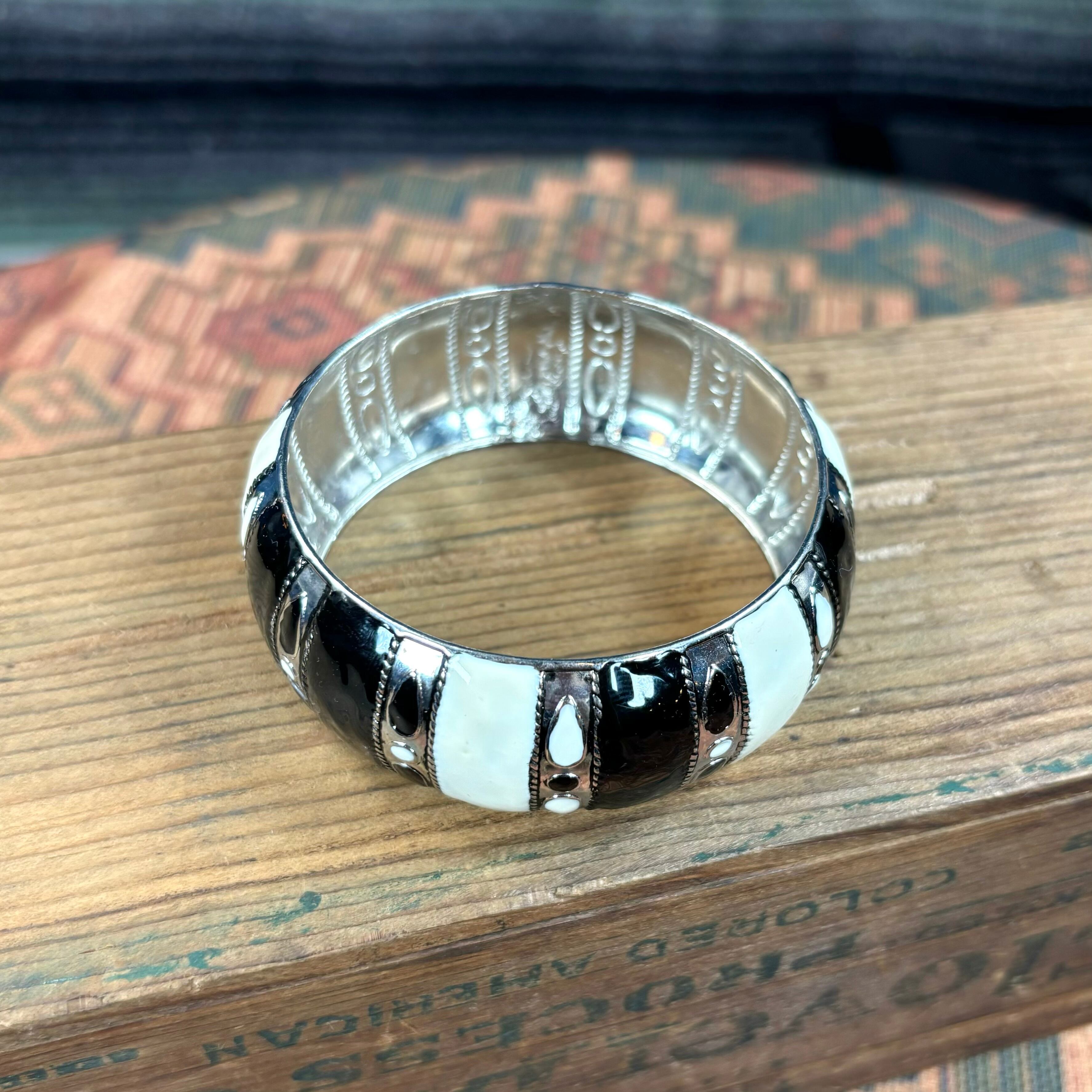 【Unisex】ホワイト ブラック デザイン バングル / 古着 黒 白 モノトーン