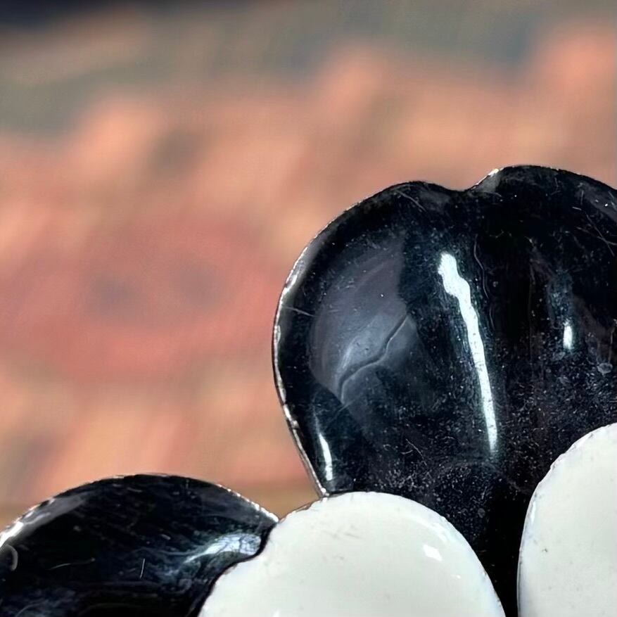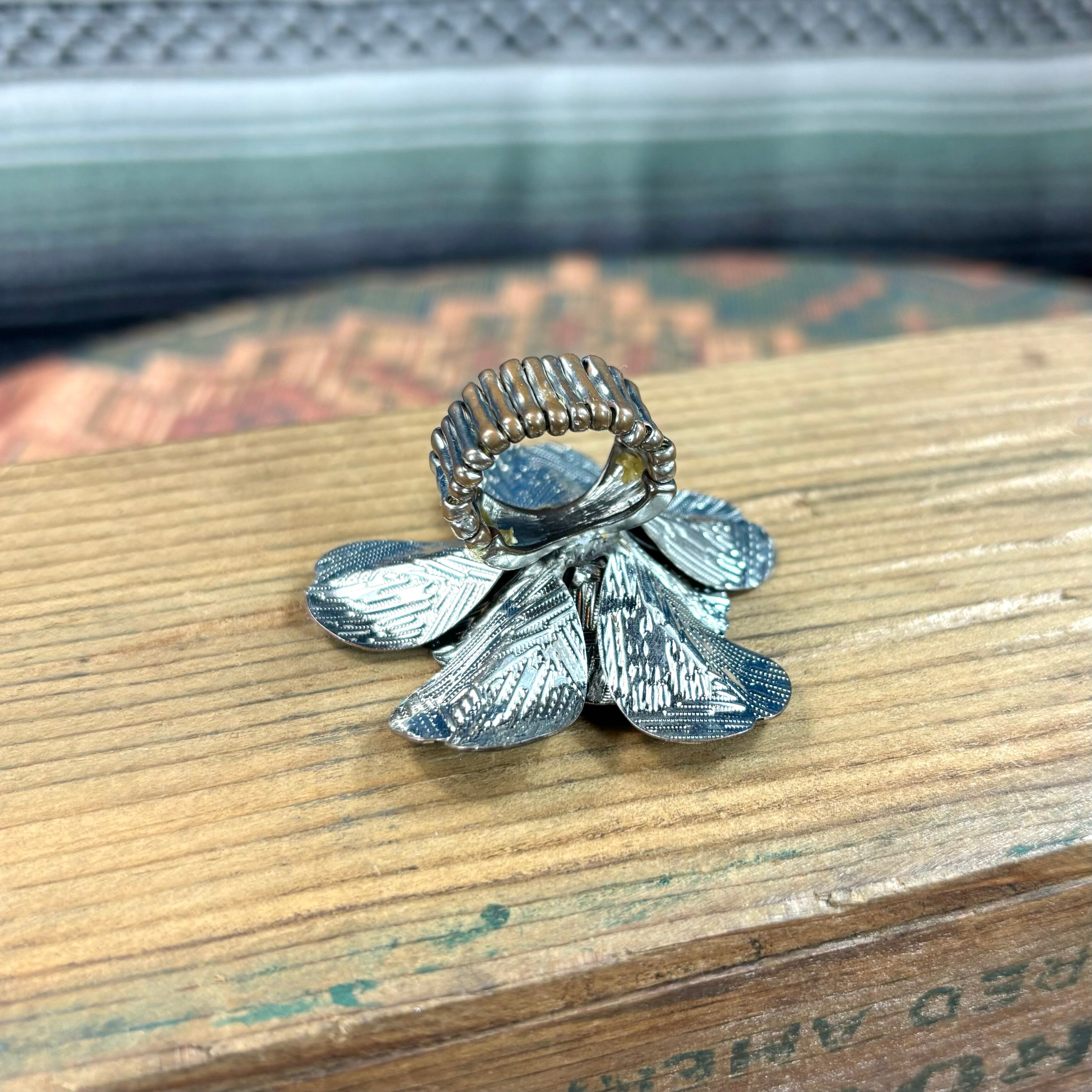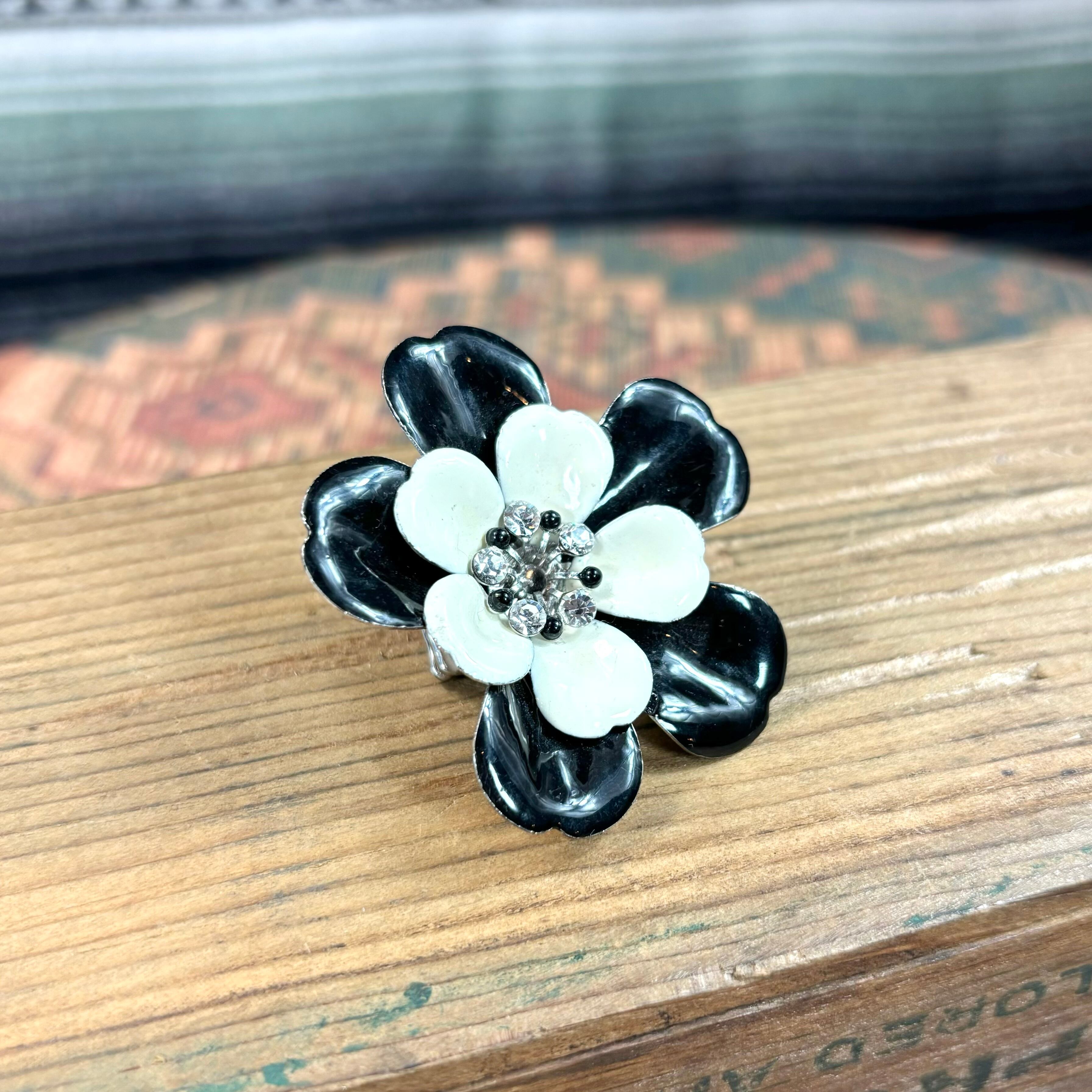 【Unisex】 ブラック ホワイト フラワー デザイン リング / 古着 指輪 アクセサリー 黒 白 ゴム