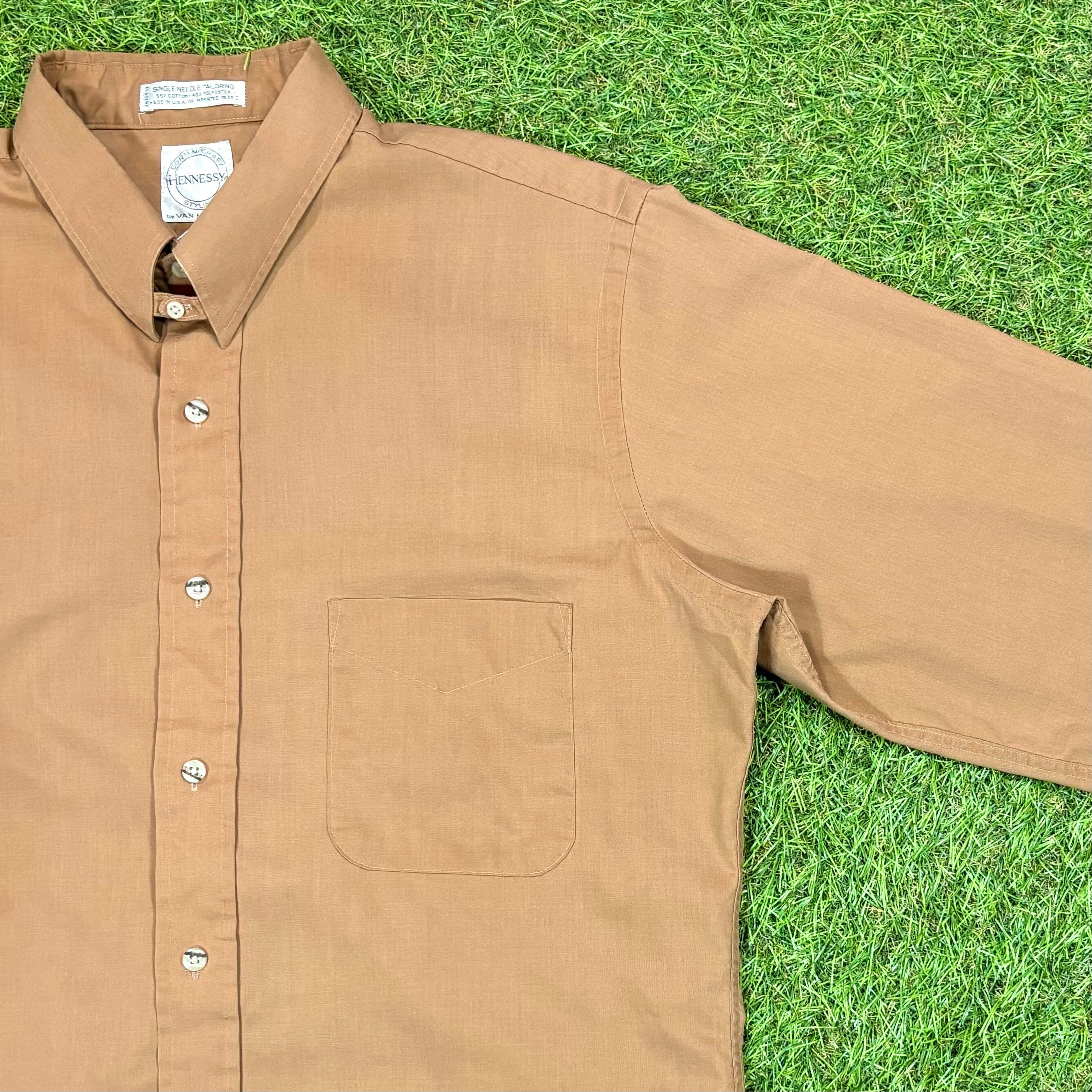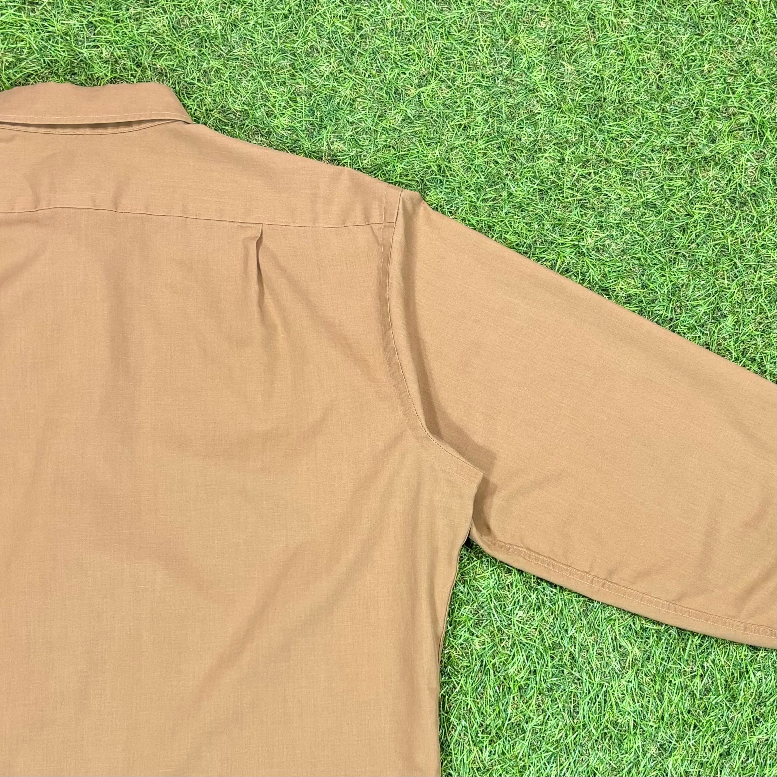 【Men's】 90s VAN HEUSEN ブラウン タブカラー シャツ / Made In USA Vintage ヴィンテージ 古着 長袖 シャツ 茶色 大人古着