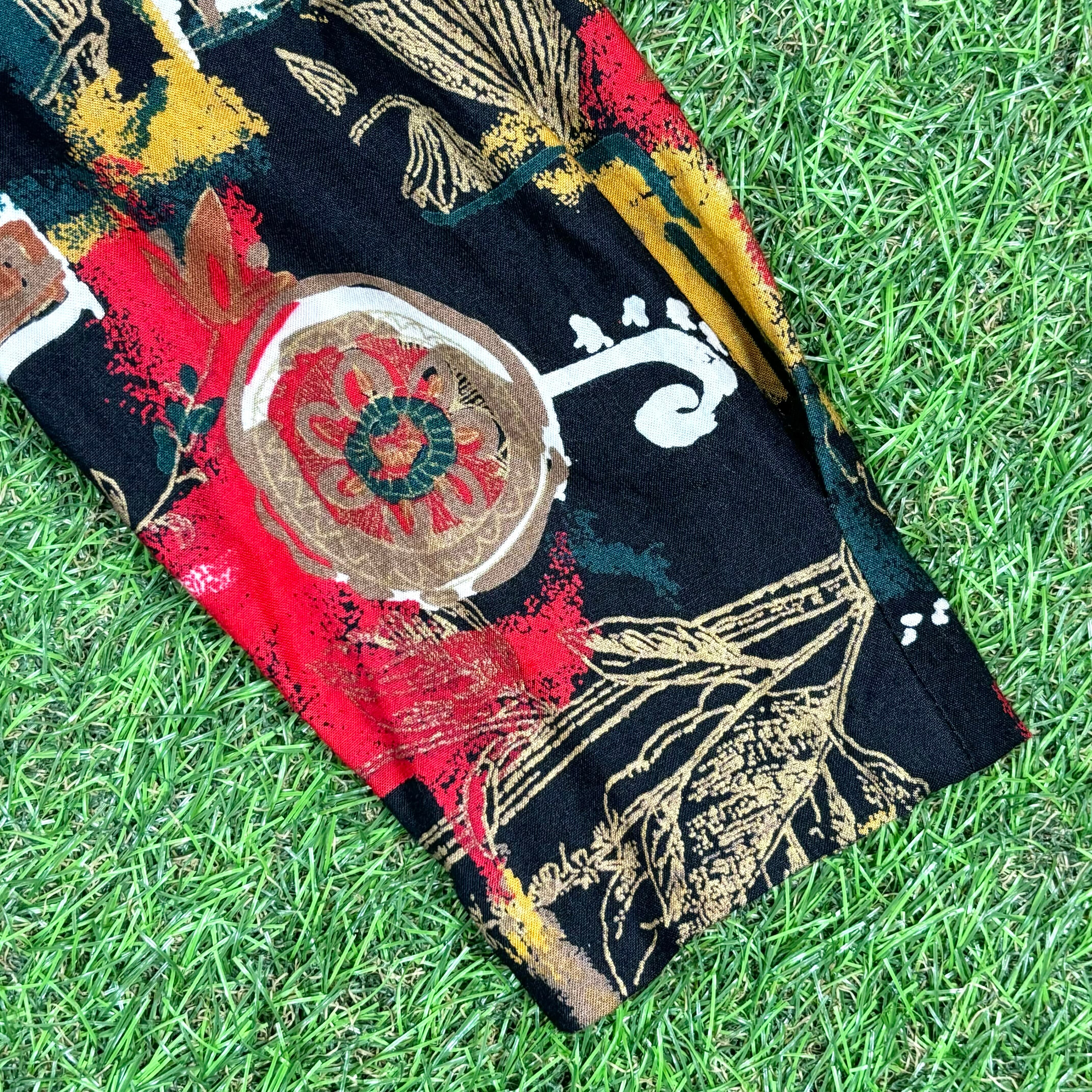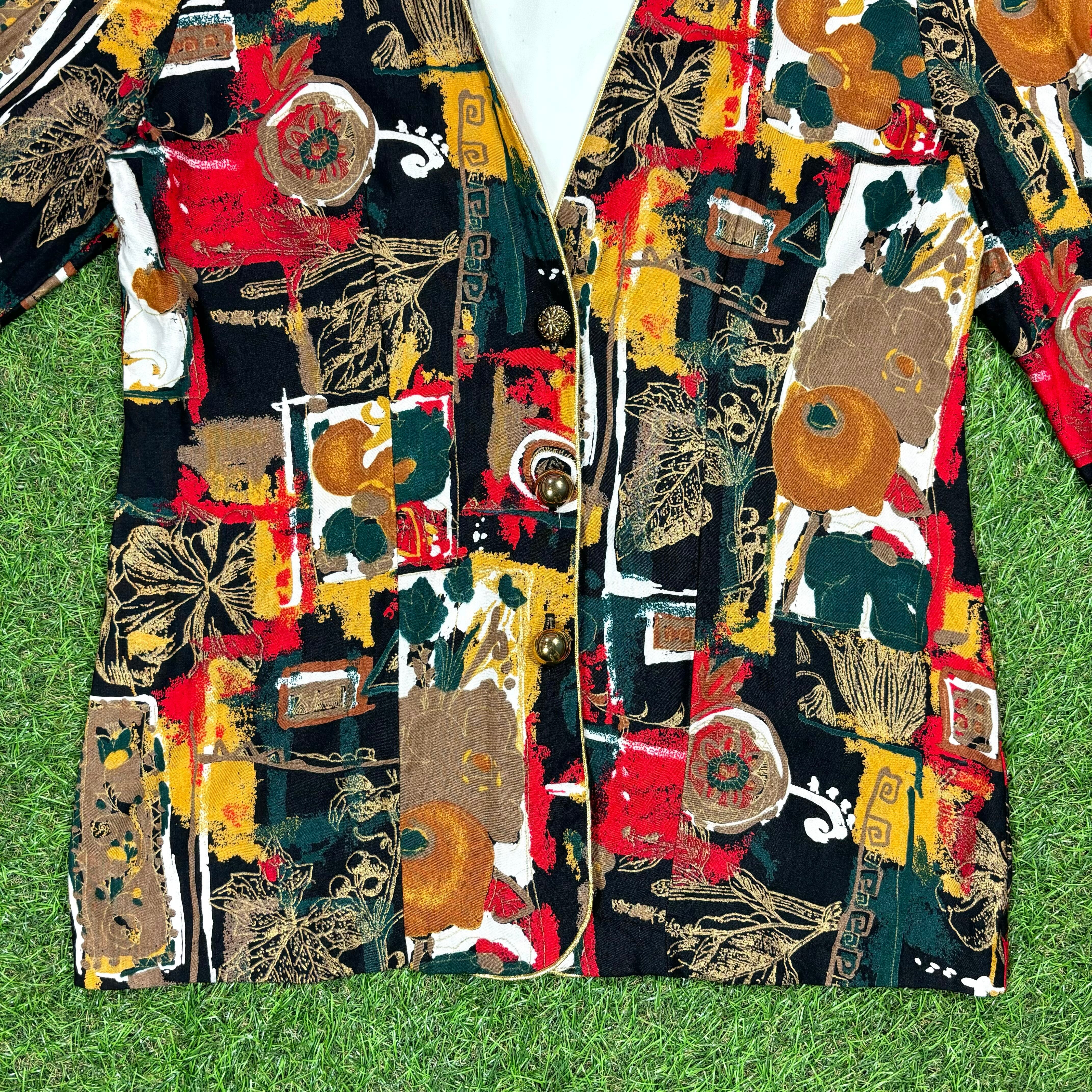 【Lady's】 80s アート 総柄 7分丈 ドッキング ジャケット / Made In USA Vintage ヴィンテージ 古着 シャツ 羽織 柄シャツ