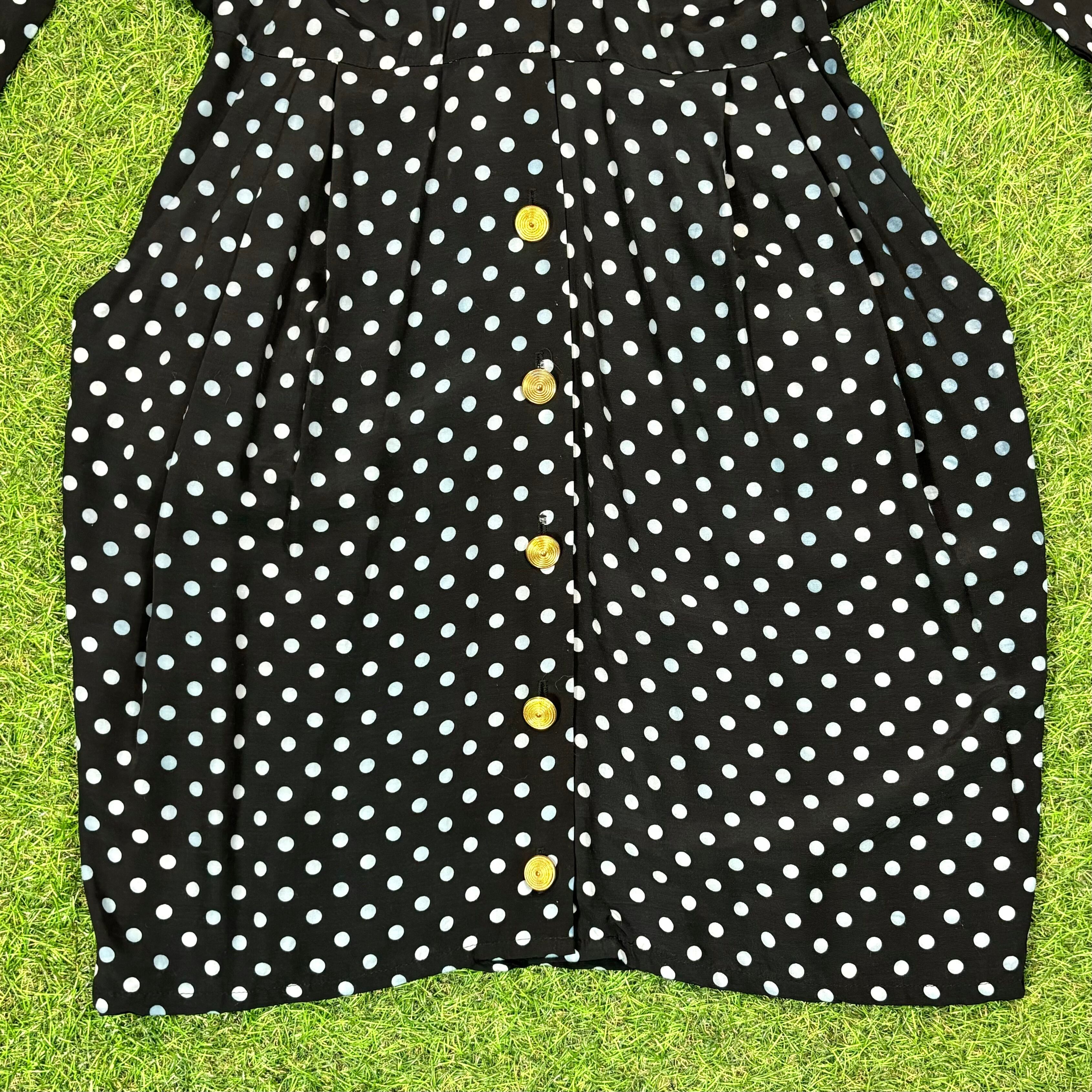 80s-90sらしいドット総柄やボタン、シルエット、ドルマンスリーブがとっても可愛いアイテムです。
