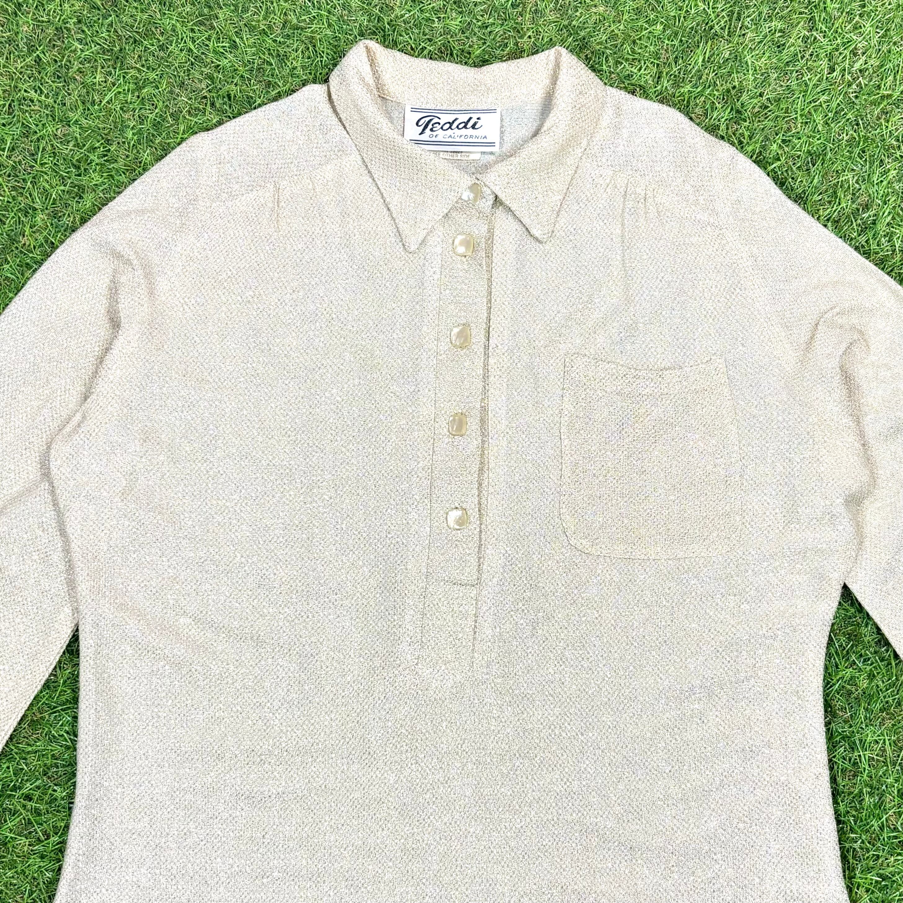 【Lady's】 80s ラメ ハーフボタン プルオーバー トップス / Vintage ヴィンテージ 古着 ポロシャツ 長袖 キラキラ レディース