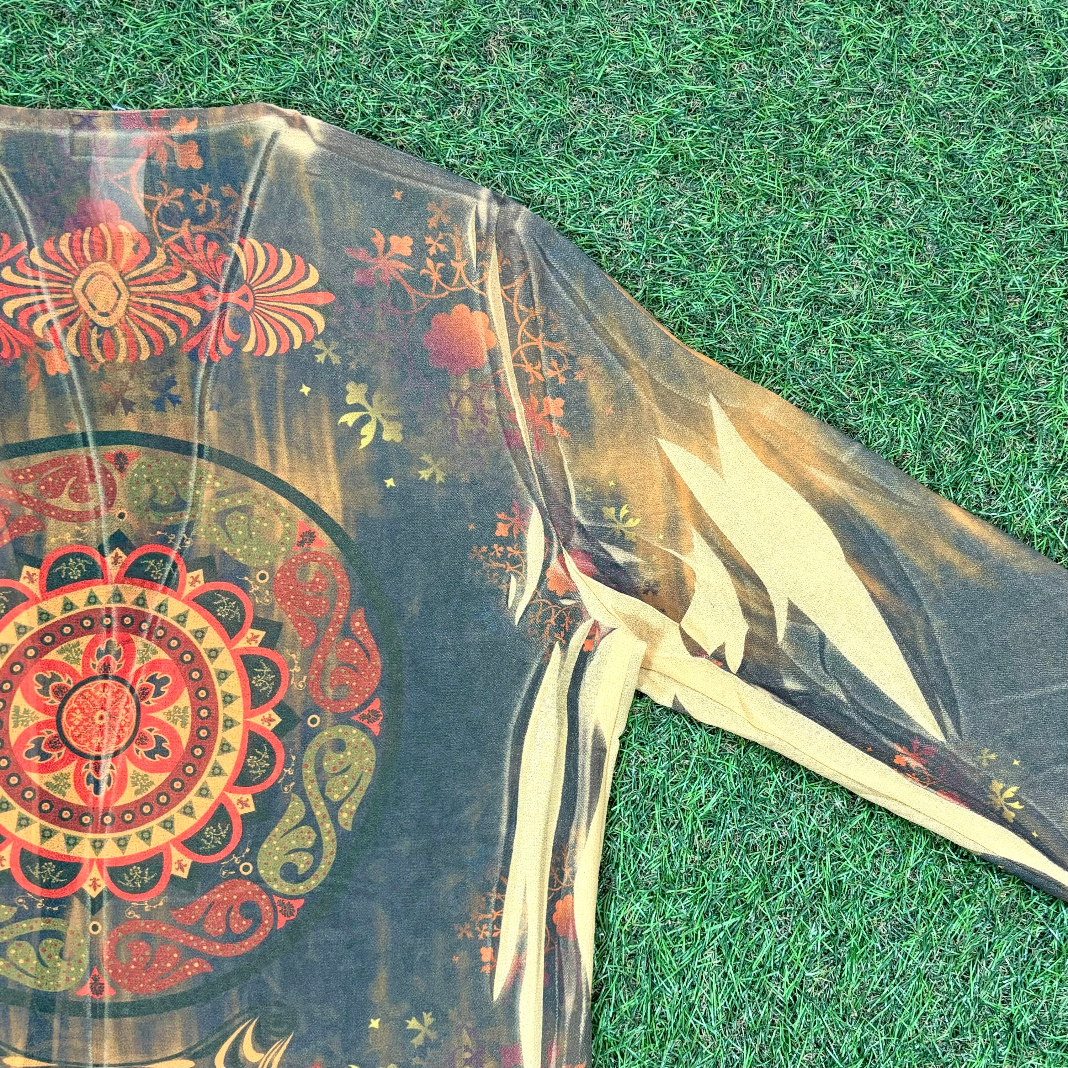 【Lady's】90s オリエンタル 総柄 シアー 羽織り シャツ / Made In USA Vintage ヴィンテージ アメリカ製 シースルー エスニック カーディガン 長袖 長袖シャツ