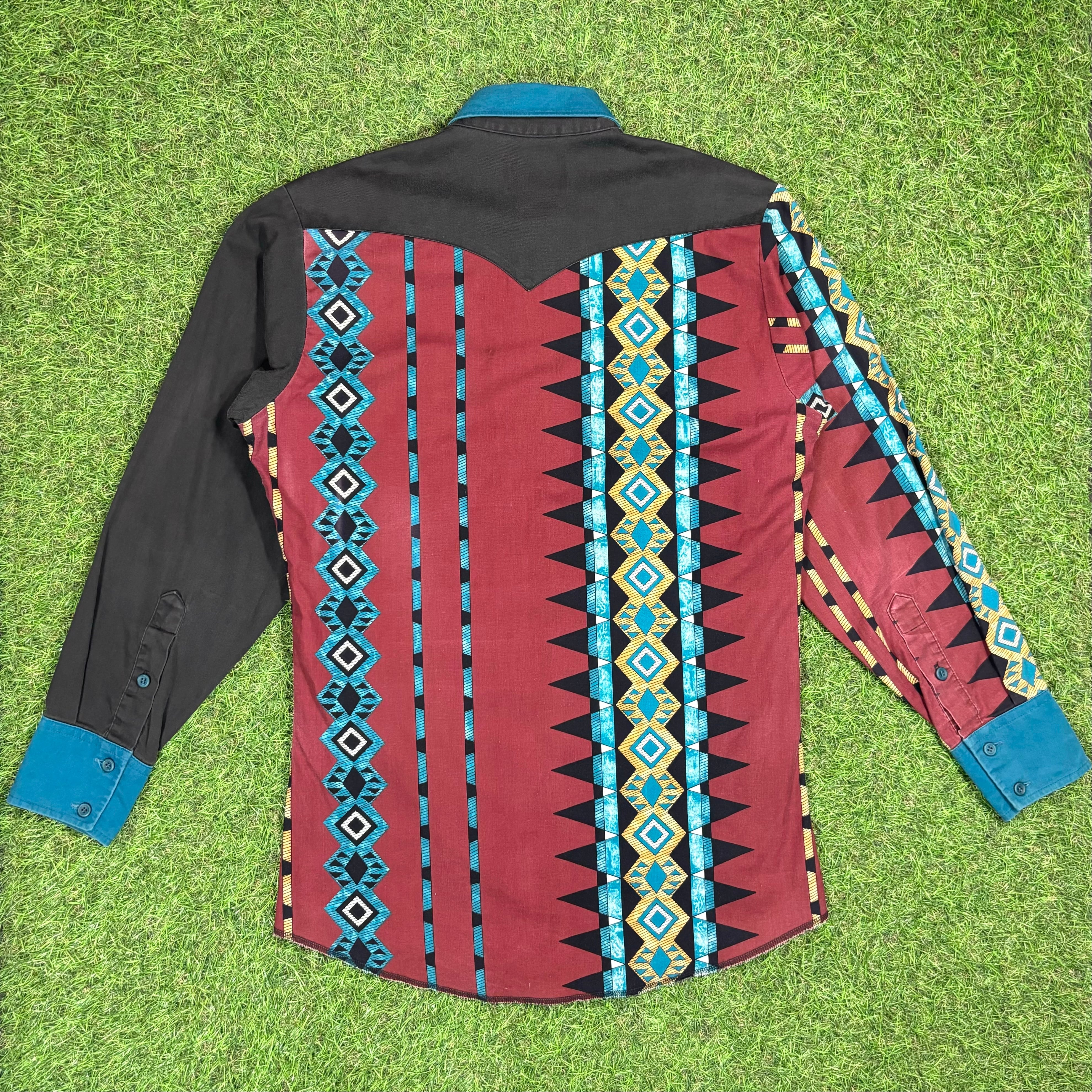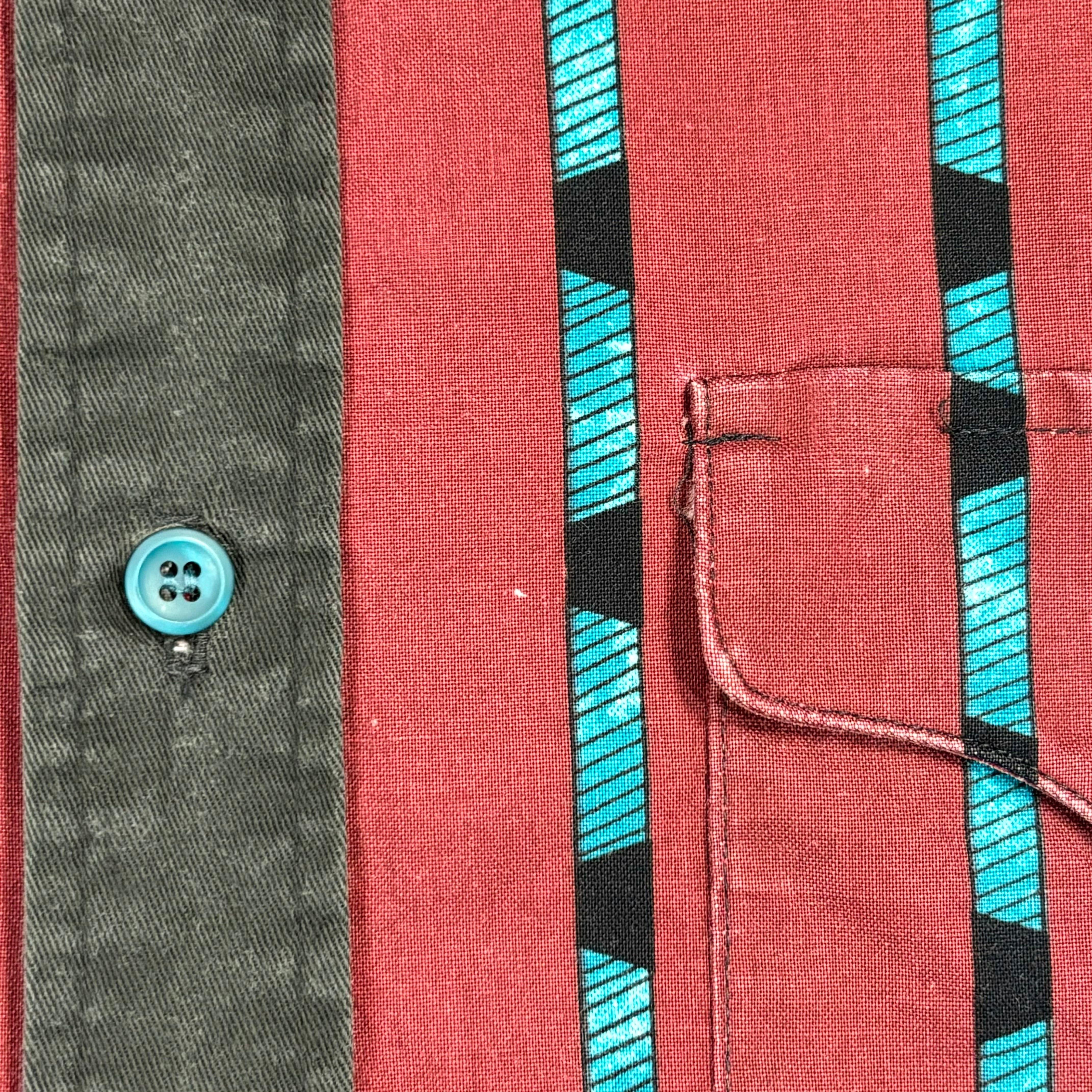 【Men's】 90s オルテガ 総柄 ボタンダウンシャツ / Vintage ヴィンテージ 古着 長袖シャツ 長袖 メンズ オルテガ柄 チマヨ カウボーイ ネイティブ 柄シャツ
