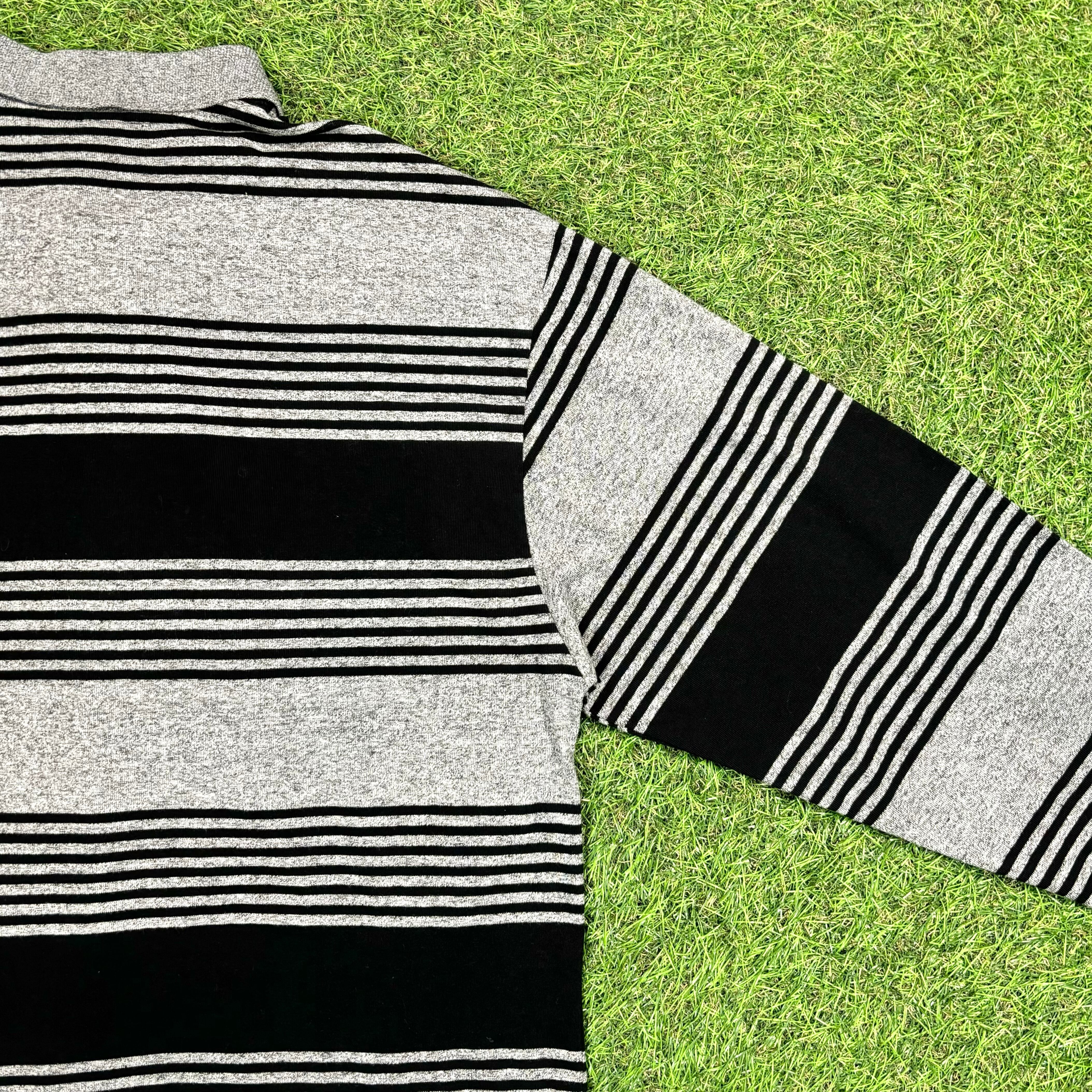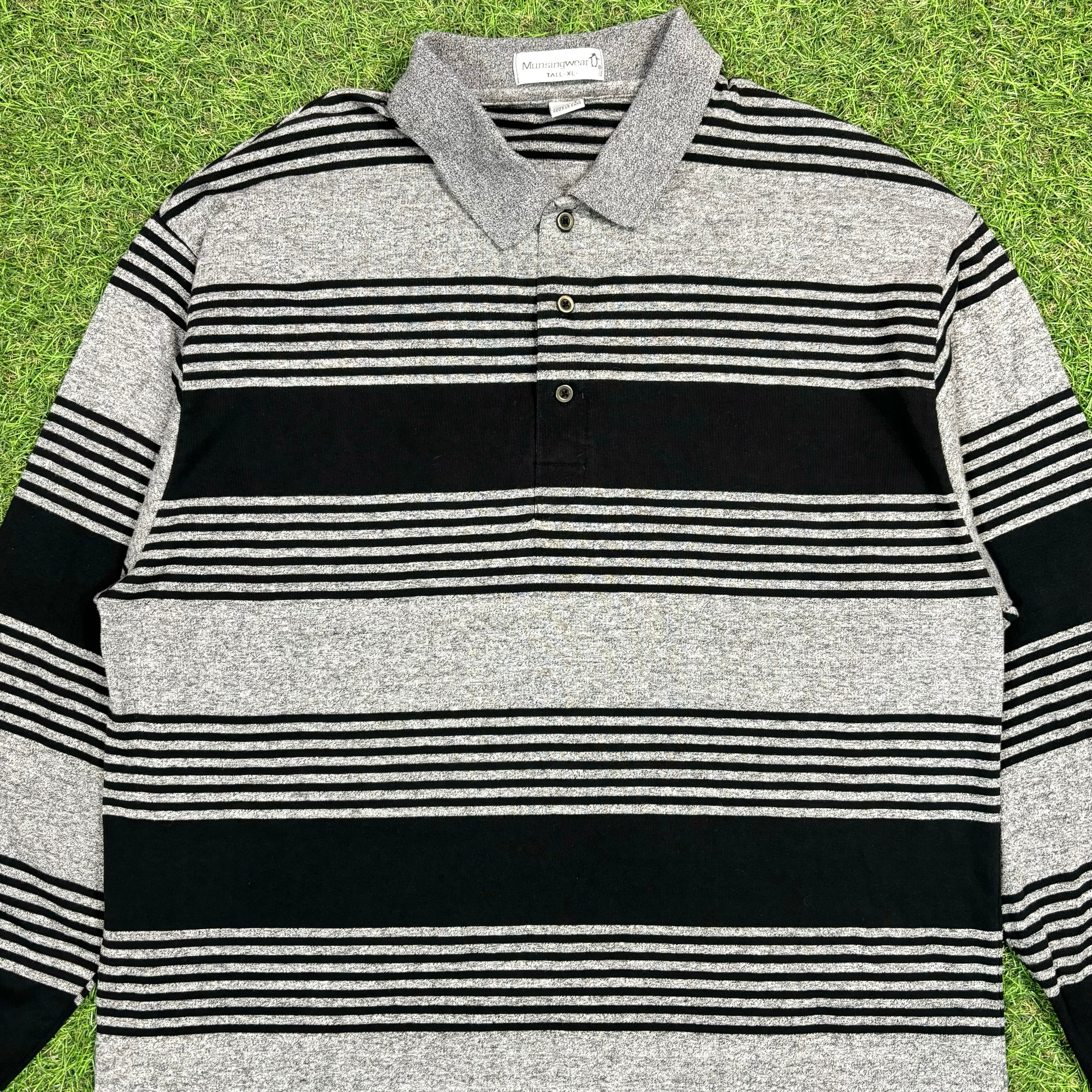 【Men's】 90s ブラック グレー ボーダー 長袖 ポロシャツ / Made In USA Vintage ヴィンテージ 古着 長袖ポロシャツ アメリカ製 メンズ