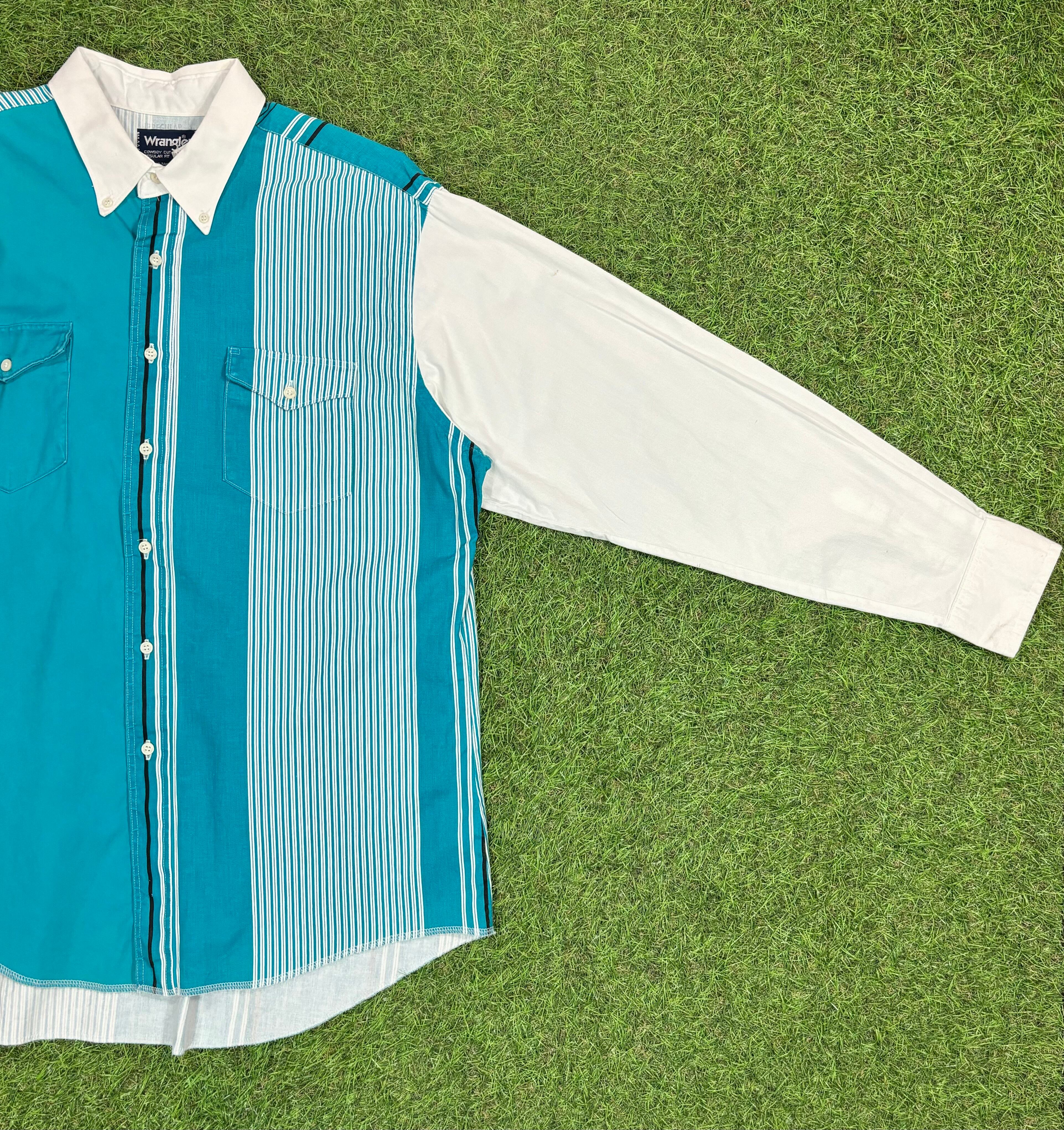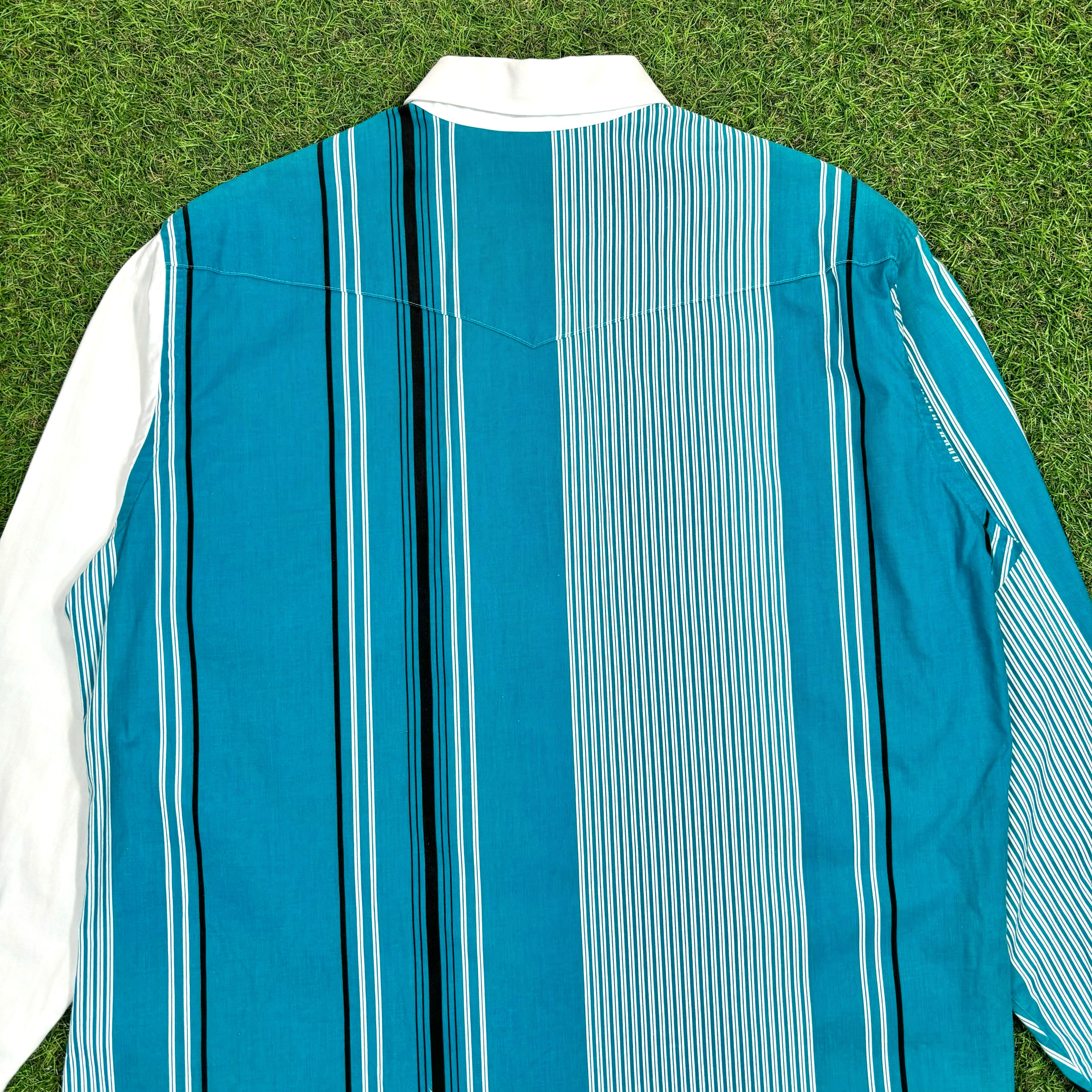 【Men's】 90s Wrangler ライトグリーン ストライプ 長袖 ボタンダウンシャツ / Made In USA Vintage ヴィンテージ ラングラー 古着 メンズ アメリカ製 シャツ メンズ