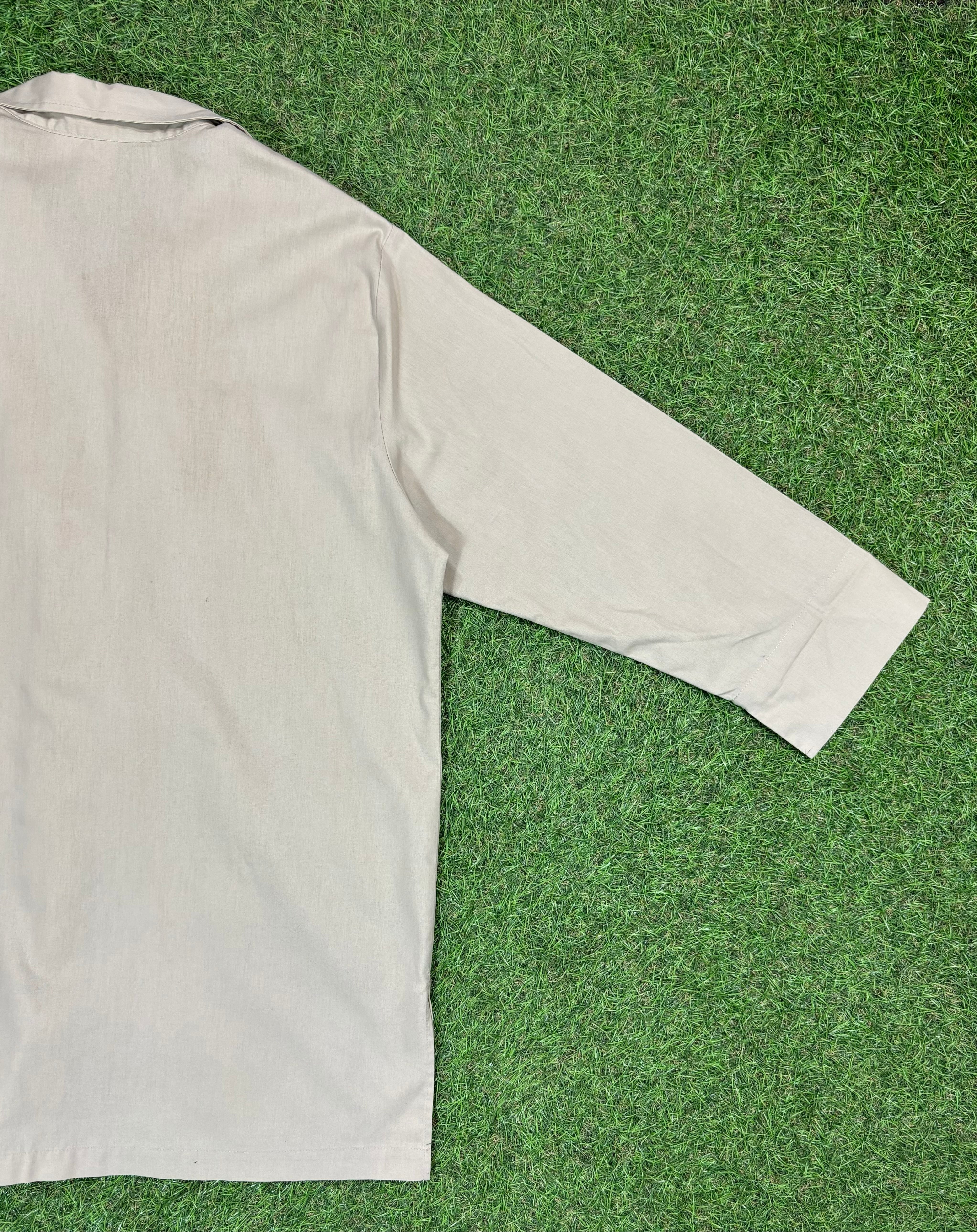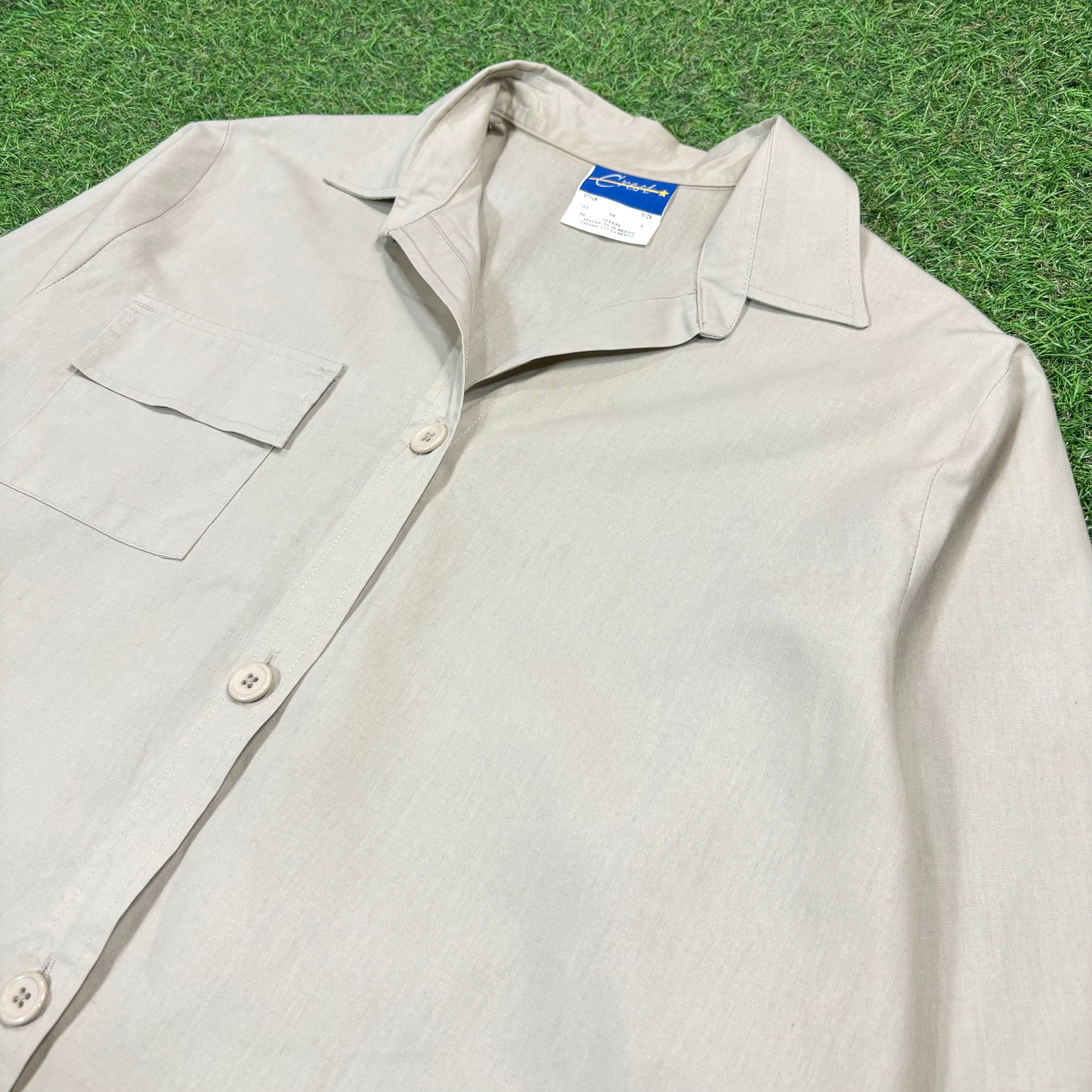 【Unisex】 ロング丈 ベージュ 開襟 シャツ ジャケット / Made In MEXICO 古着 長袖 大人古着 オープンカラー