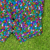 鮮やかな発色でアート感のある花柄がプリントされています。