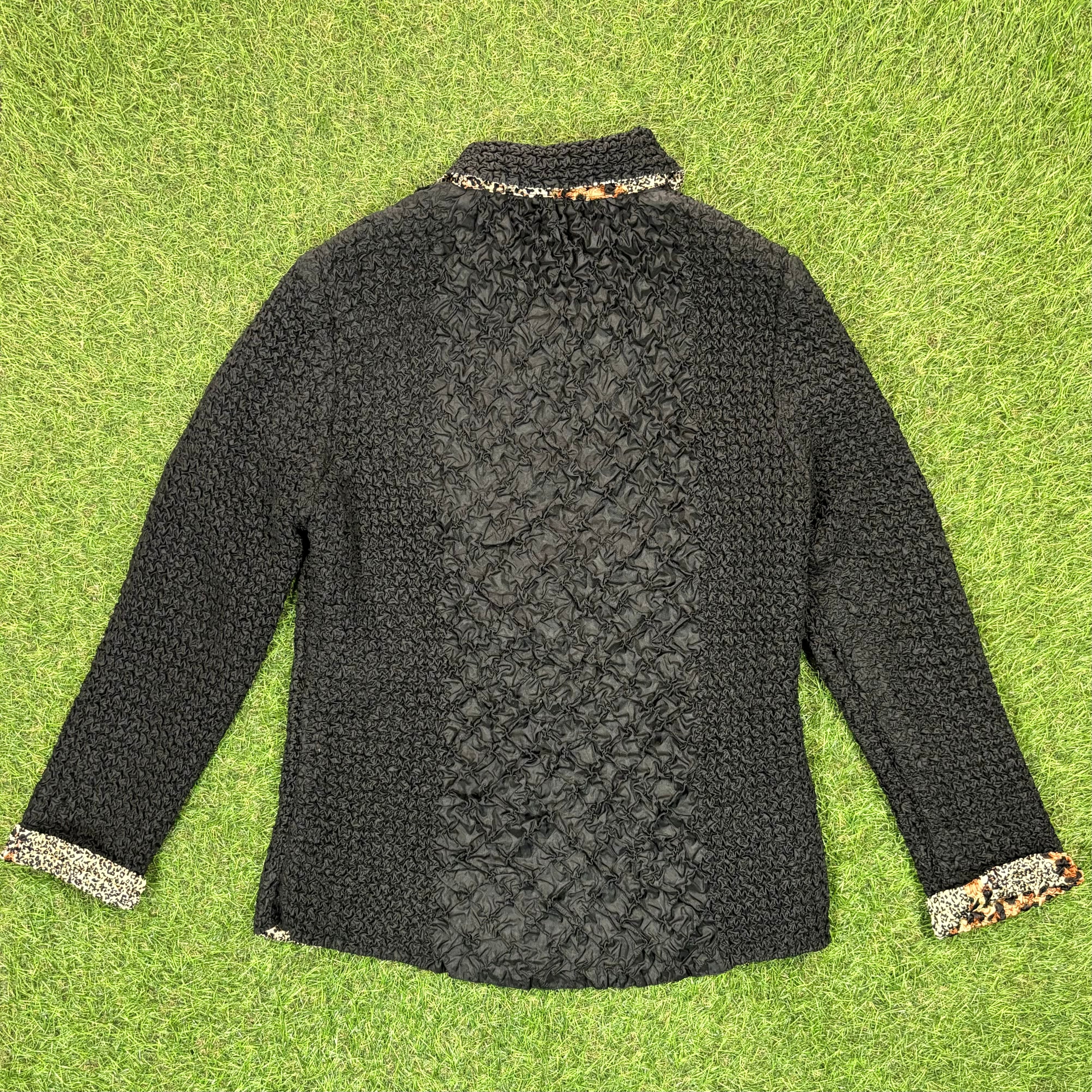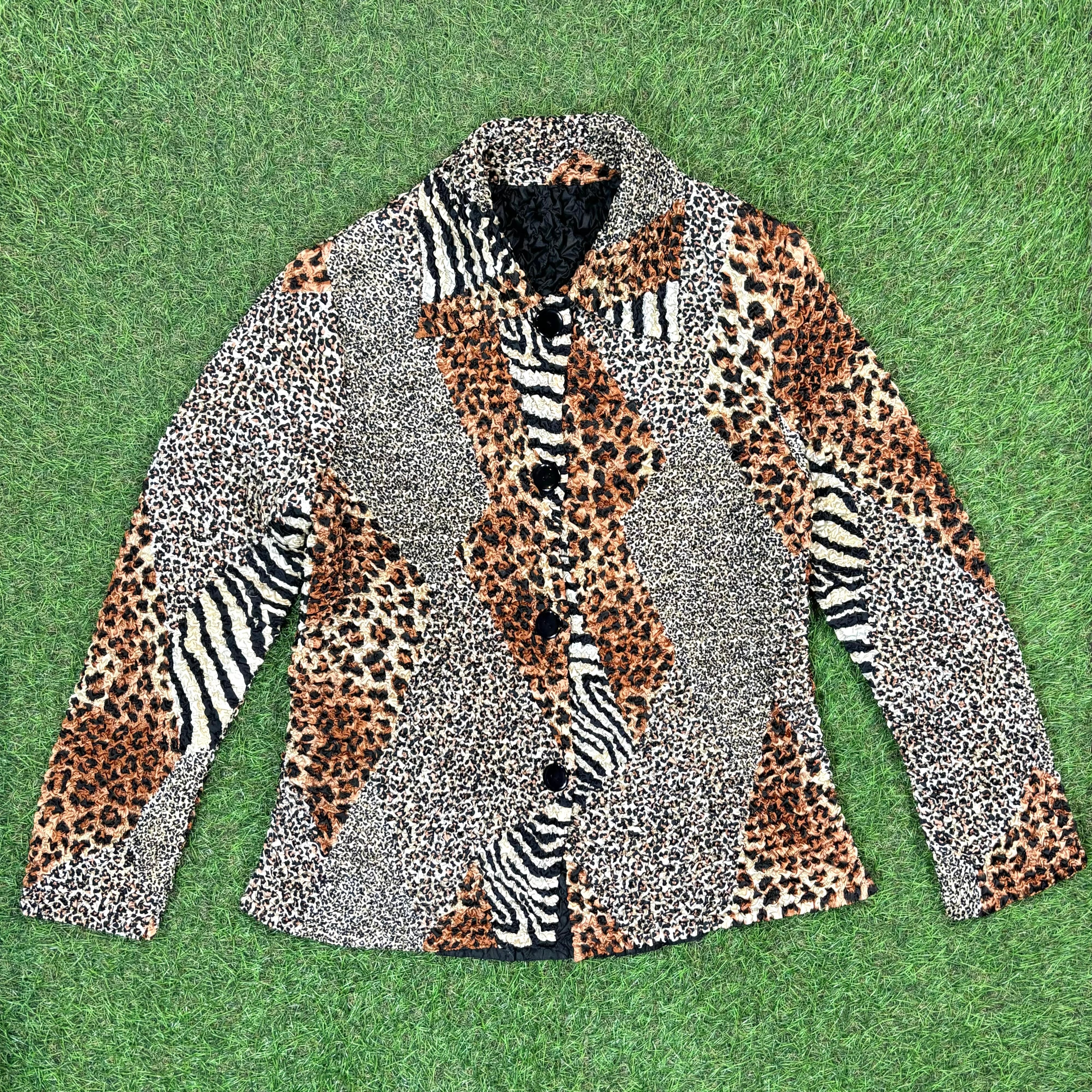 【Lady's】 レオパード ブラック リバーシブル ポップコーン ジャケット / 古着 シャツ ヒョウ柄 豹柄 総柄 柄シャツ