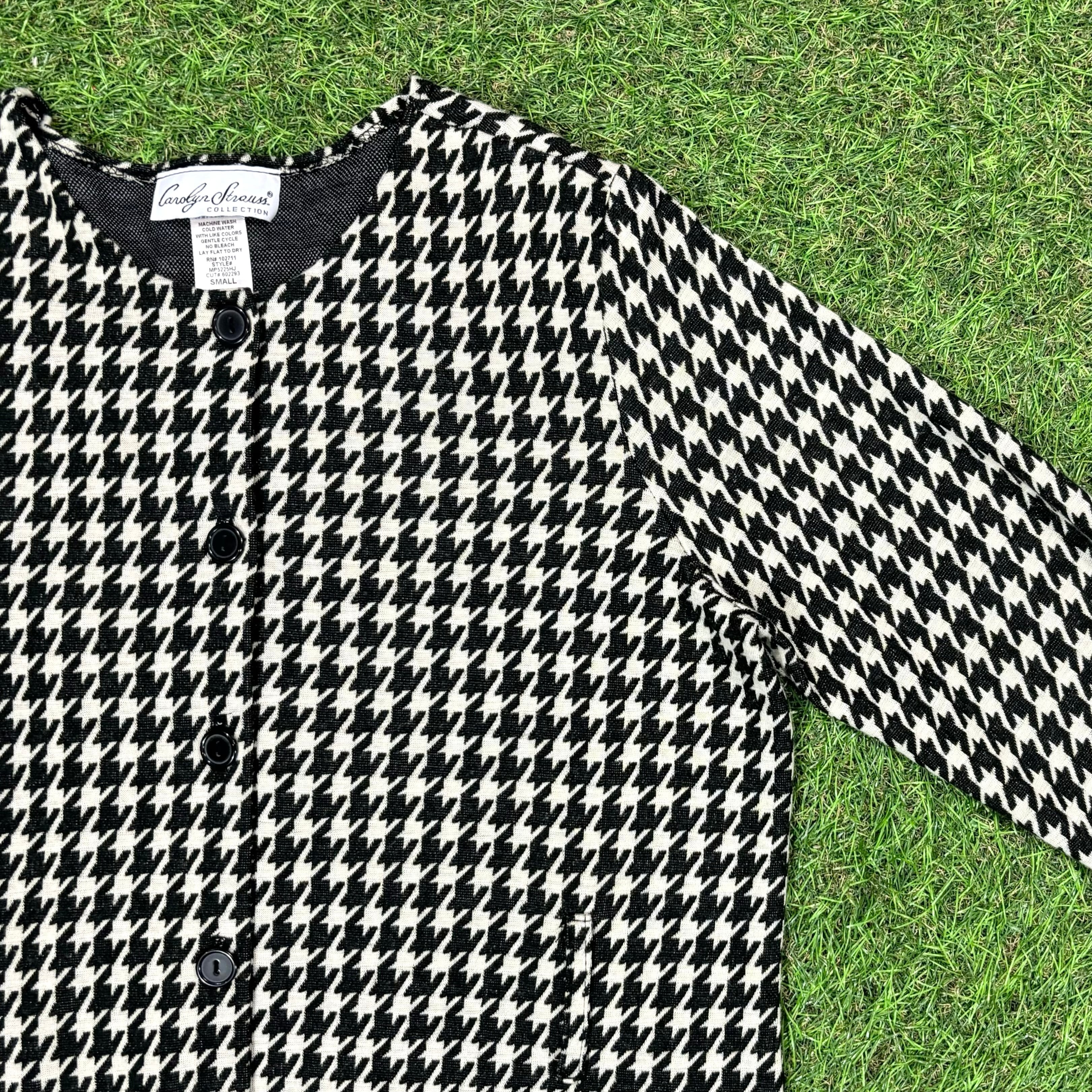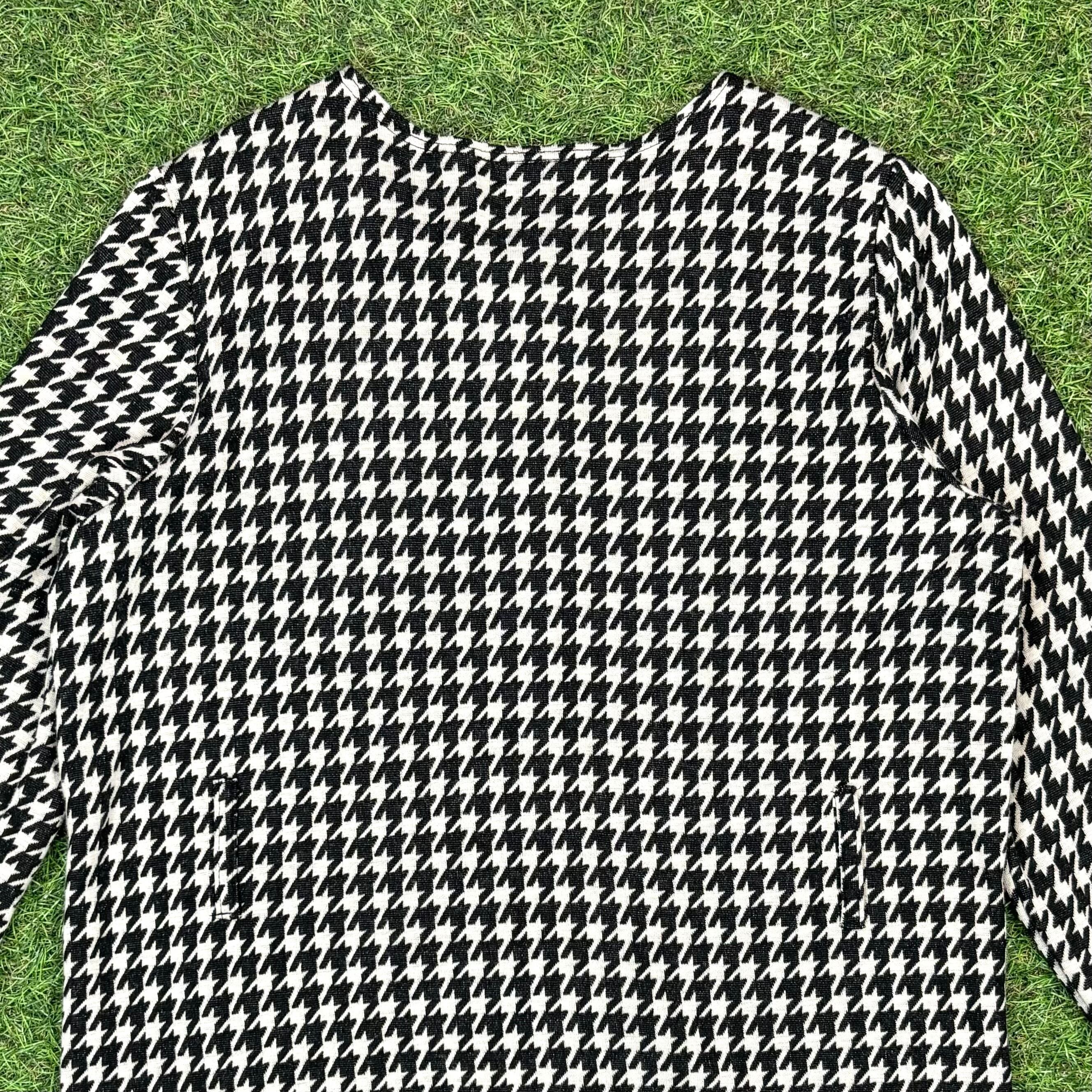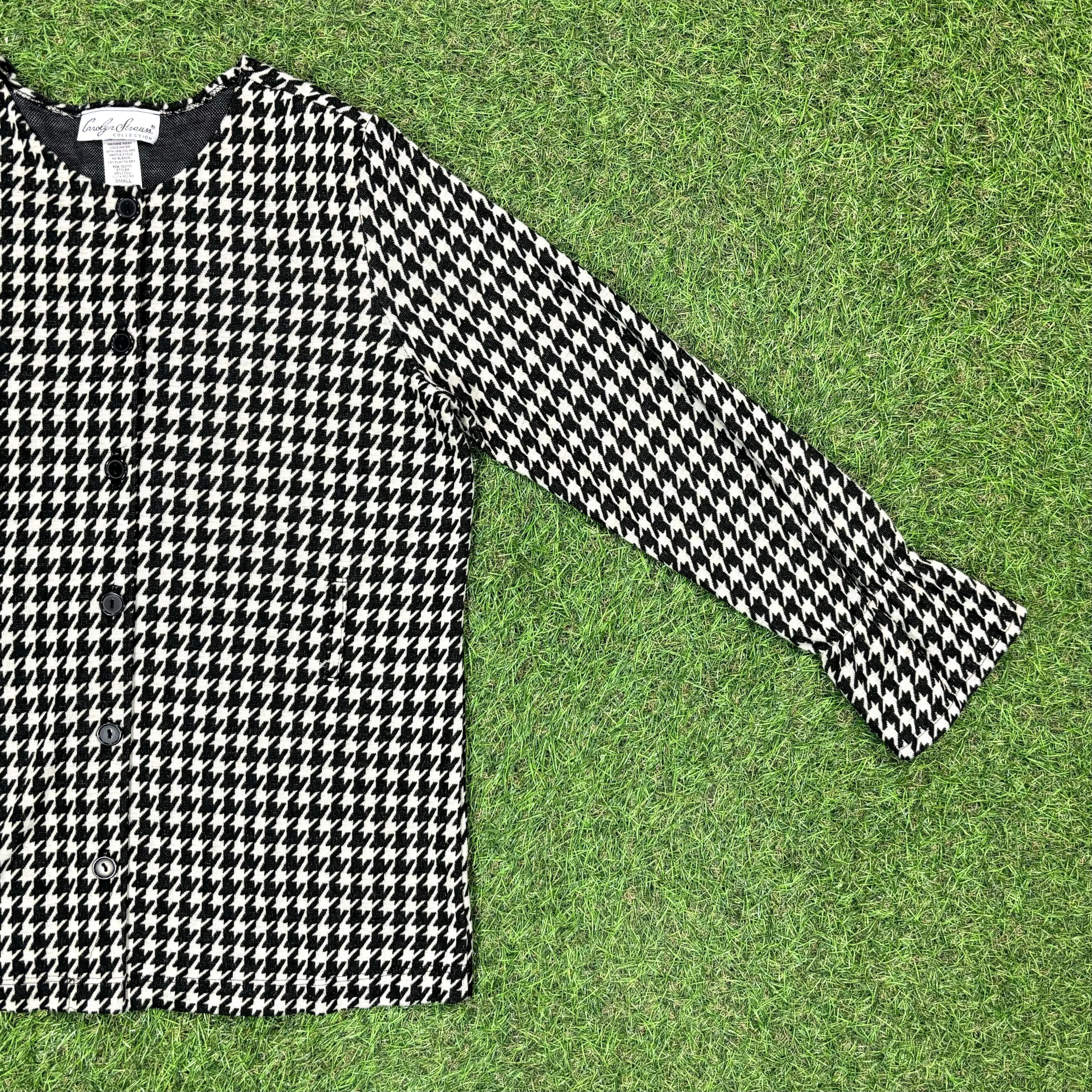 【Lady's】 90s 千鳥格子 ノーカラー ブラウス / Made In USA アメリカ製 ジャケット カーディガン チェック モノトーン 大人古着