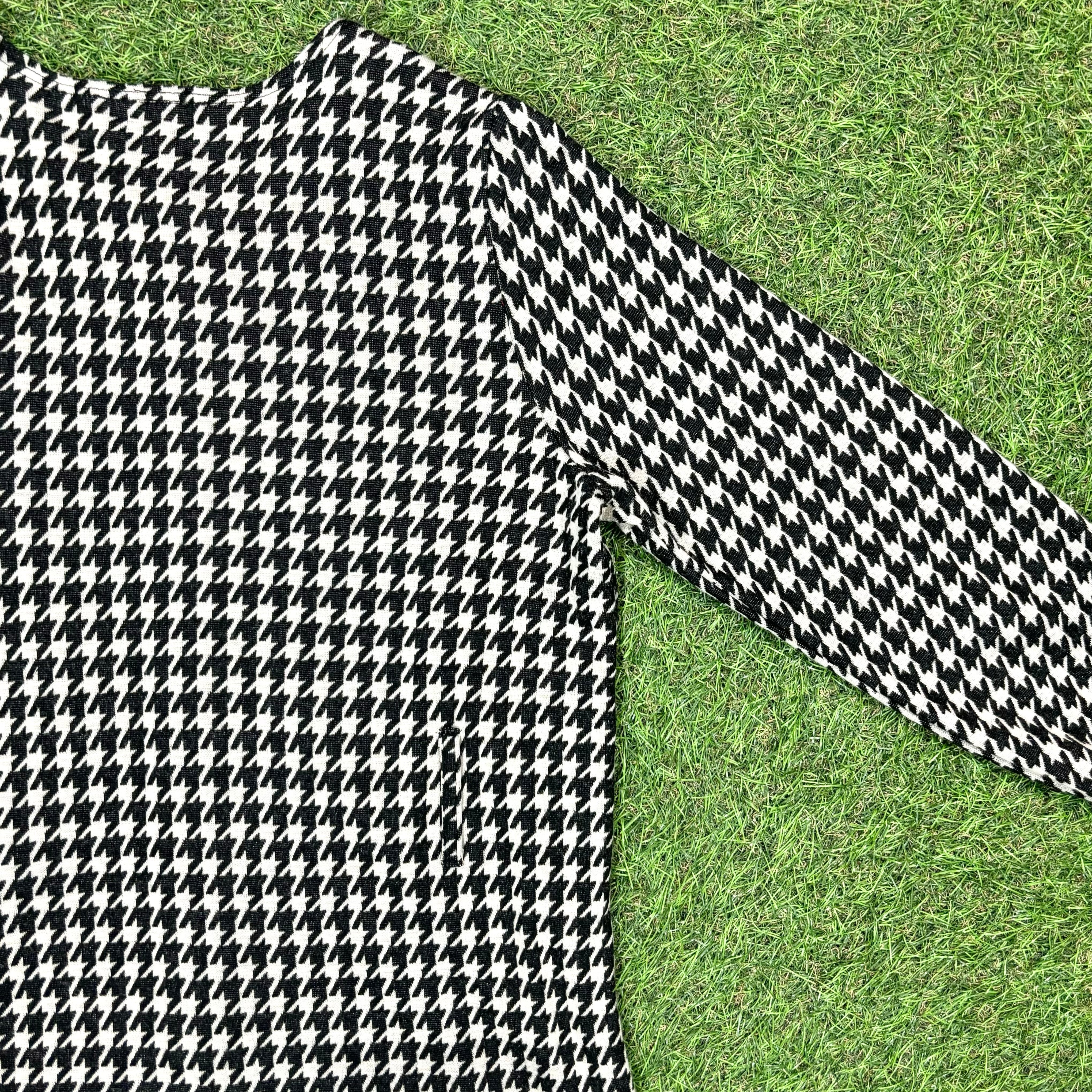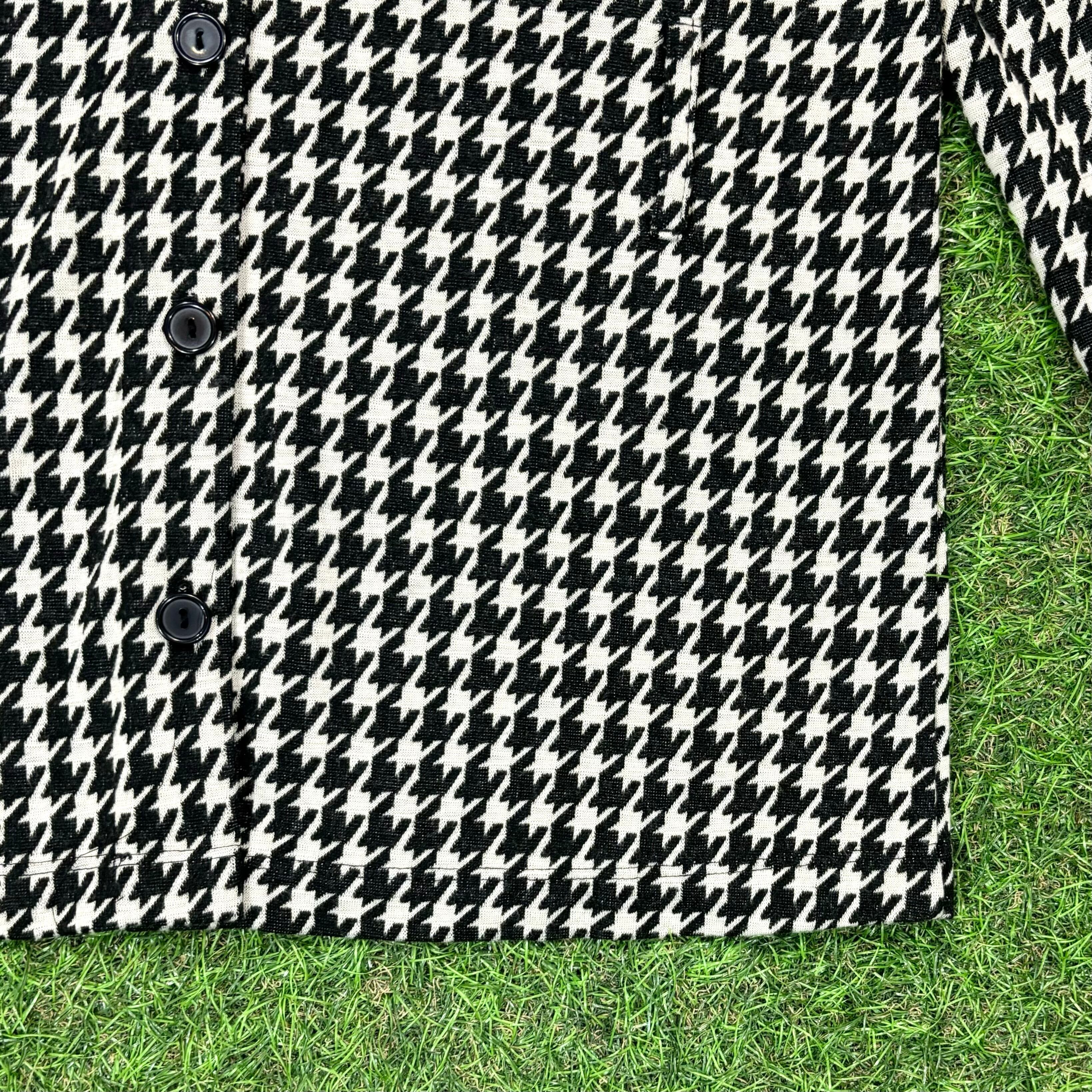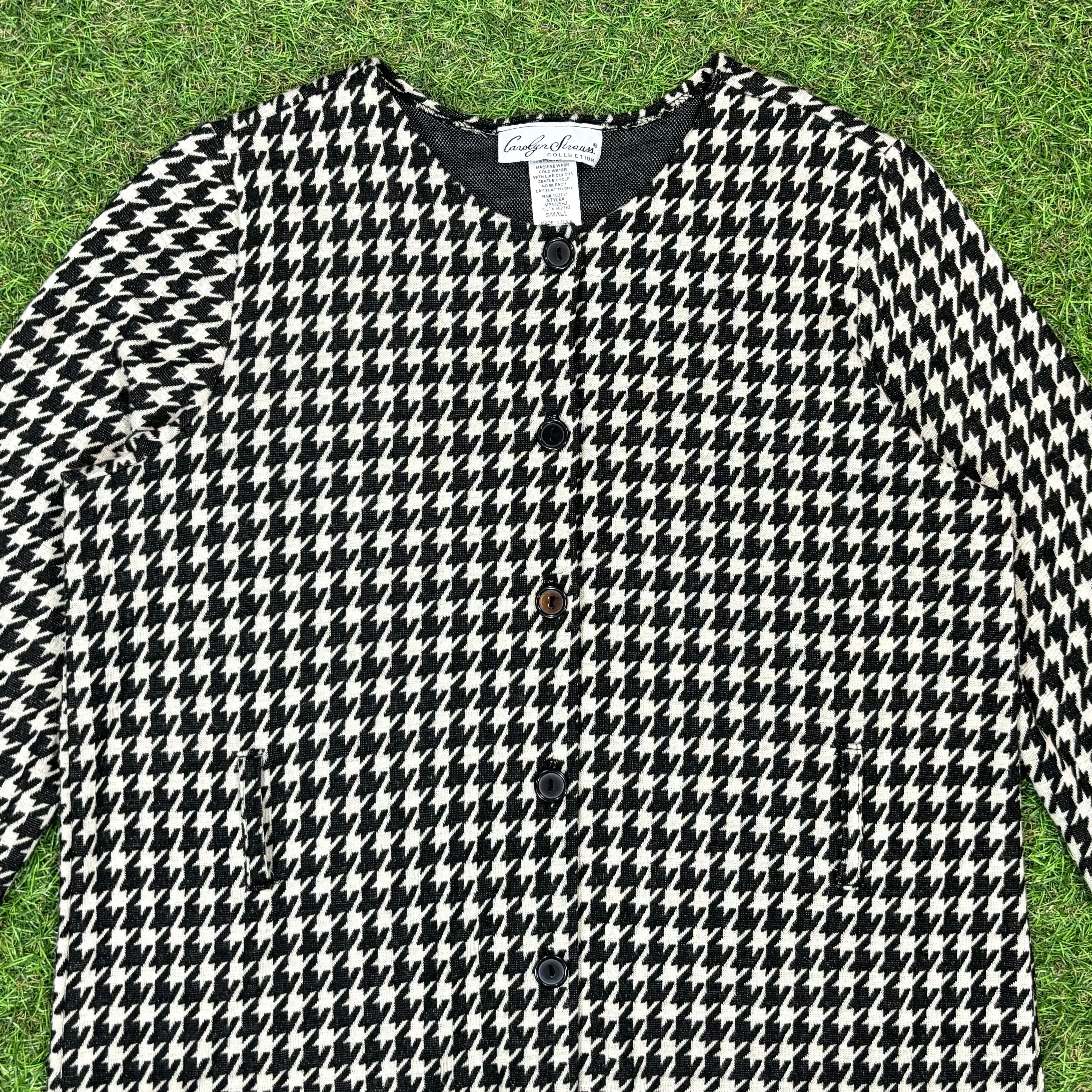 【Lady's】 90s 千鳥格子 ノーカラー ブラウス / Made In USA アメリカ製 ジャケット カーディガン チェック モノトーン 大人古着