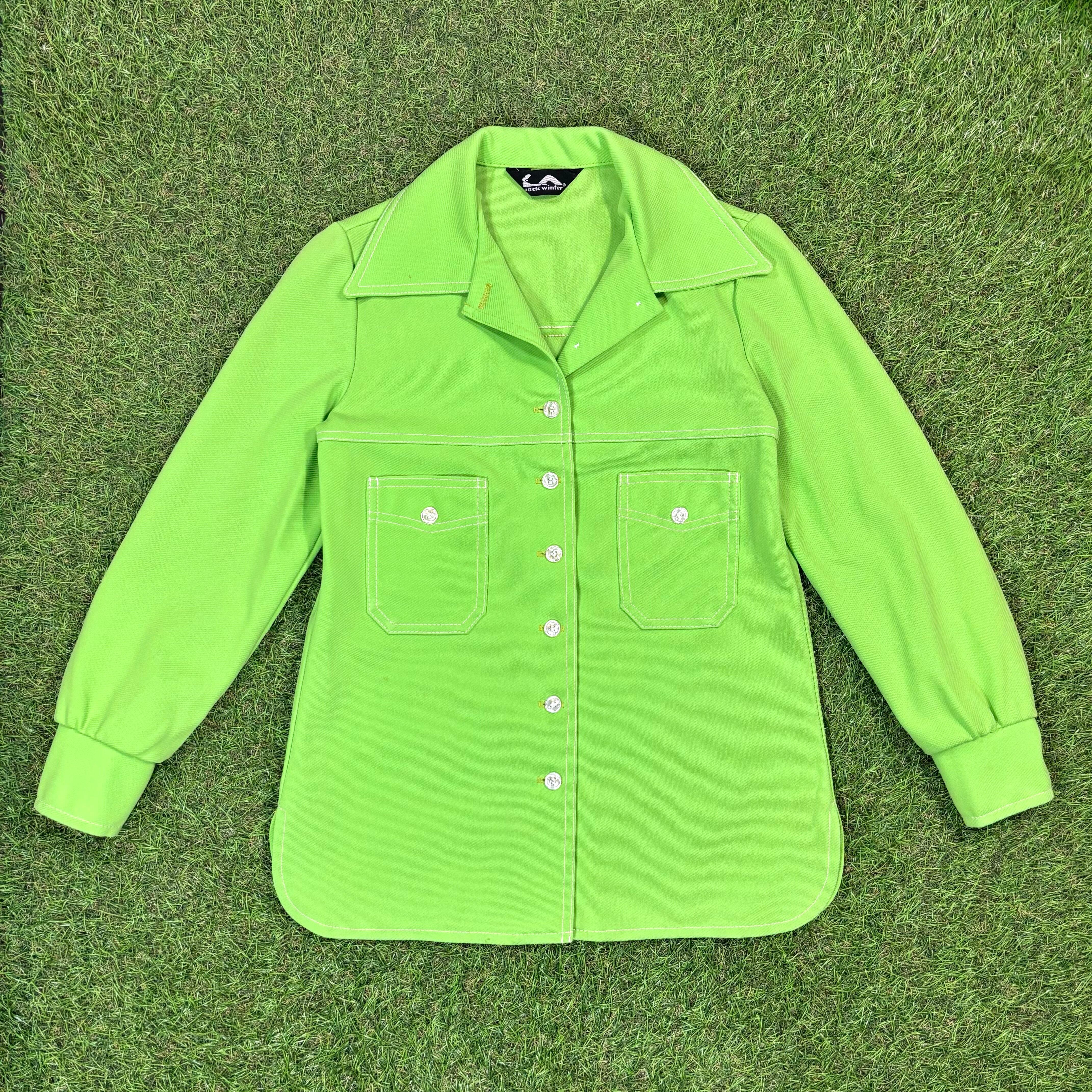 【Lady's】 70s グリーン 開襟 ジャケット / Vintage ヴィンテージ 古着 緑 レディース オープンカラー