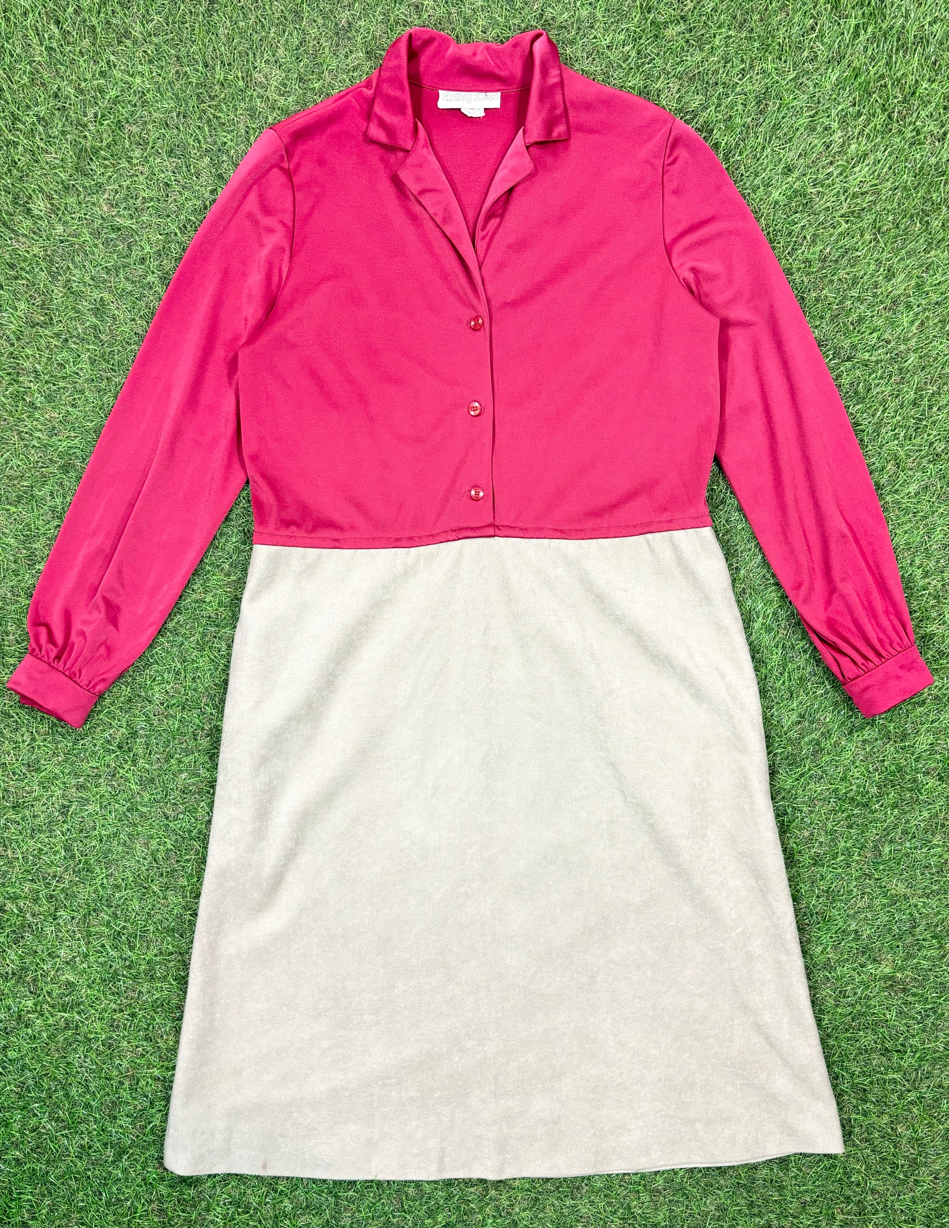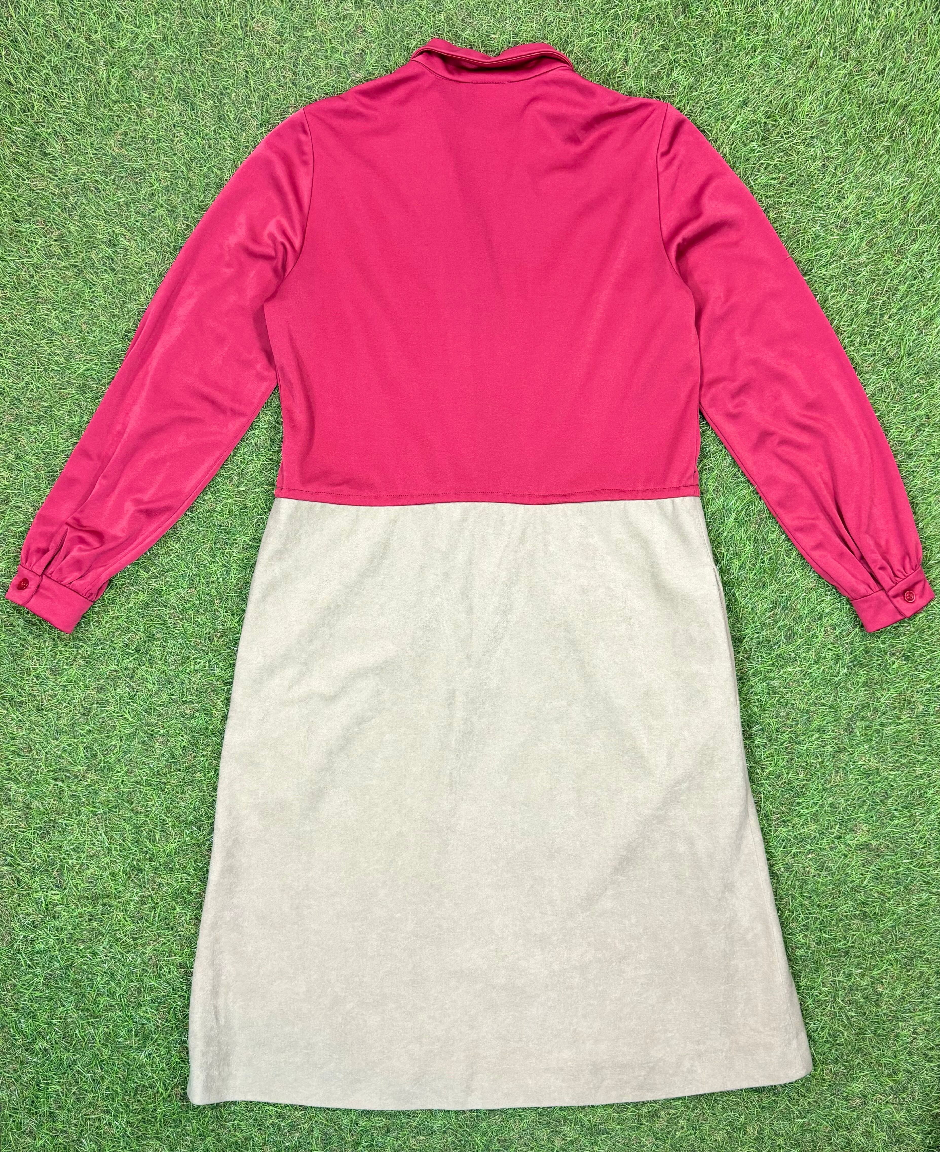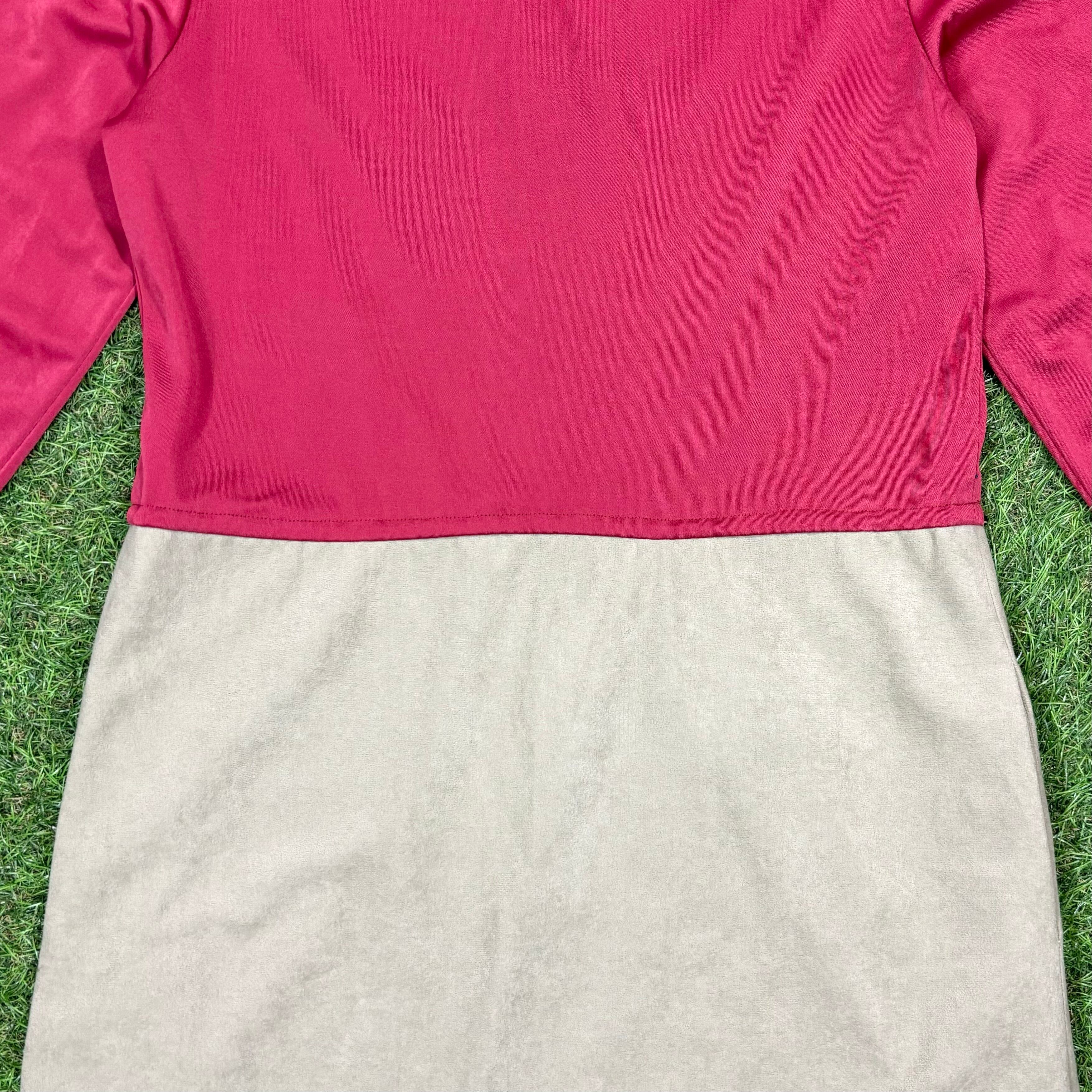【Lady's】 80s スウェード調 切り替えし デザイン ワンピース / Made In USA アメリカ製 Vintage ヴィンテージ 古着 長袖 80年代 レトロ レディース