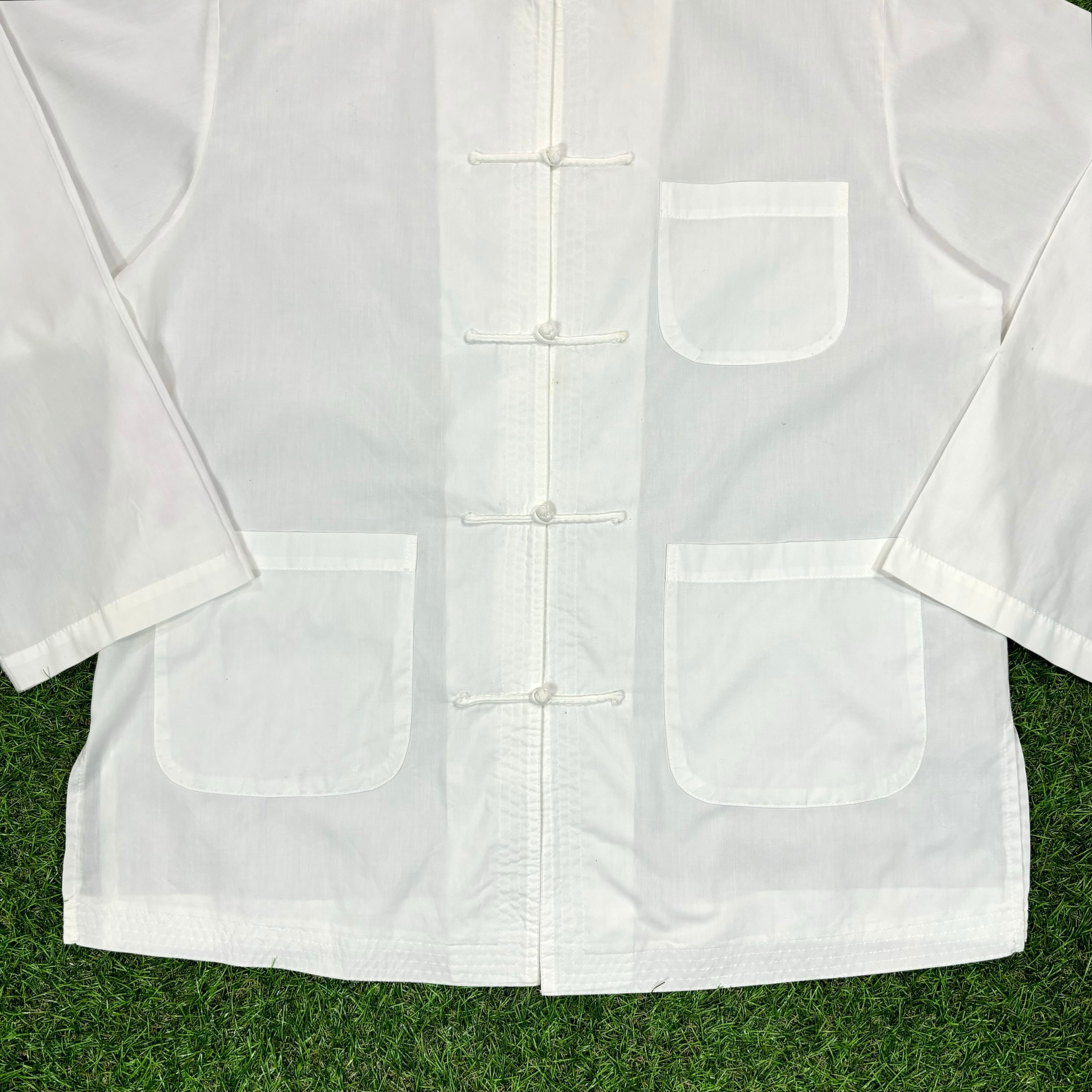 【Men's】 ホワイト カンフー シャツ / 古着 チャイナ チャイナシャツ カンフーシャツ 長袖 白 メンズ 中華 エスニック