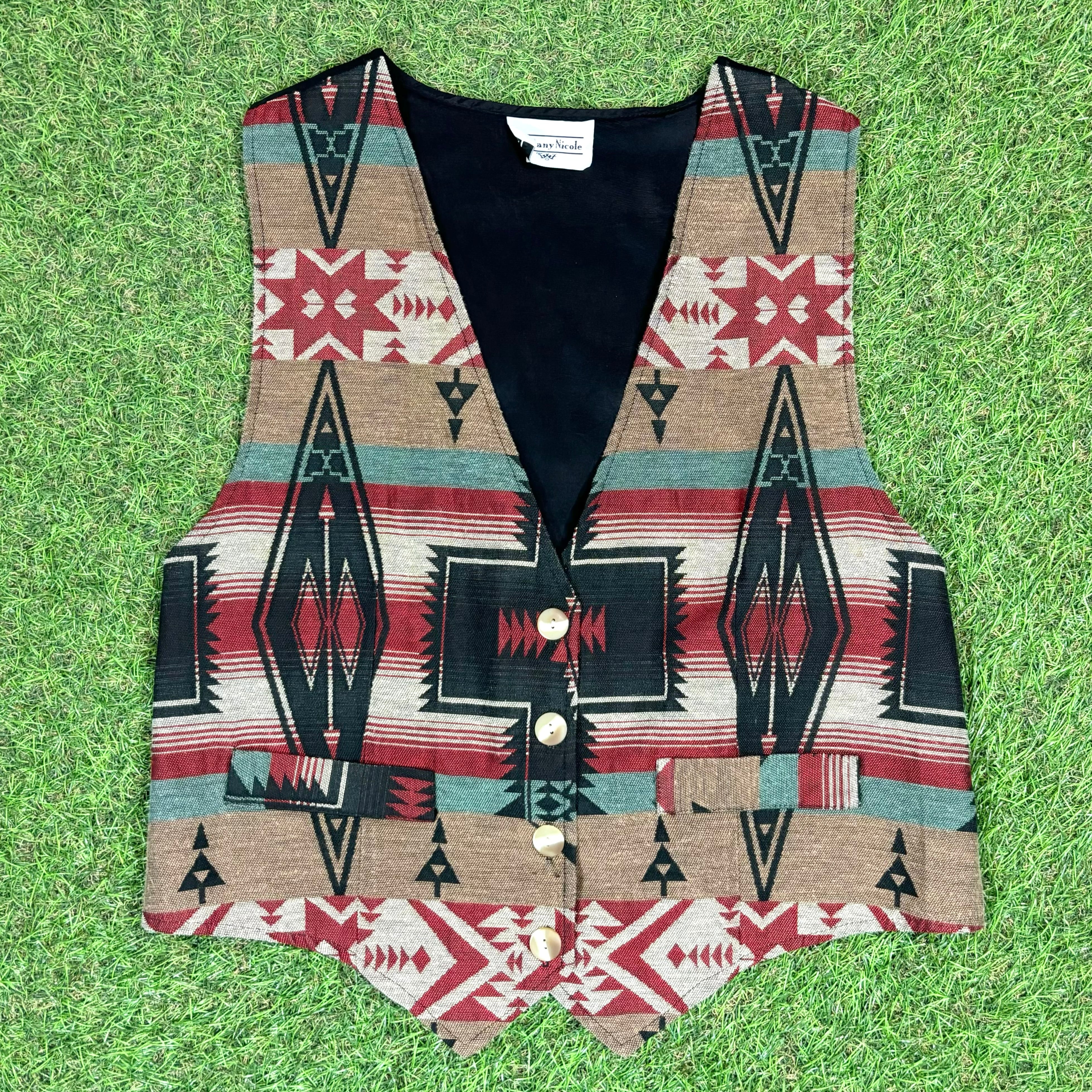 【Unisex】 80s オルテガ 柄 ベスト / Made In USA アメリカ製 Vintage ヴィンテージ 古着 ジレ ネイティブ ネイティブアメリカン