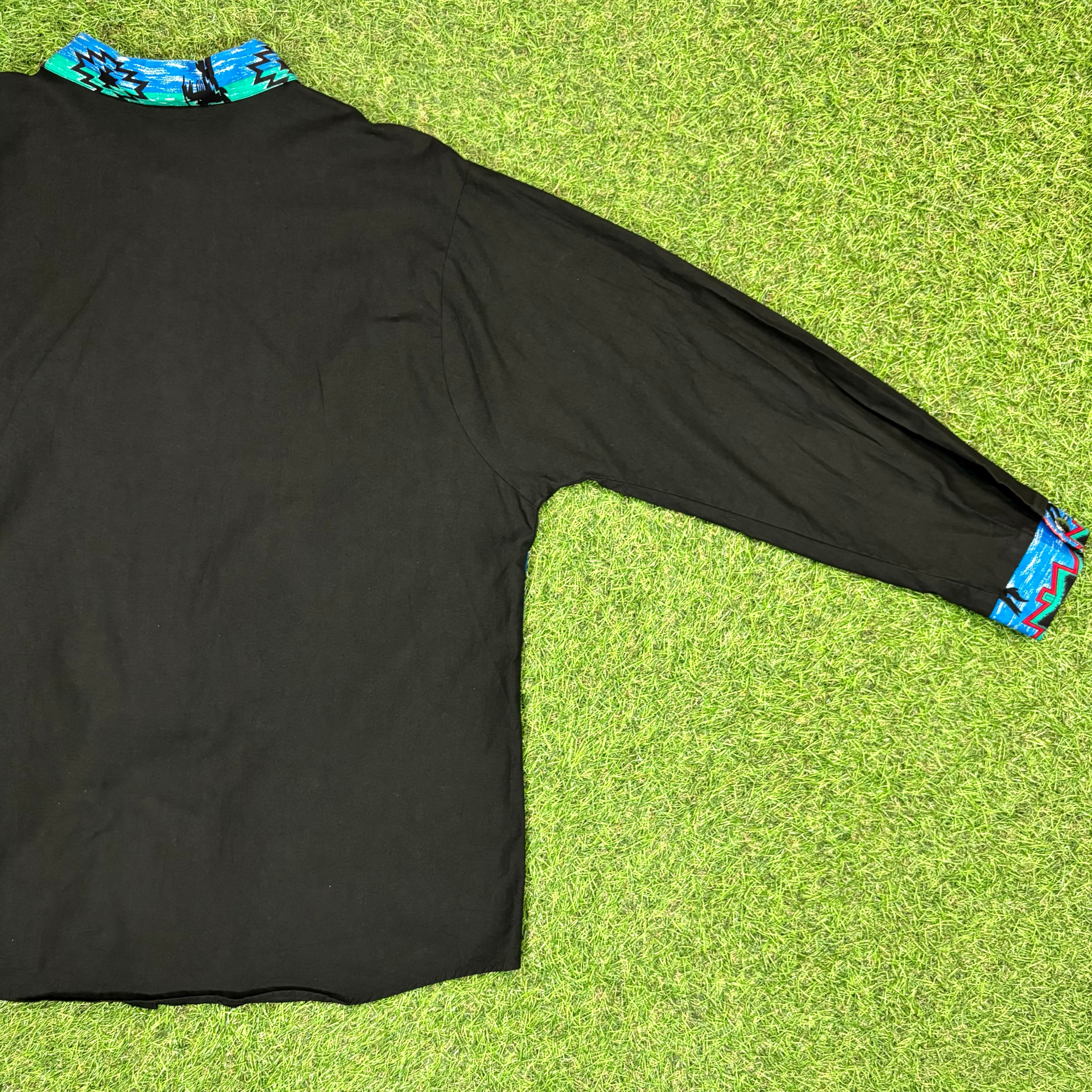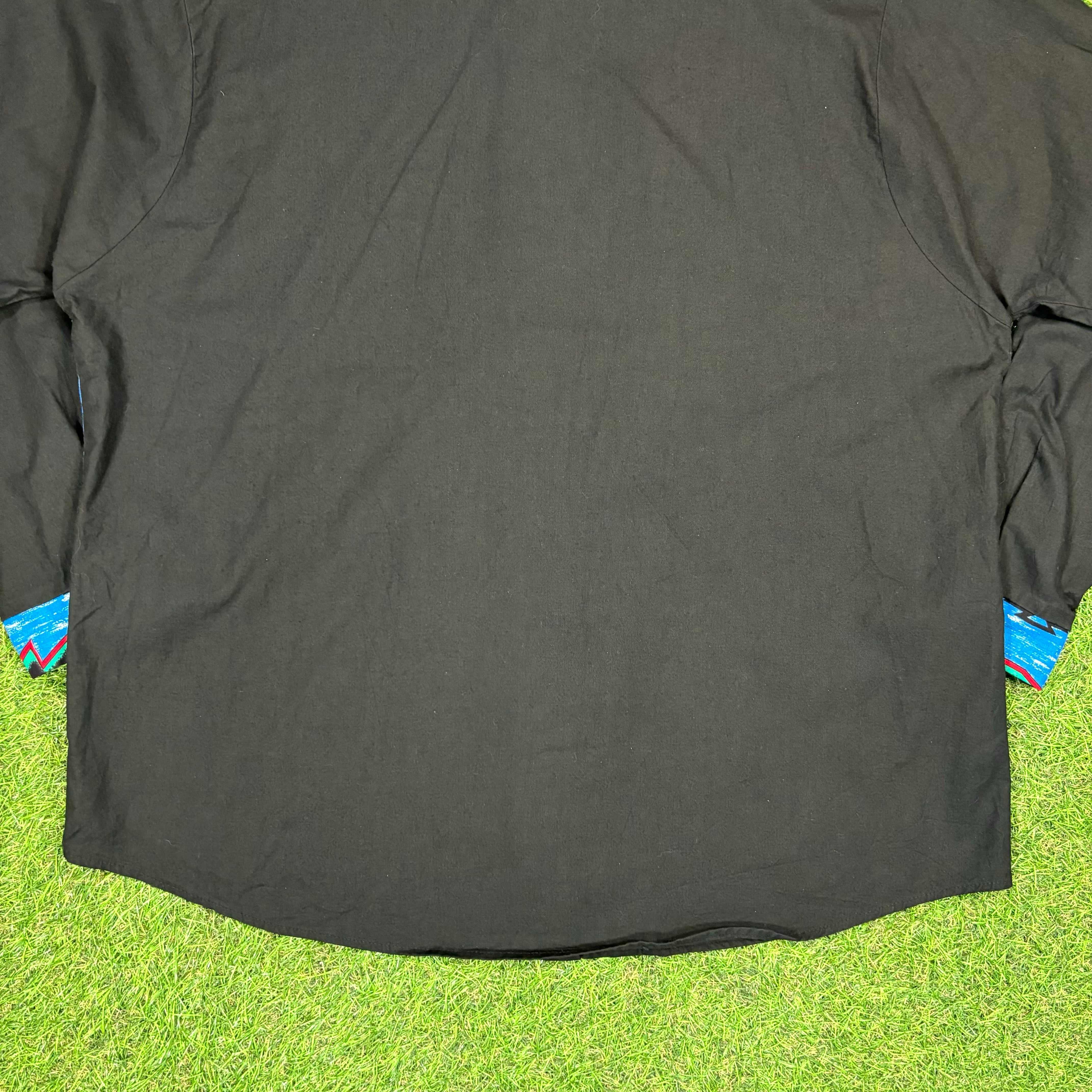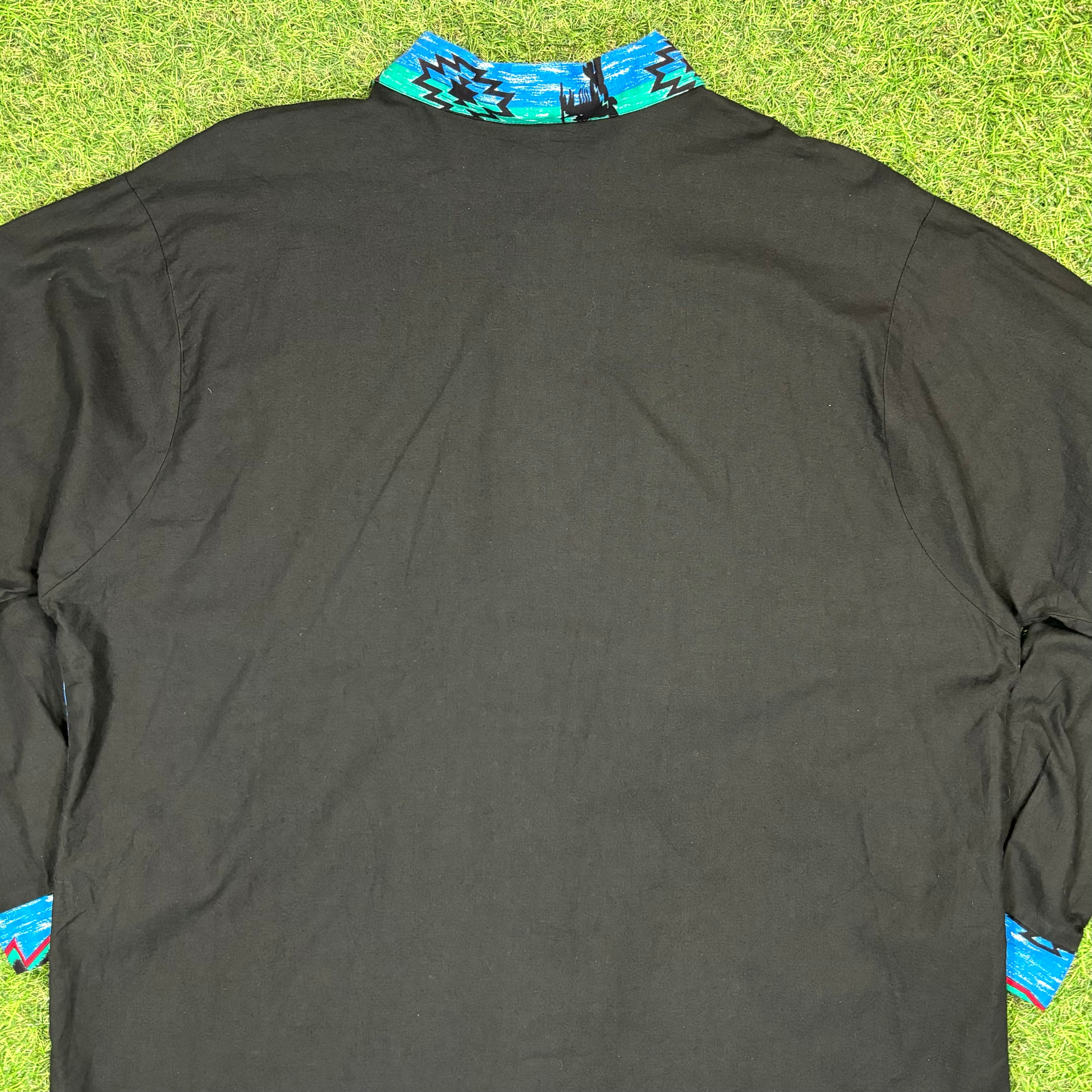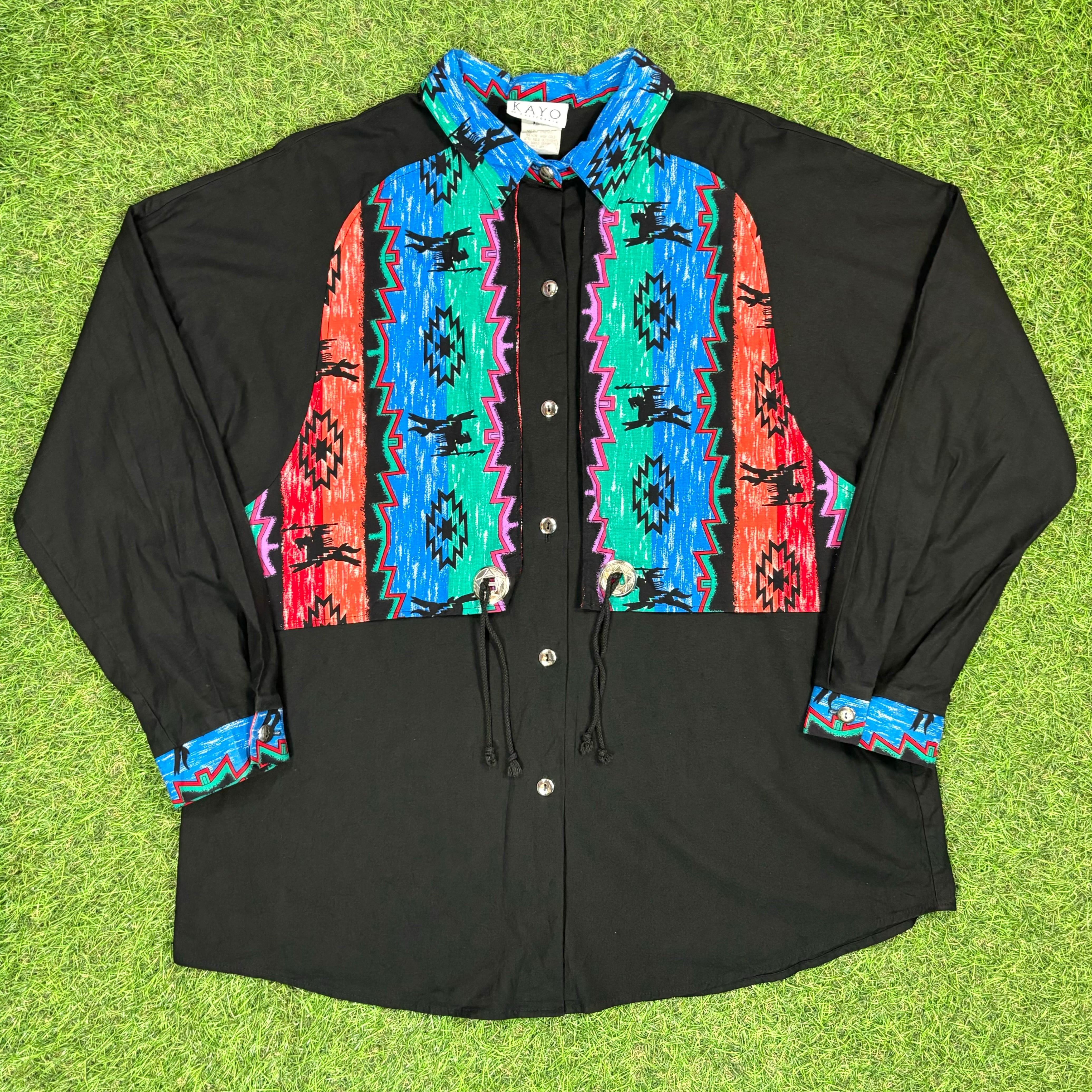 【Unisex】 80s オルテガ 柄 コンチョ 付き ブラック ウェスタンデザイン シャツ / Made In USA アメリカ製 80年代 Vintage ヴィンテージ 古着 ネイティブ ウエスタン ウェスタン