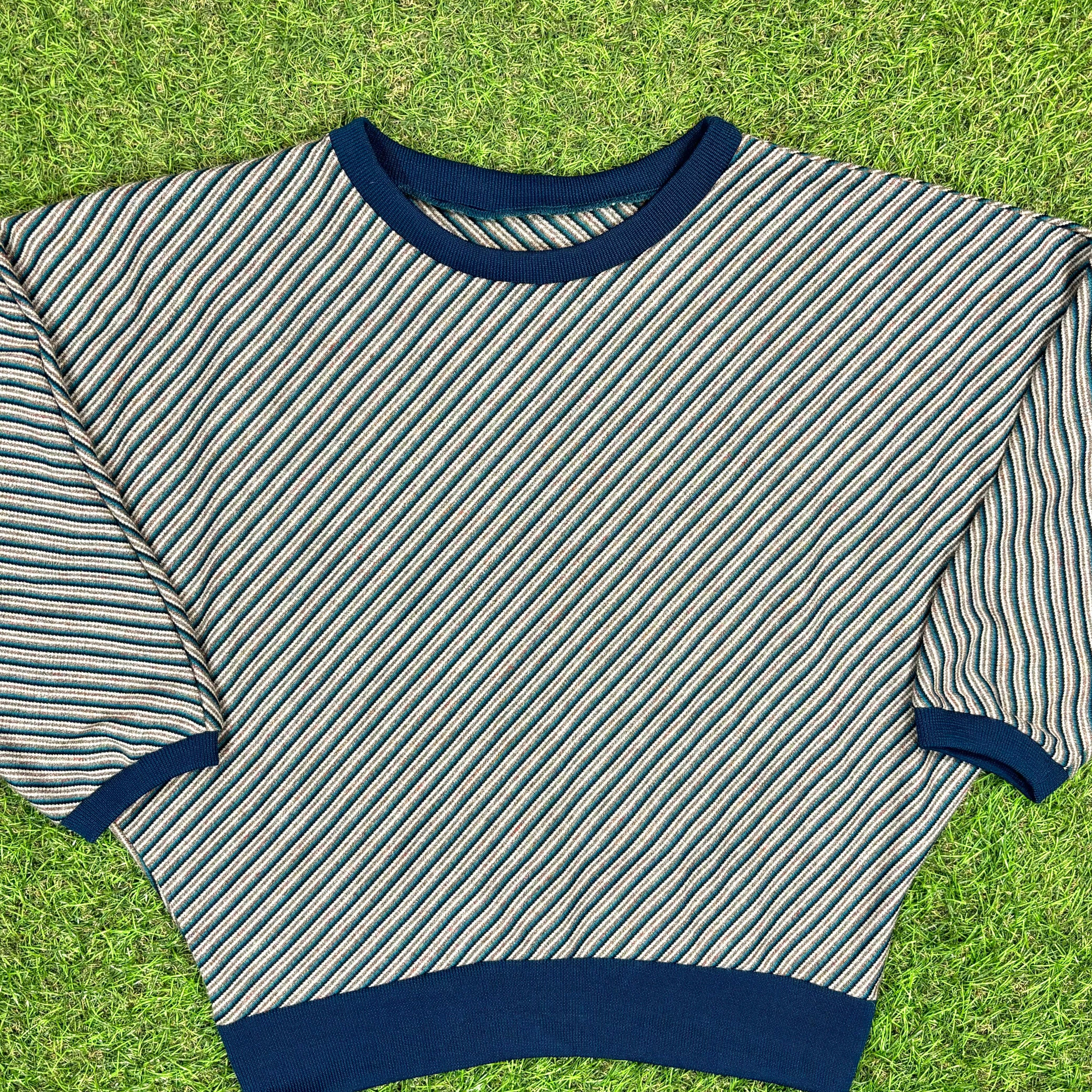 【Lady's】 70s - 80s ドルマンスリーブ ストライプ トップス / Made In USA アメリカ製 70年代 80年代 ドルマン 大人古着 レトロ