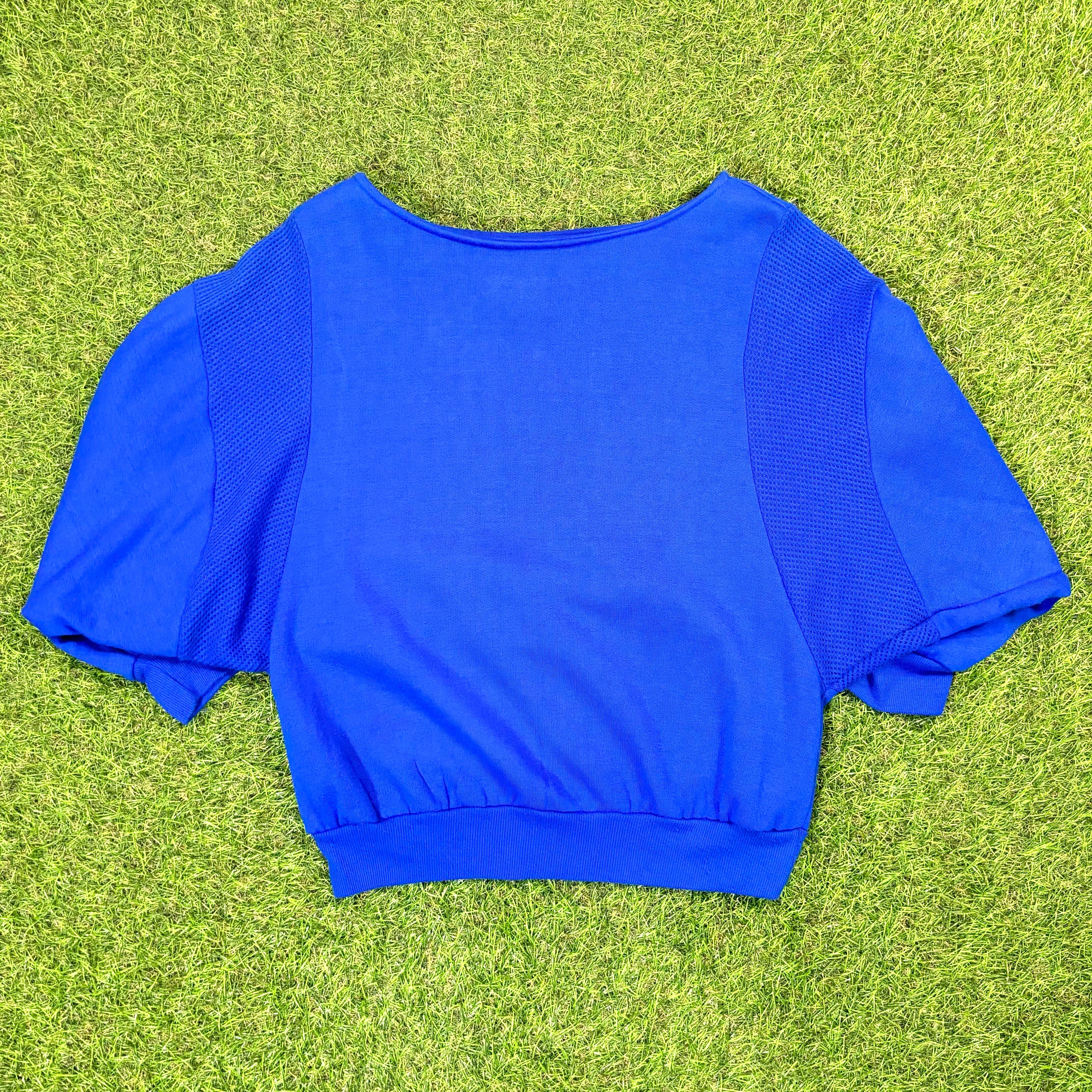 【Lady's】 80s 9~8分袖 ブルー デザイン トップス / Made In USA アメリカ製 古着 80年代 大人古着 スウェット スエット 青 レディース
