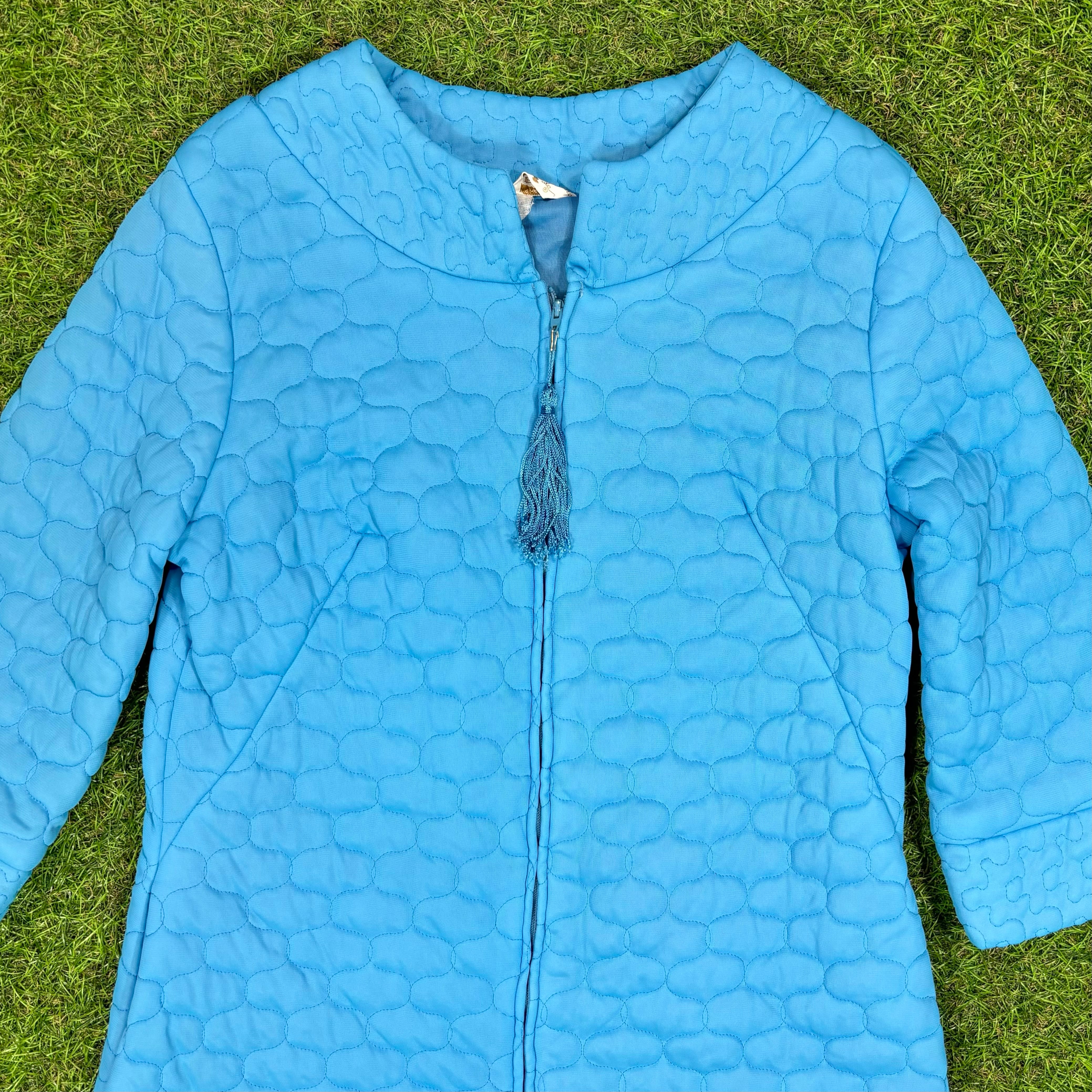 【Lady's】 70s ブルー キルティング 7分袖 プルオーバー ジャケット / 70年代 古着 レディース レトロ Vintage ヴィンテージ