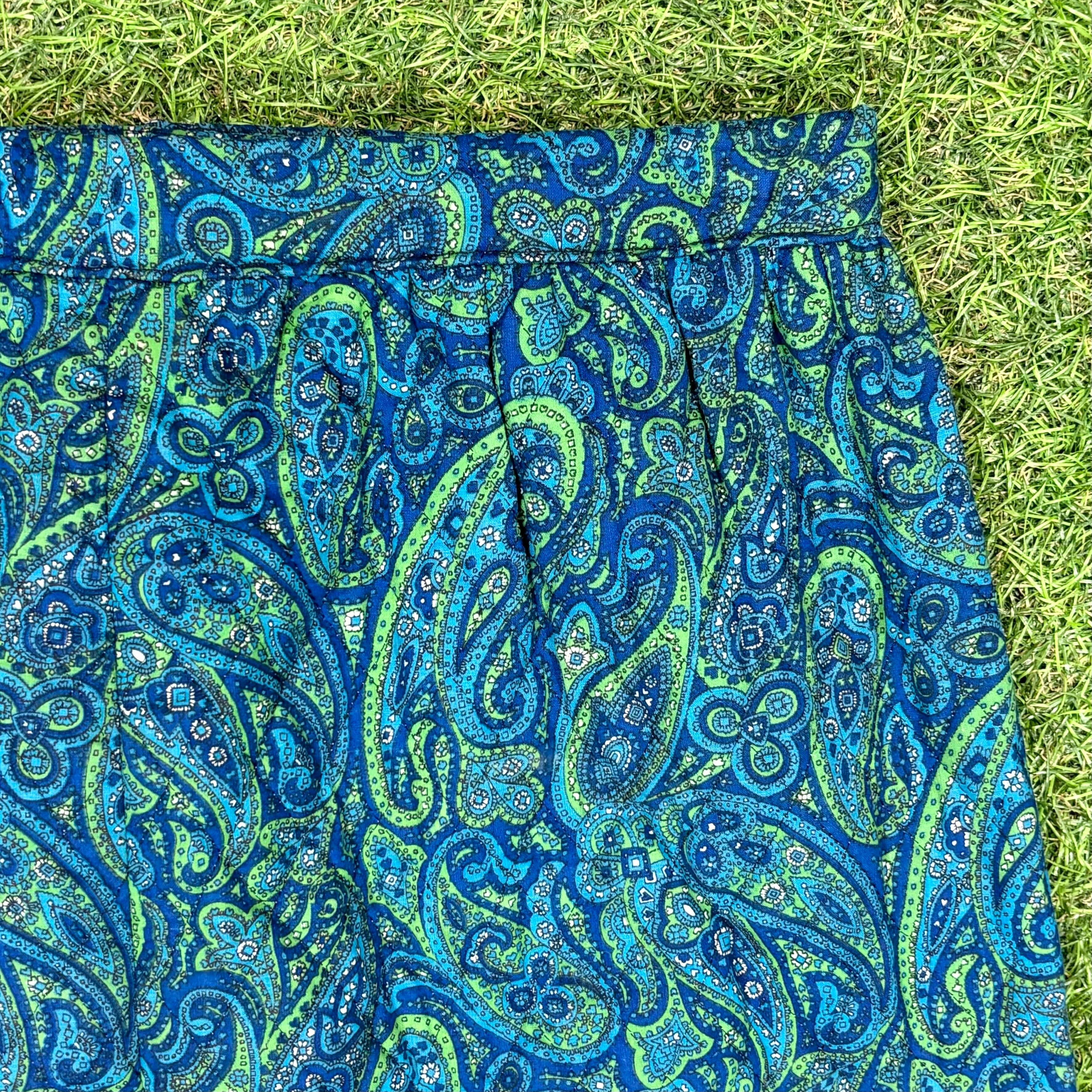 【Lady's】 ブルー キルティング 生地 ペイズリー スカート / 古着 総柄 レトロ エスニック 大人古着