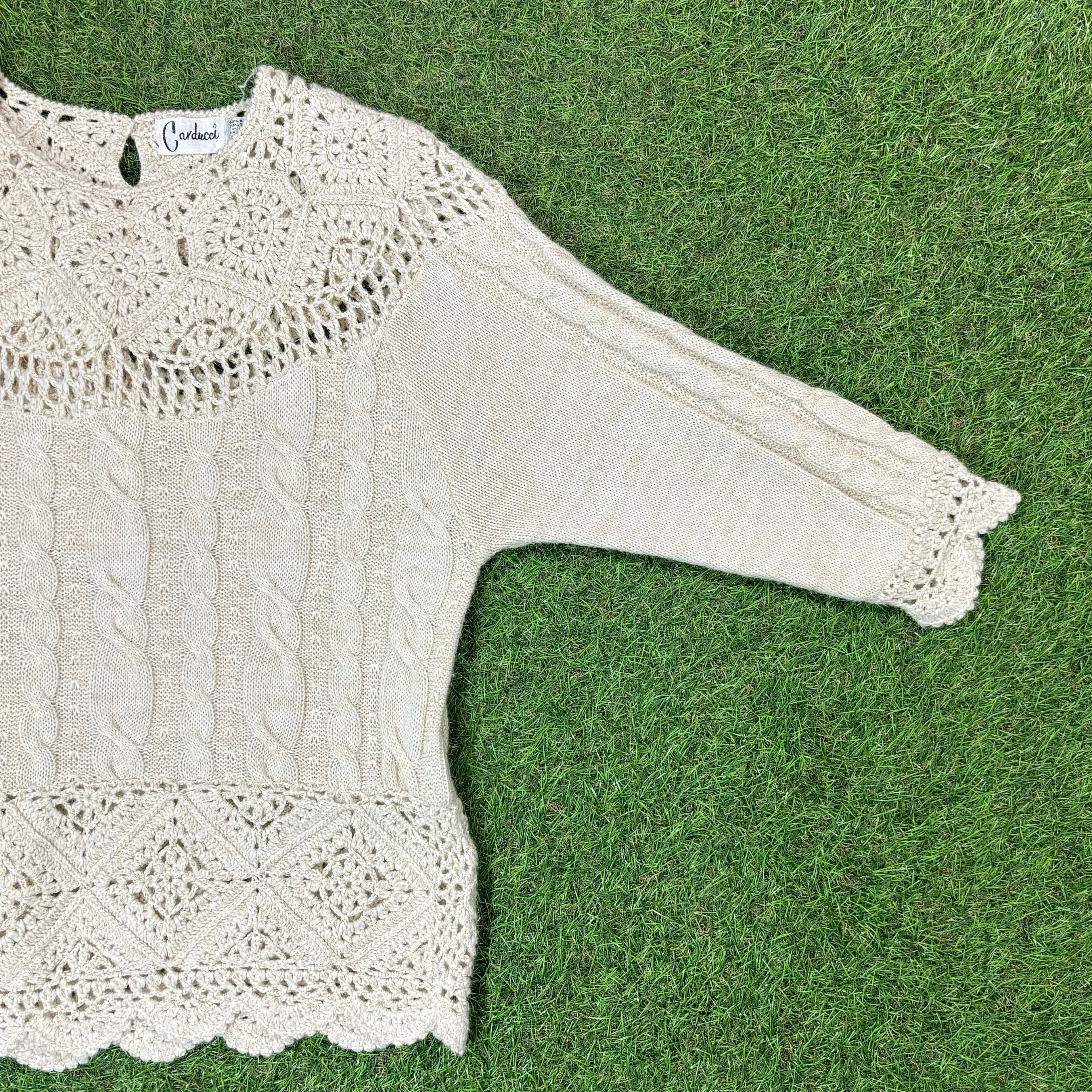 【Lady's】 80s - 90s 7分袖 ホワイト ニット トップス / 80年代 90年代 古着 セーター 白 レディース