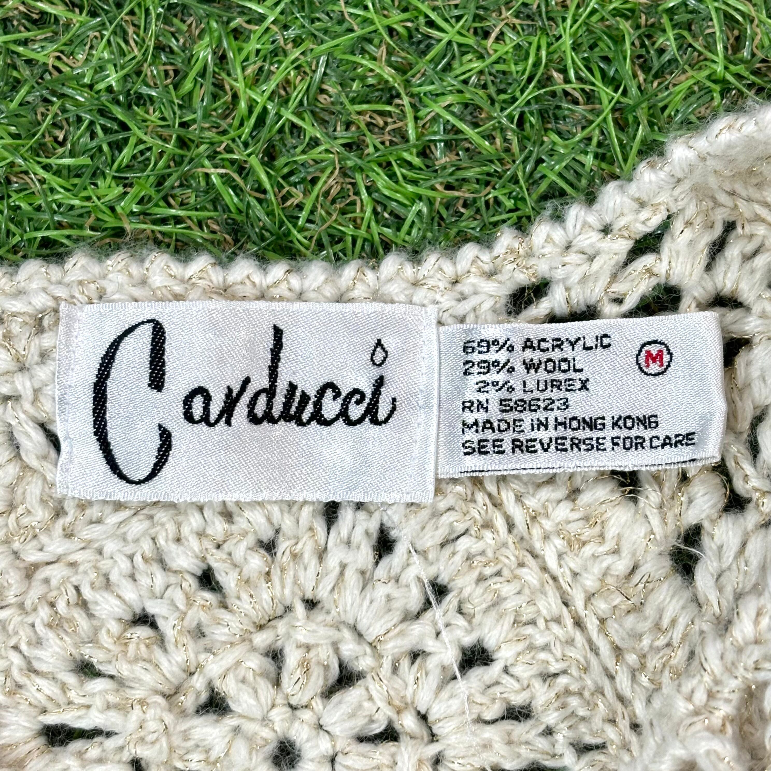 ニットが2種類の編み方がされています。金の糸も使っているのでキラキララメがついているような印象でとっても可愛いアイテムです。