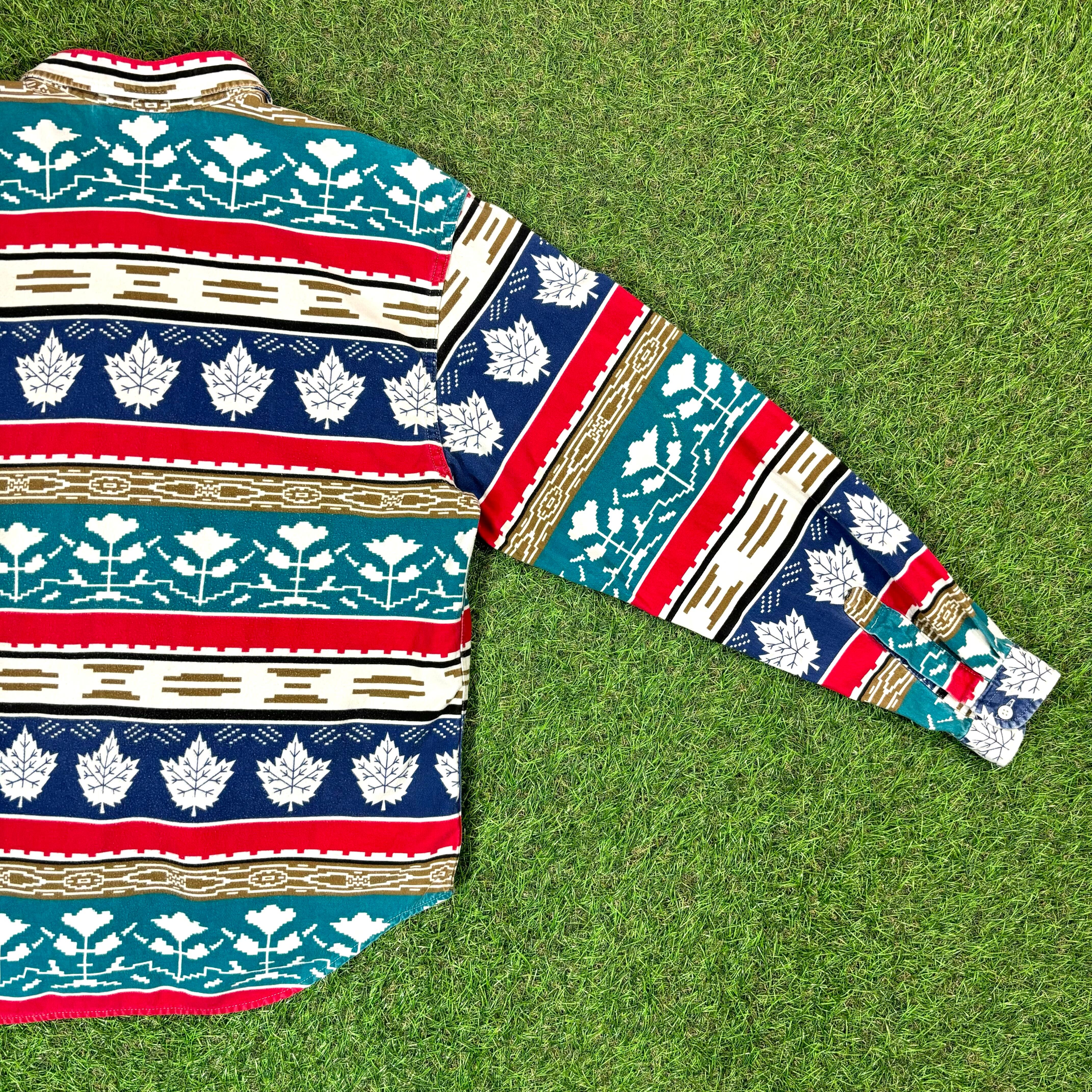 【Lady's】 90s Woolrich ボタニカル柄 長袖 フランネルシャツ / Made In USA シャツ アメリカ製 フランネル 90年代 ウールリッチ 総柄 柄シャツ ノルディック