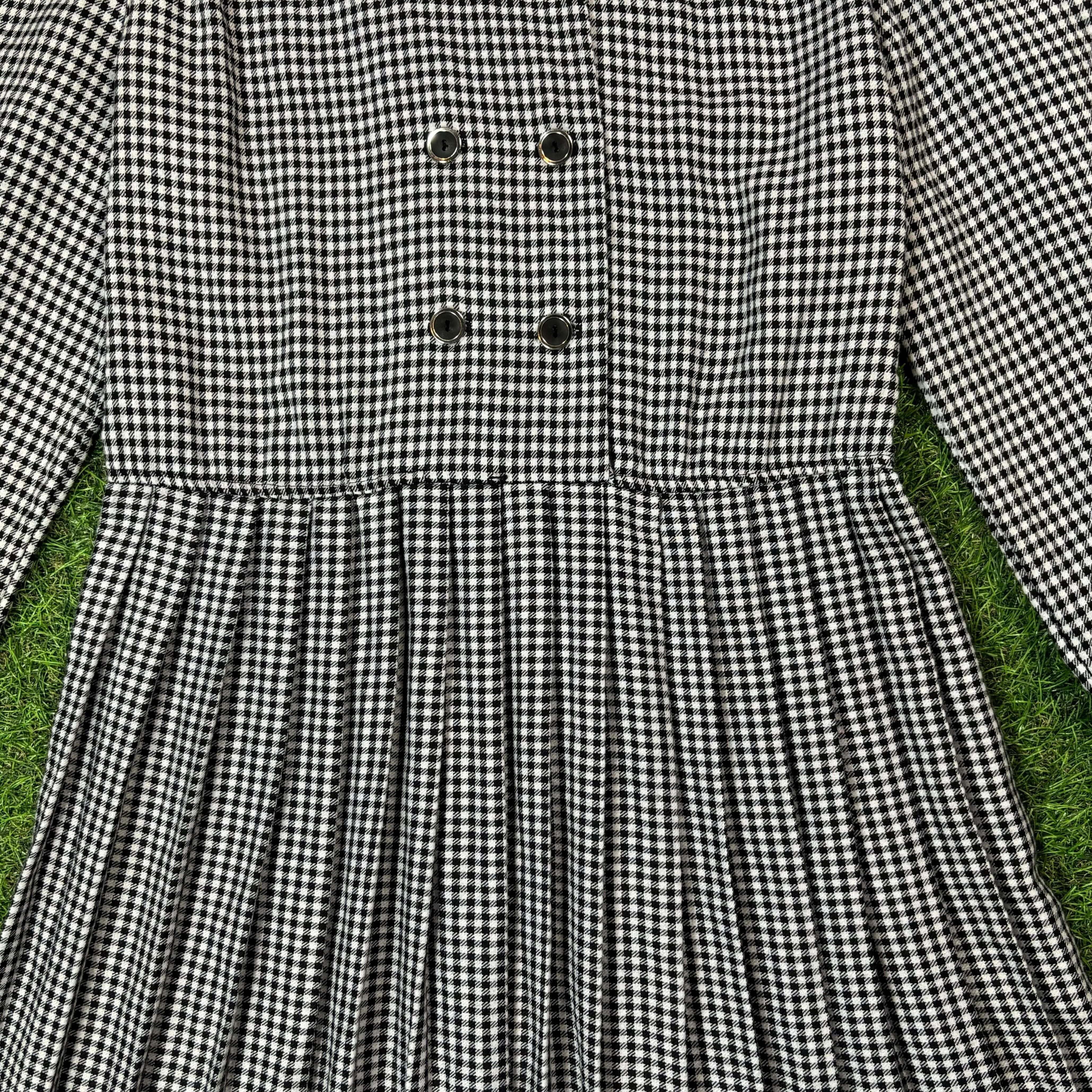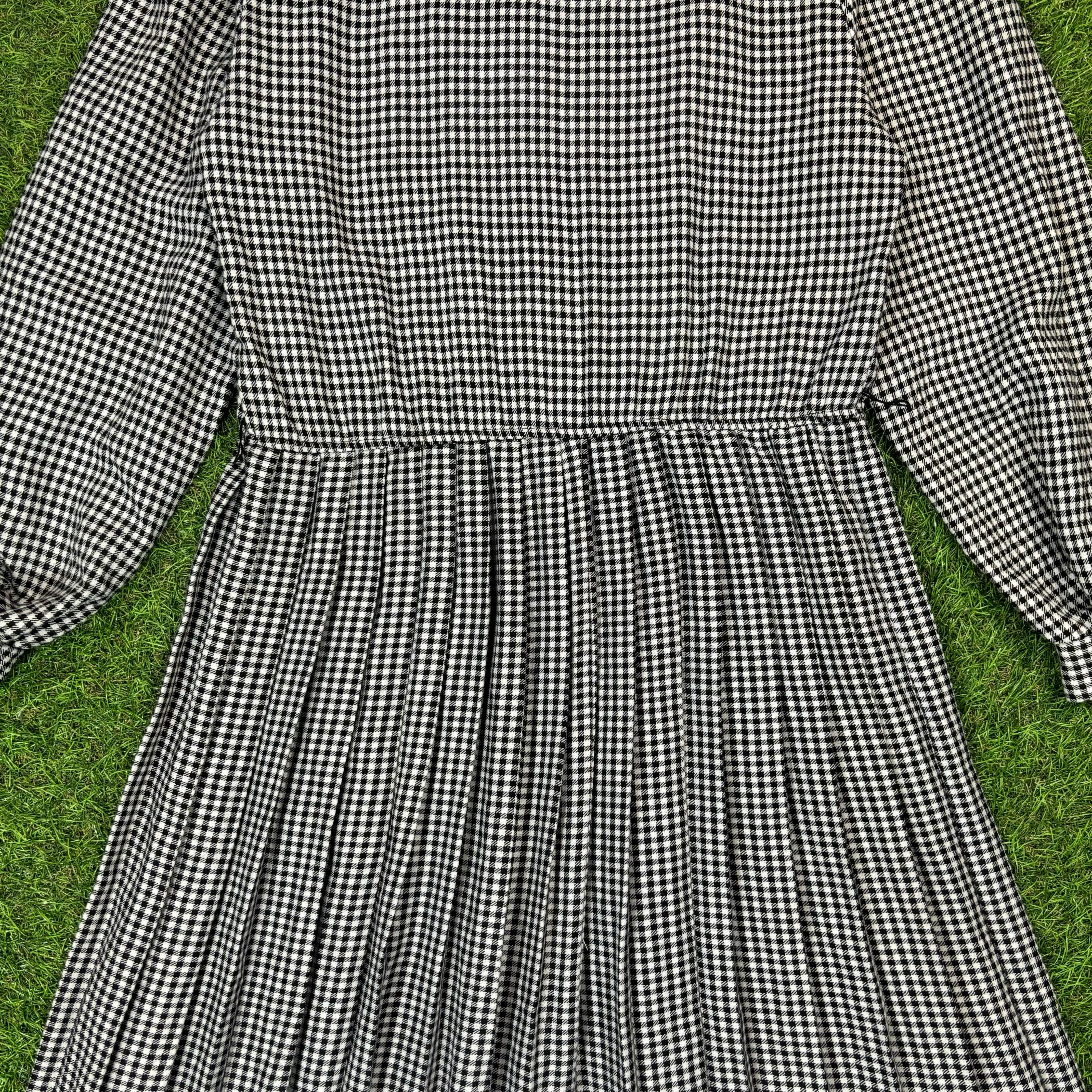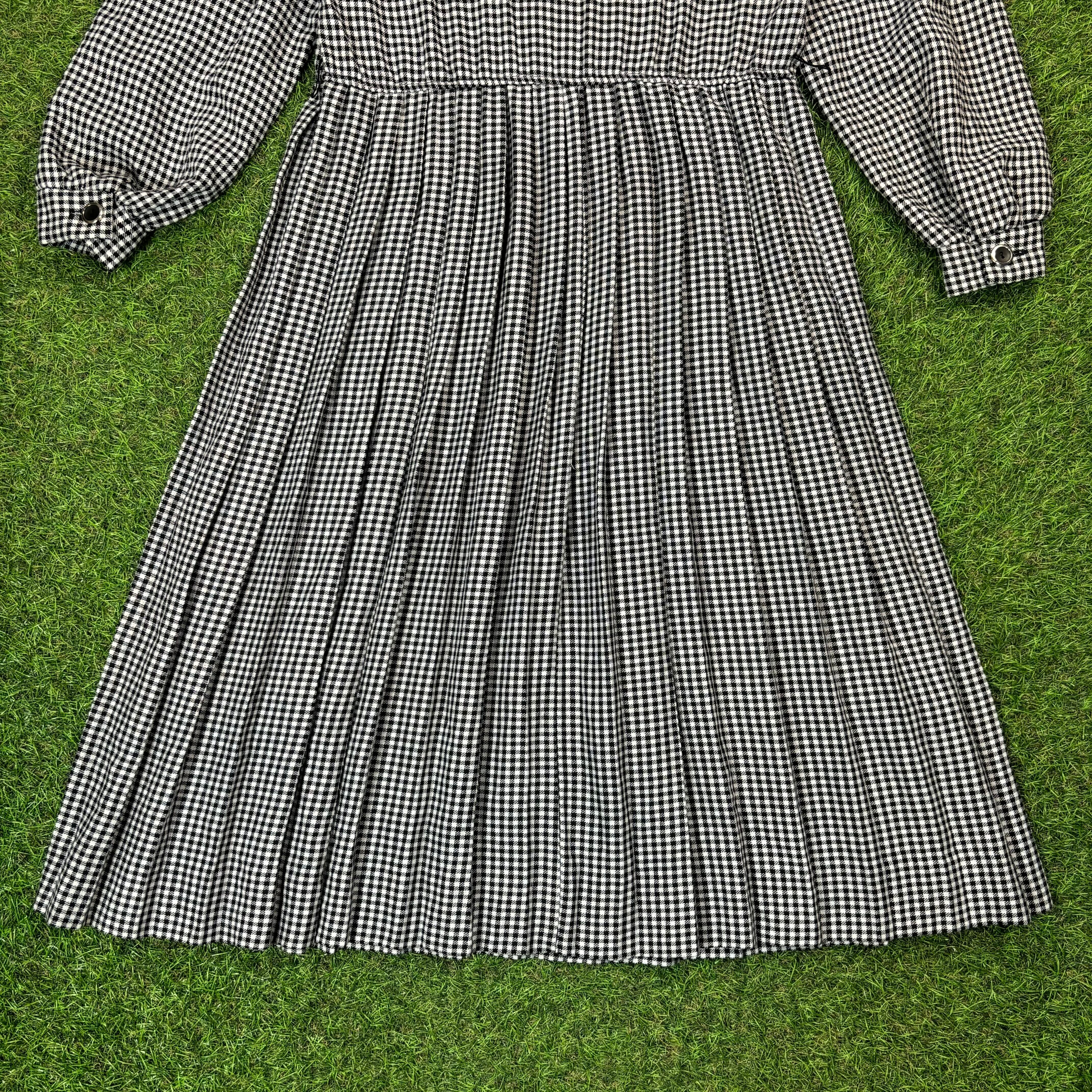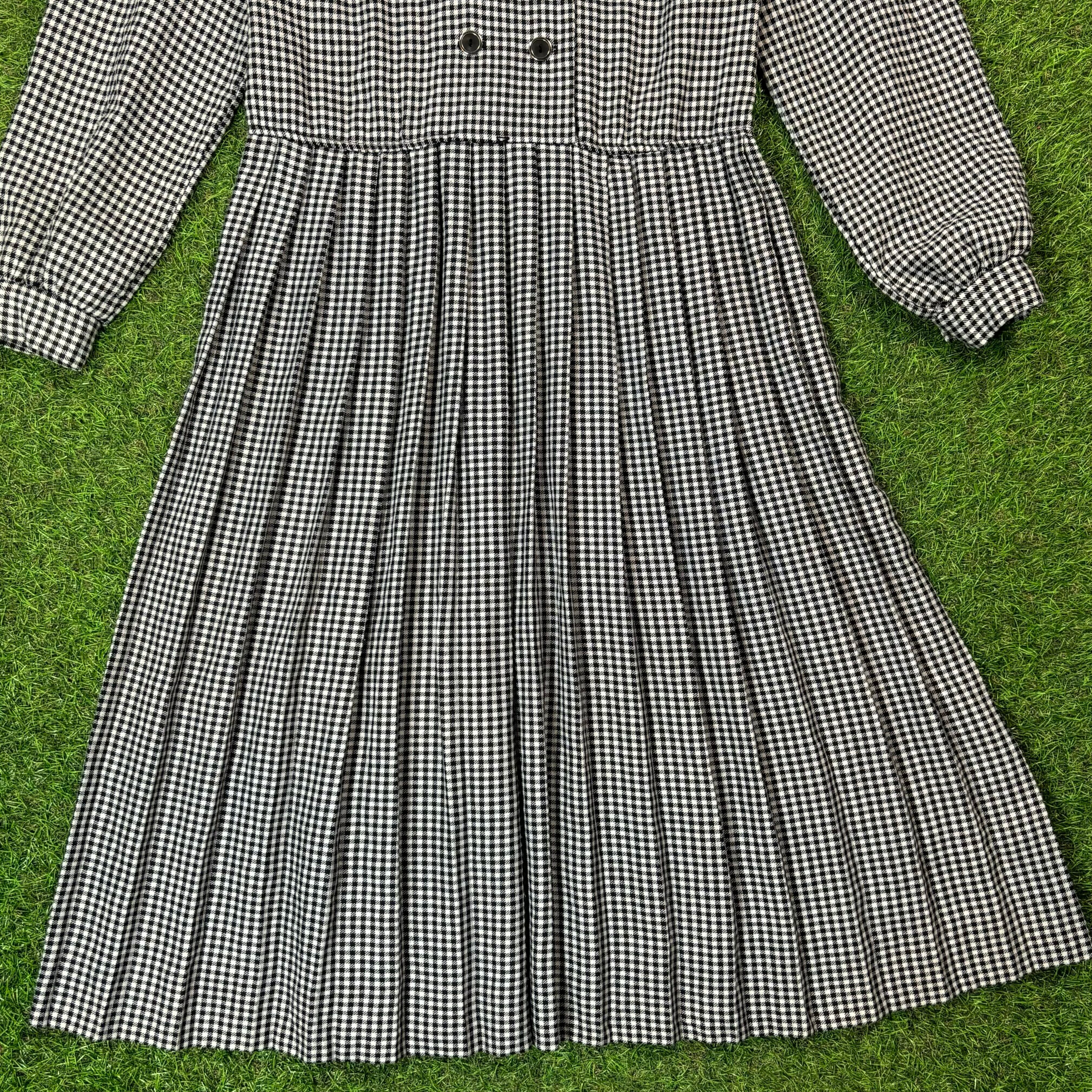 【Lady's】 80s チェック 柄 ロング丈 ワンピース / Made In USA アメリカ製 古着 白黒 モノトーン 80年代 レトロ 古着 Vintage ヴィンテージ