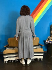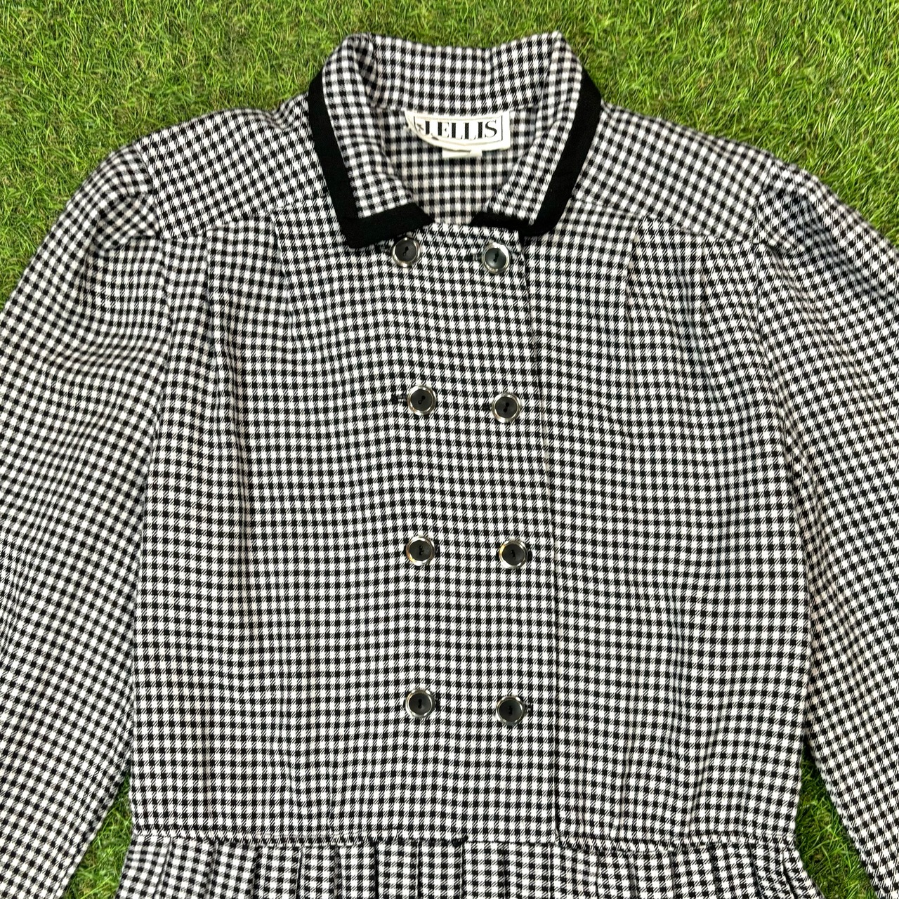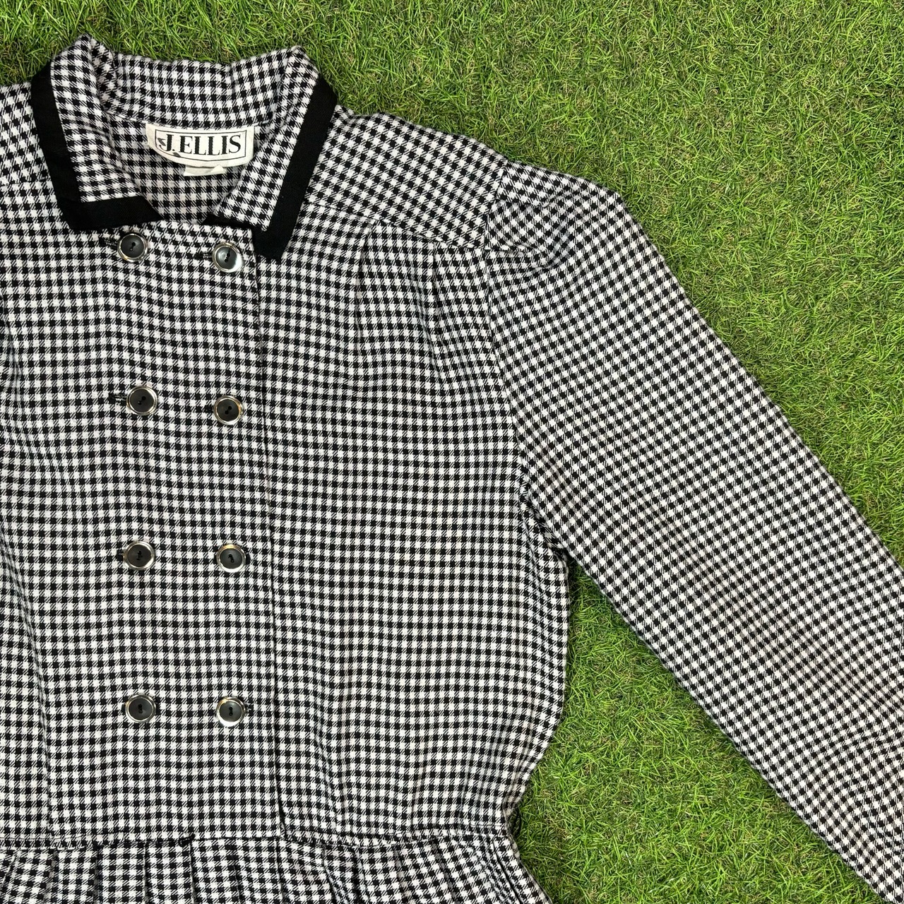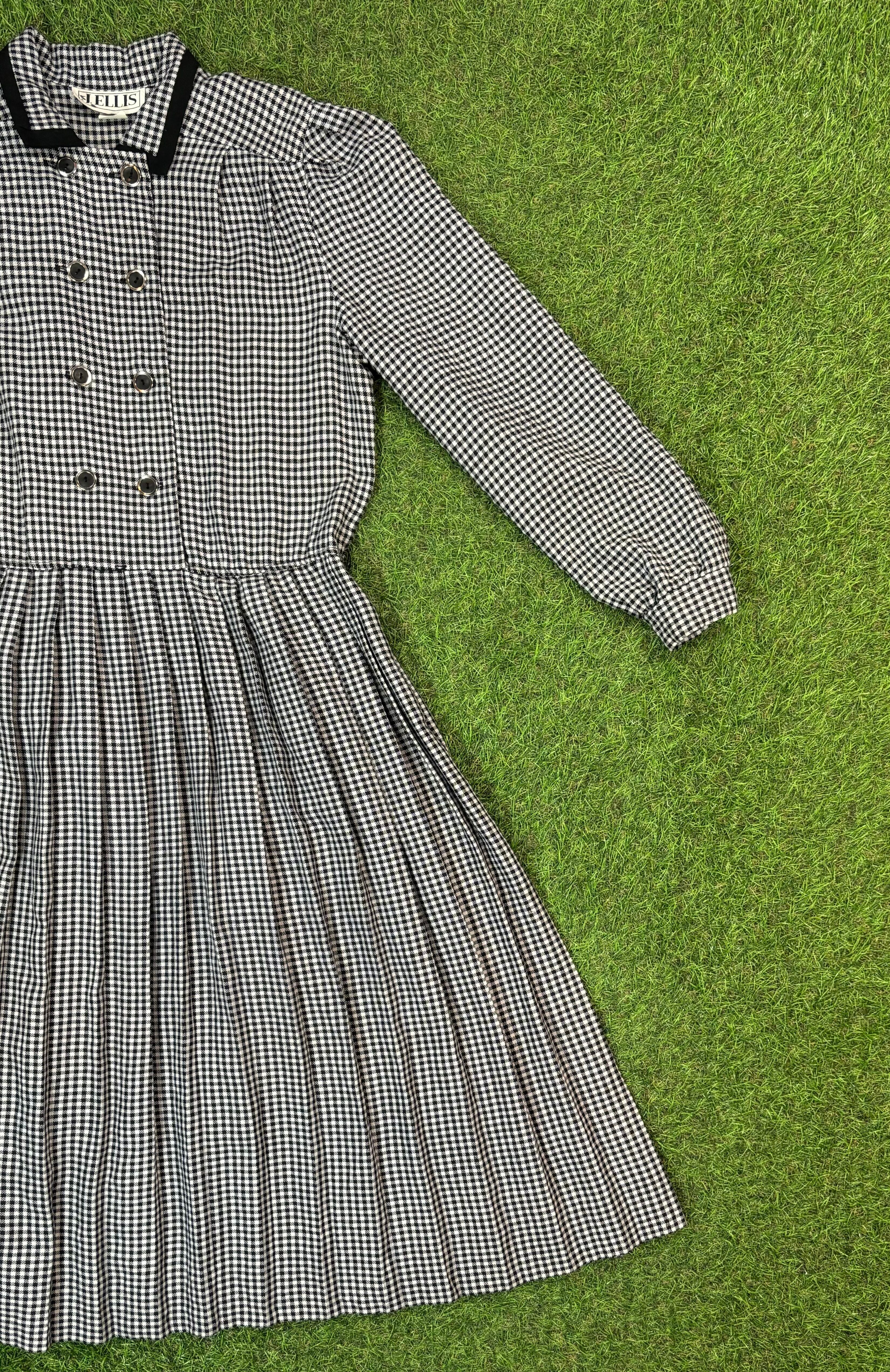 【Lady's】 80s チェック 柄 ロング丈 ワンピース / Made In USA アメリカ製 古着 白黒 モノトーン 80年代 レトロ 古着 Vintage ヴィンテージ