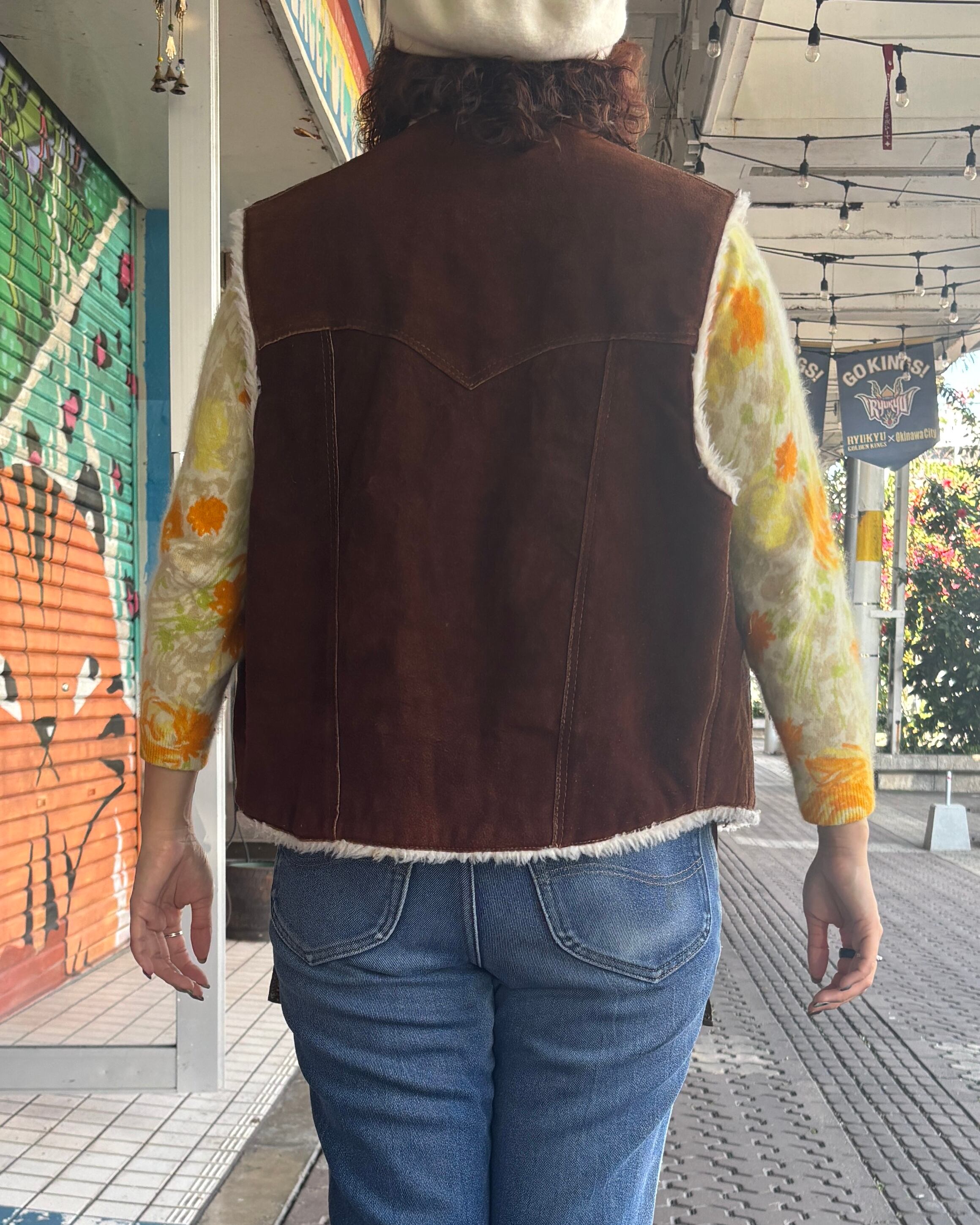 【Men's】70s ~ 裏ボア メキシカン デザイン スウェード ベスト / Made In MEXICO ヒッピー レザー メキシコ製 メンズ 90年代 古着 Vintage ヴィンテージ