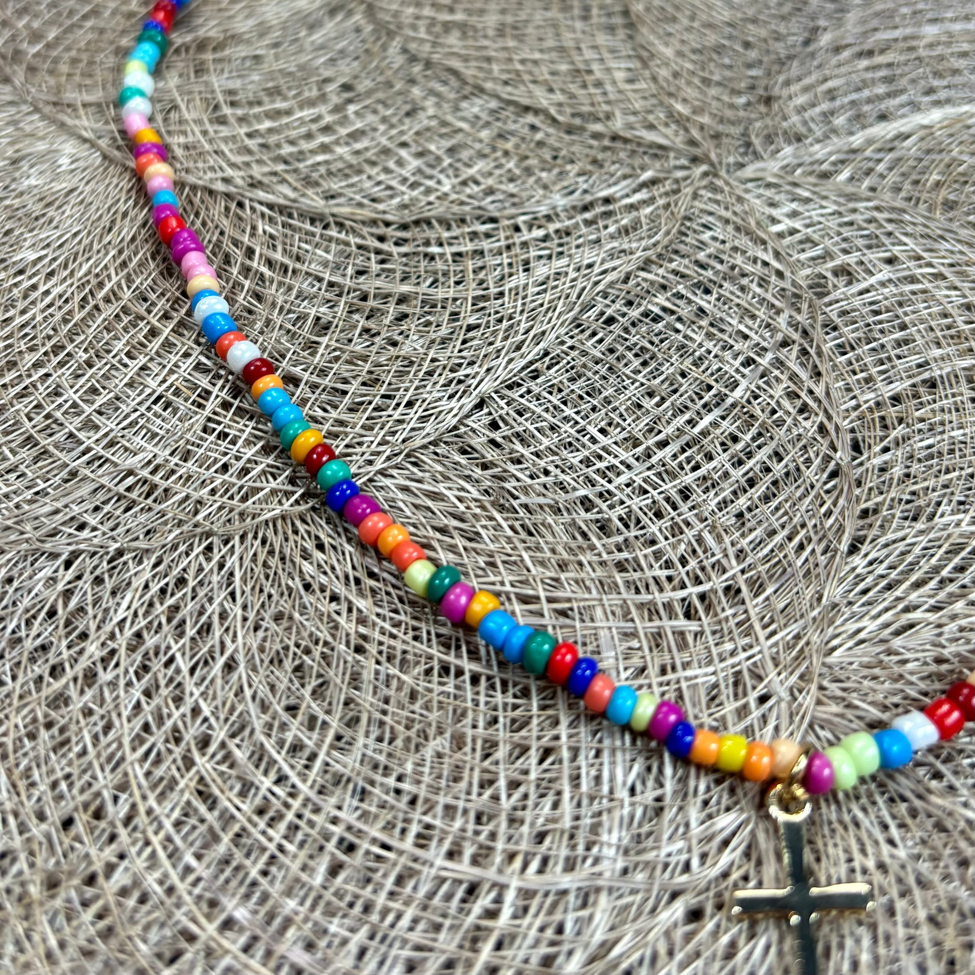 【Unisex】カラフル メキシカンビーズ クロス ネックレス / 古着 アクセサリー メキシコ