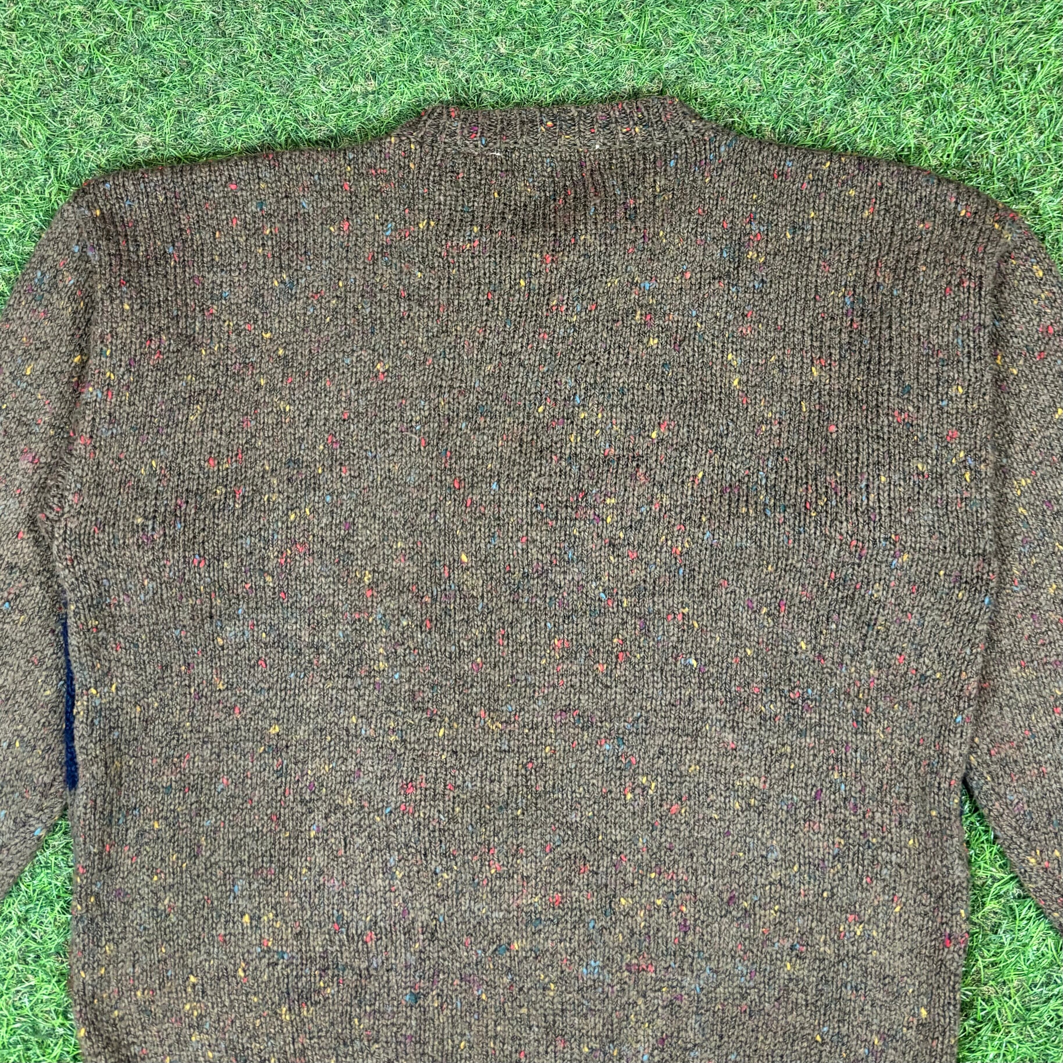 【Lady's】80s ネイティブ デザイン ネップ ミックス ニット / Vintage 古着 セーター オルテガ ブロック ブラウン 茶色