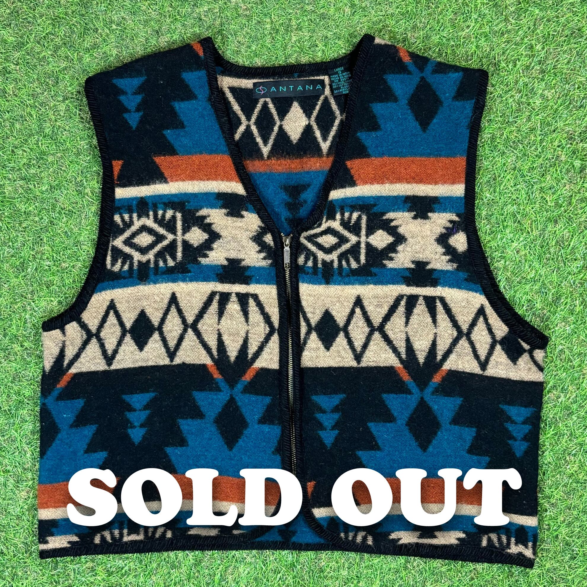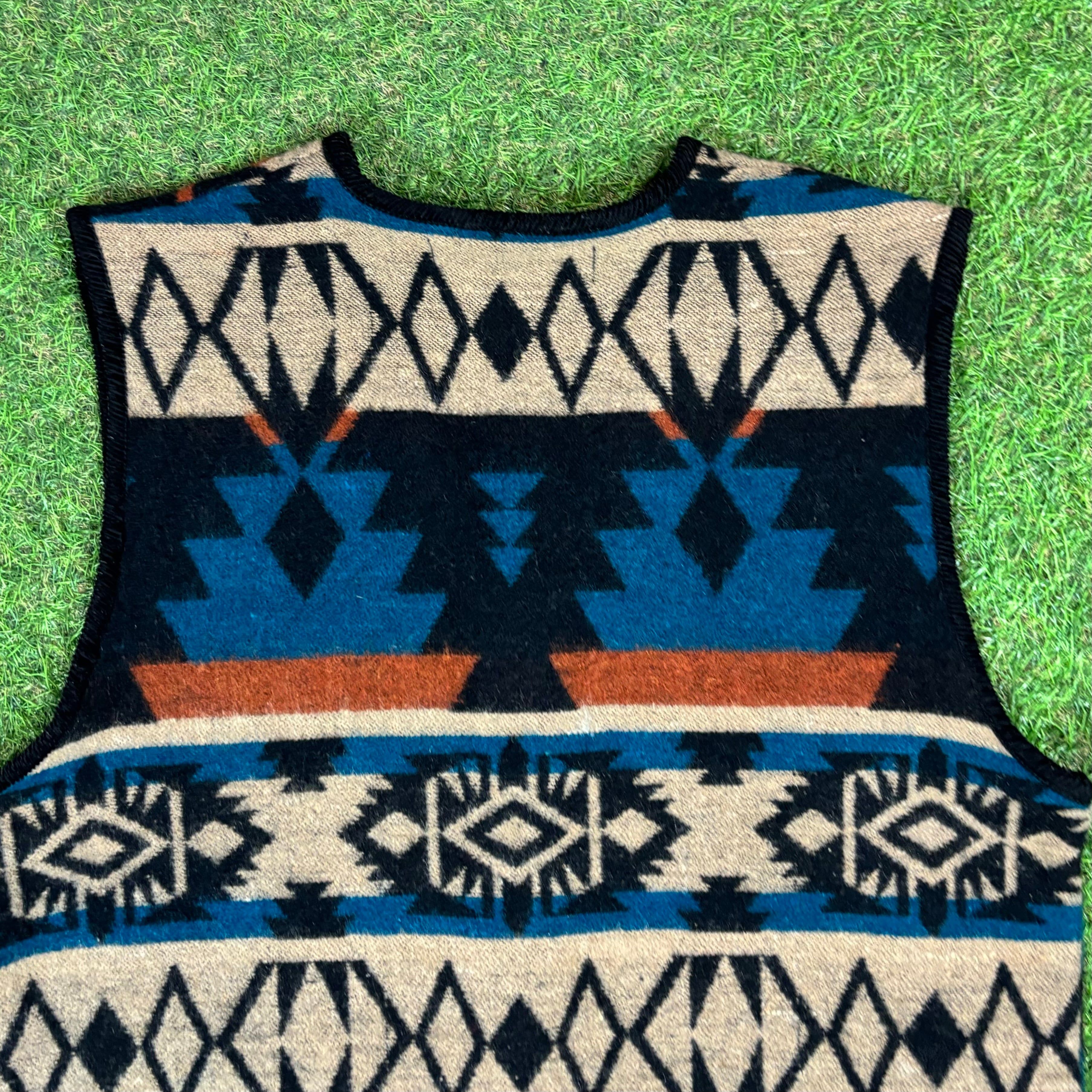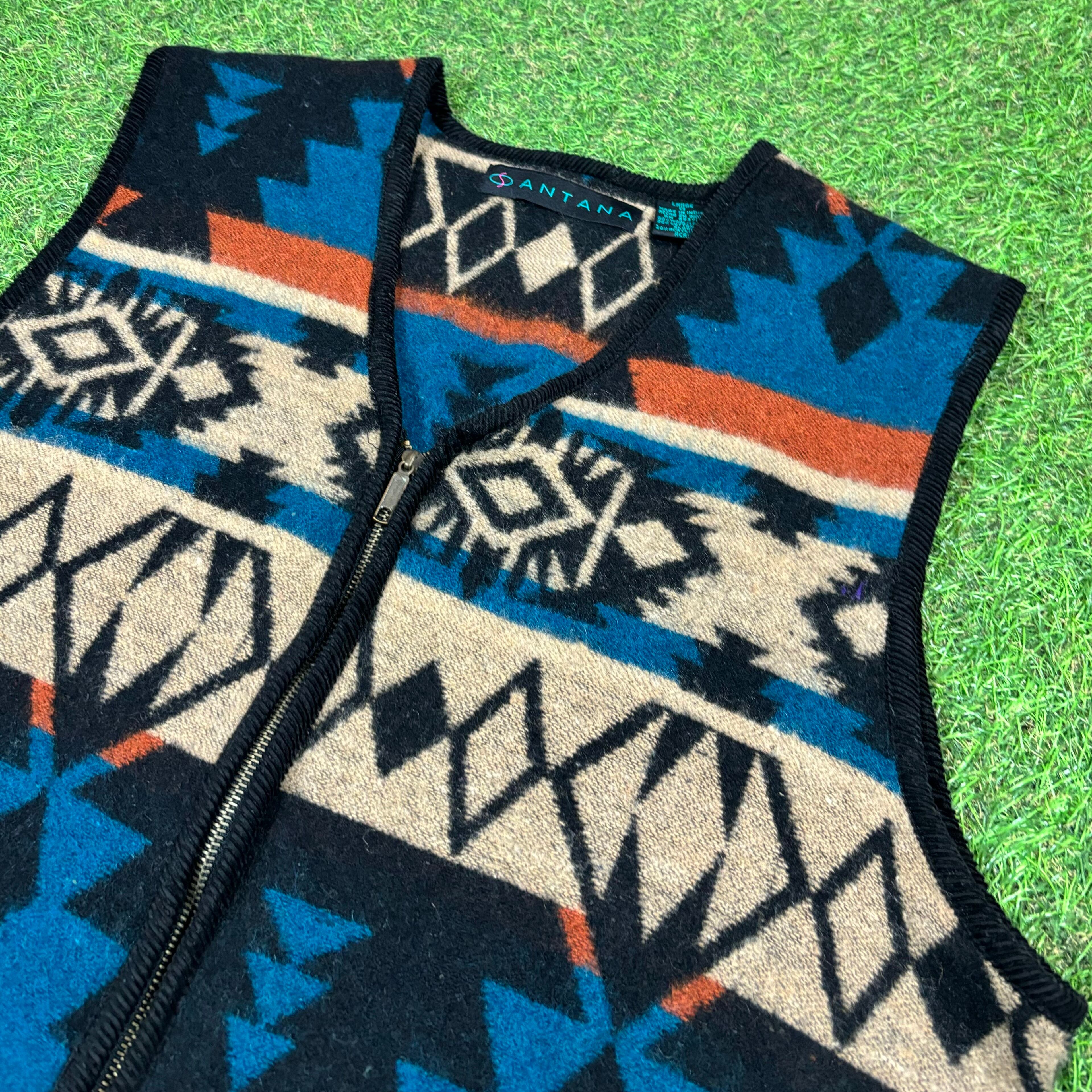 【Men's】90s ネイティブ オルテガ デザイン ウール ベスト / Vintage ヴィンテージ 古着 総柄 ジップアップ