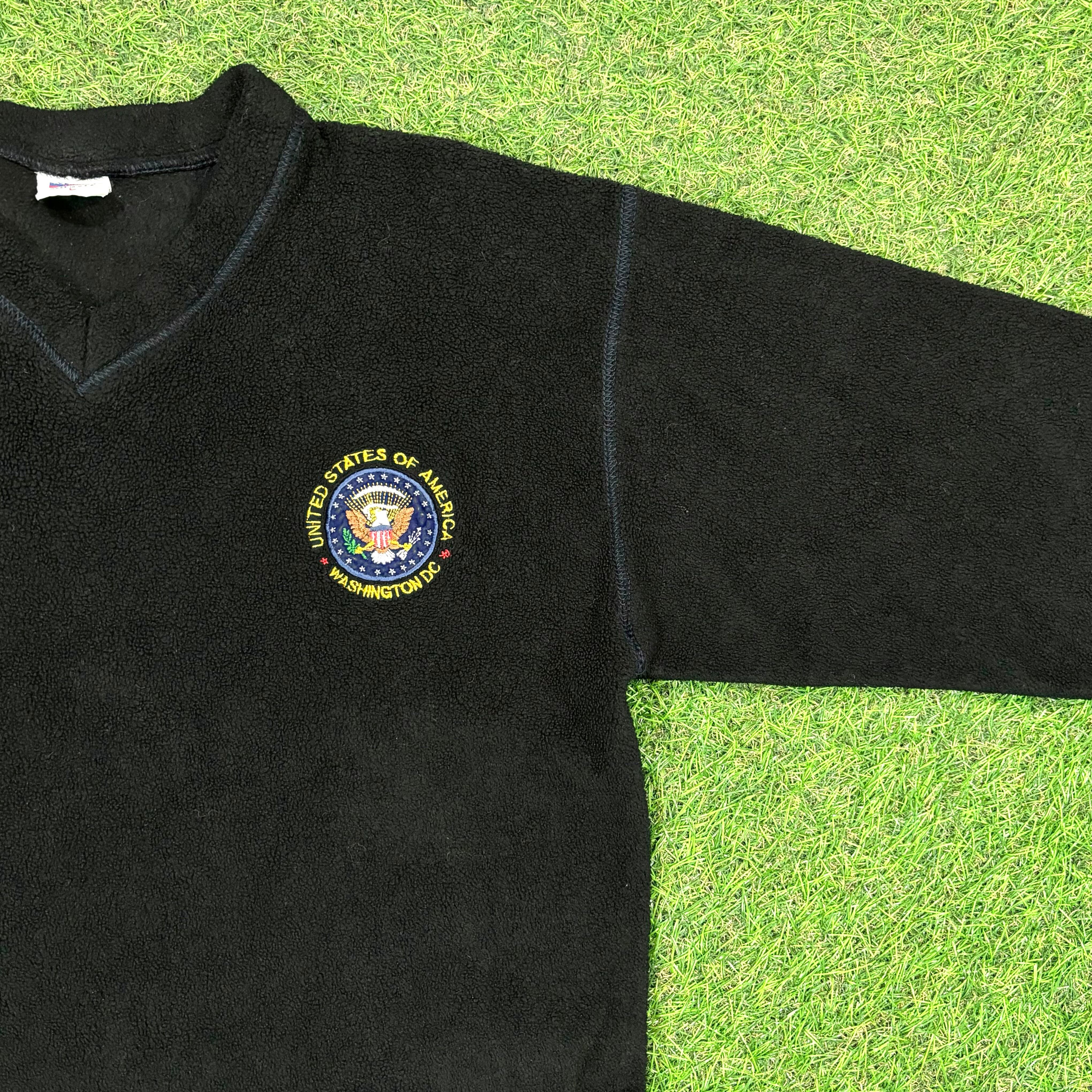 【Men's】 Washington, D.C. Vネック フリース トップス / Made In USA 古着 アメリカ製 メンズ 黒 ブラック