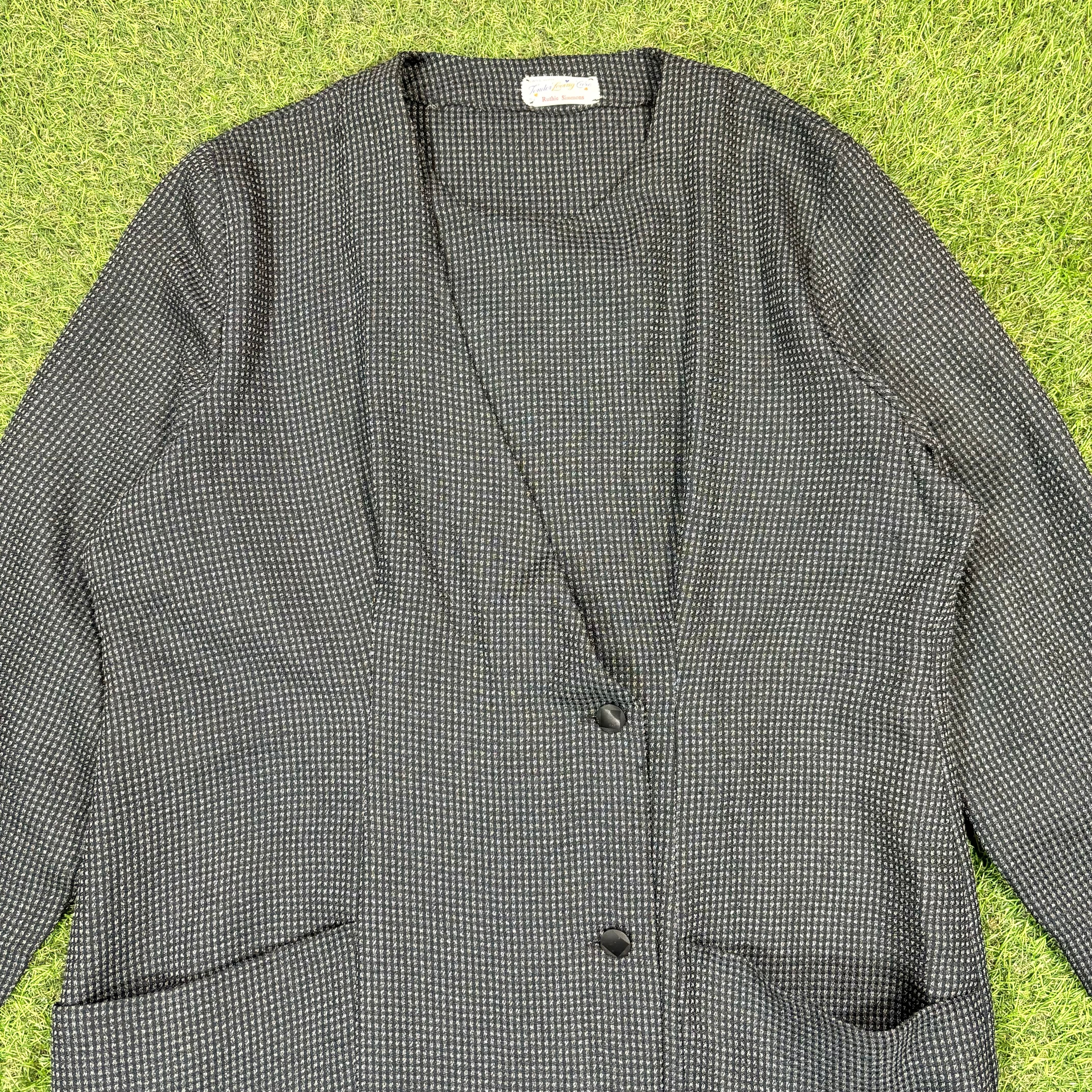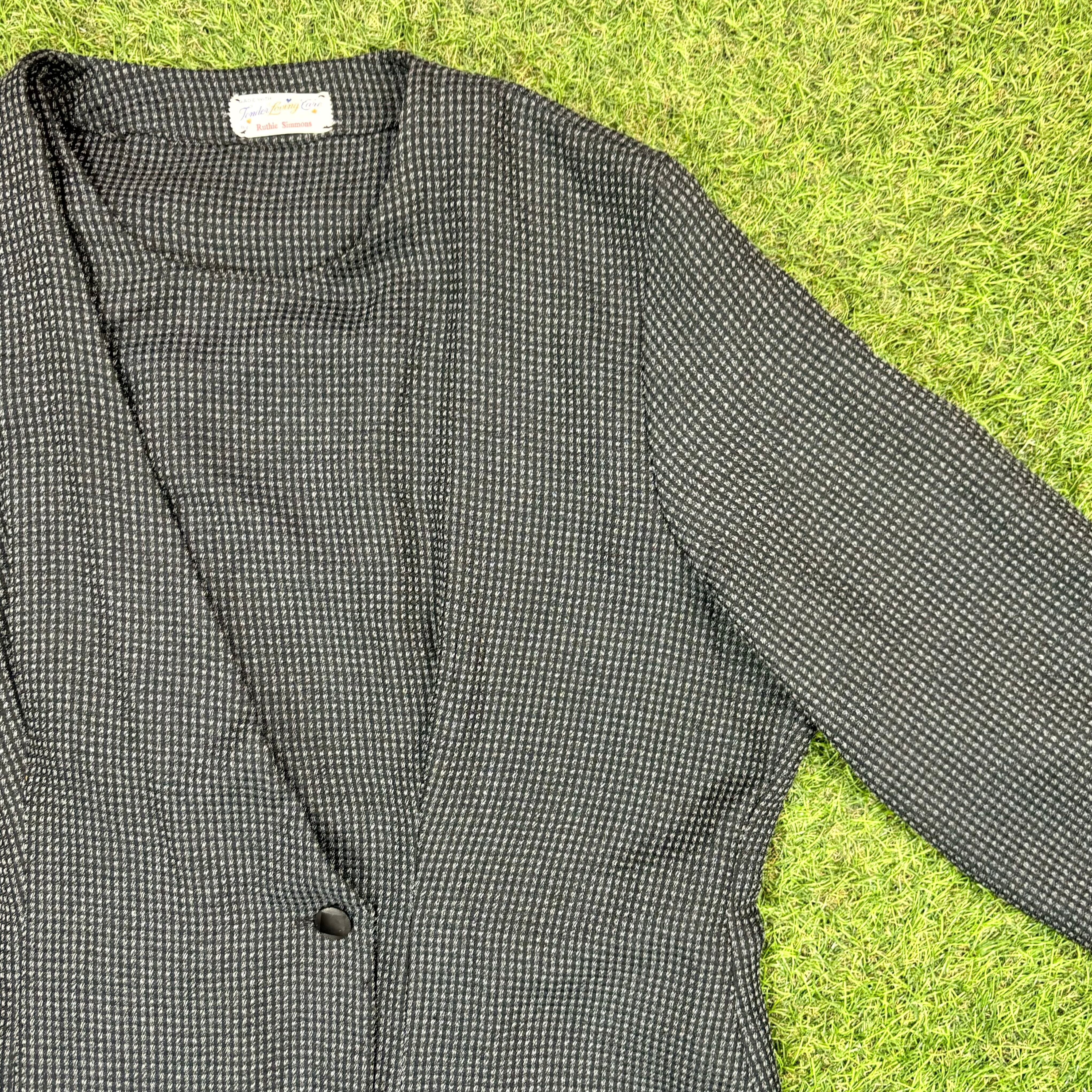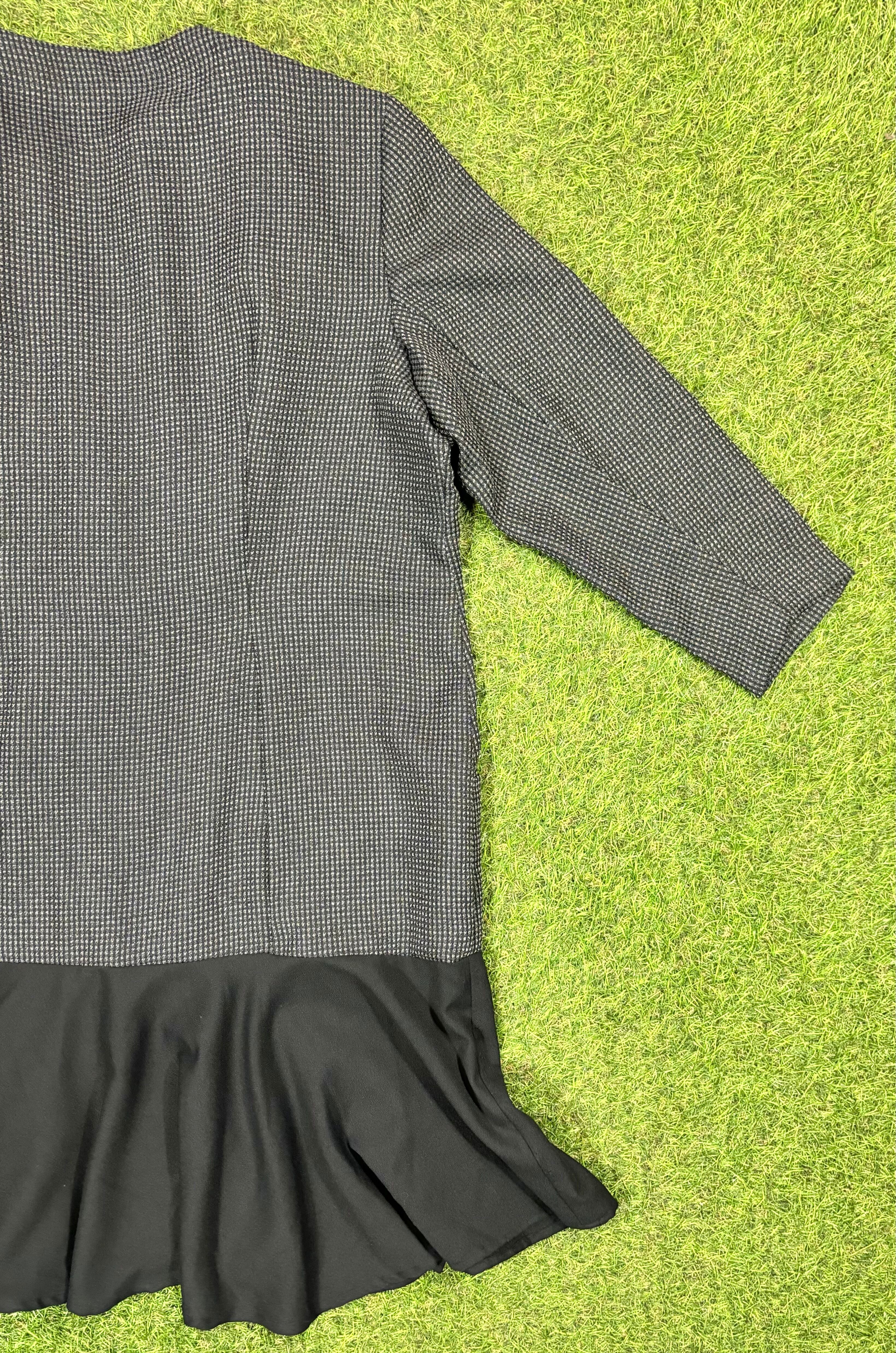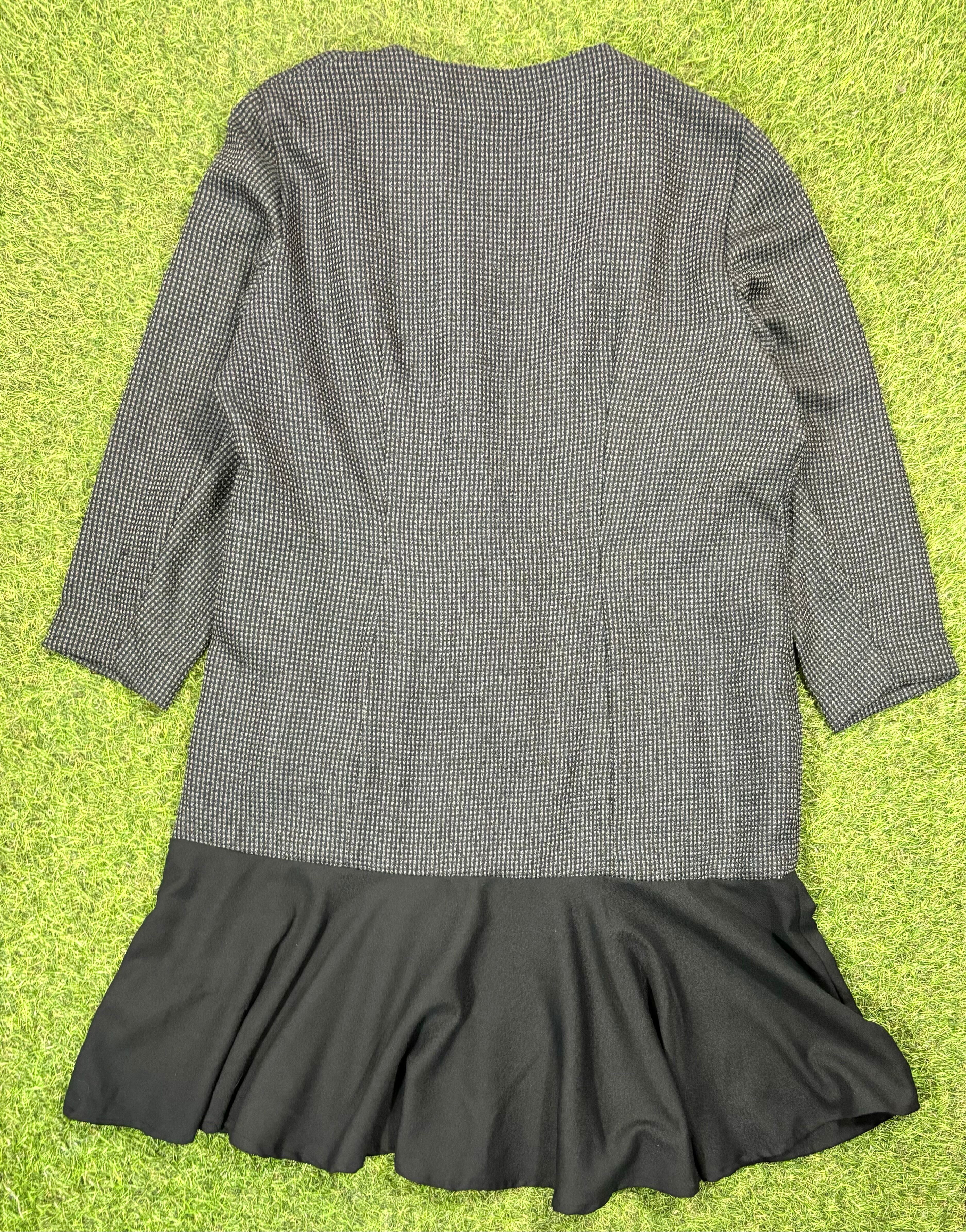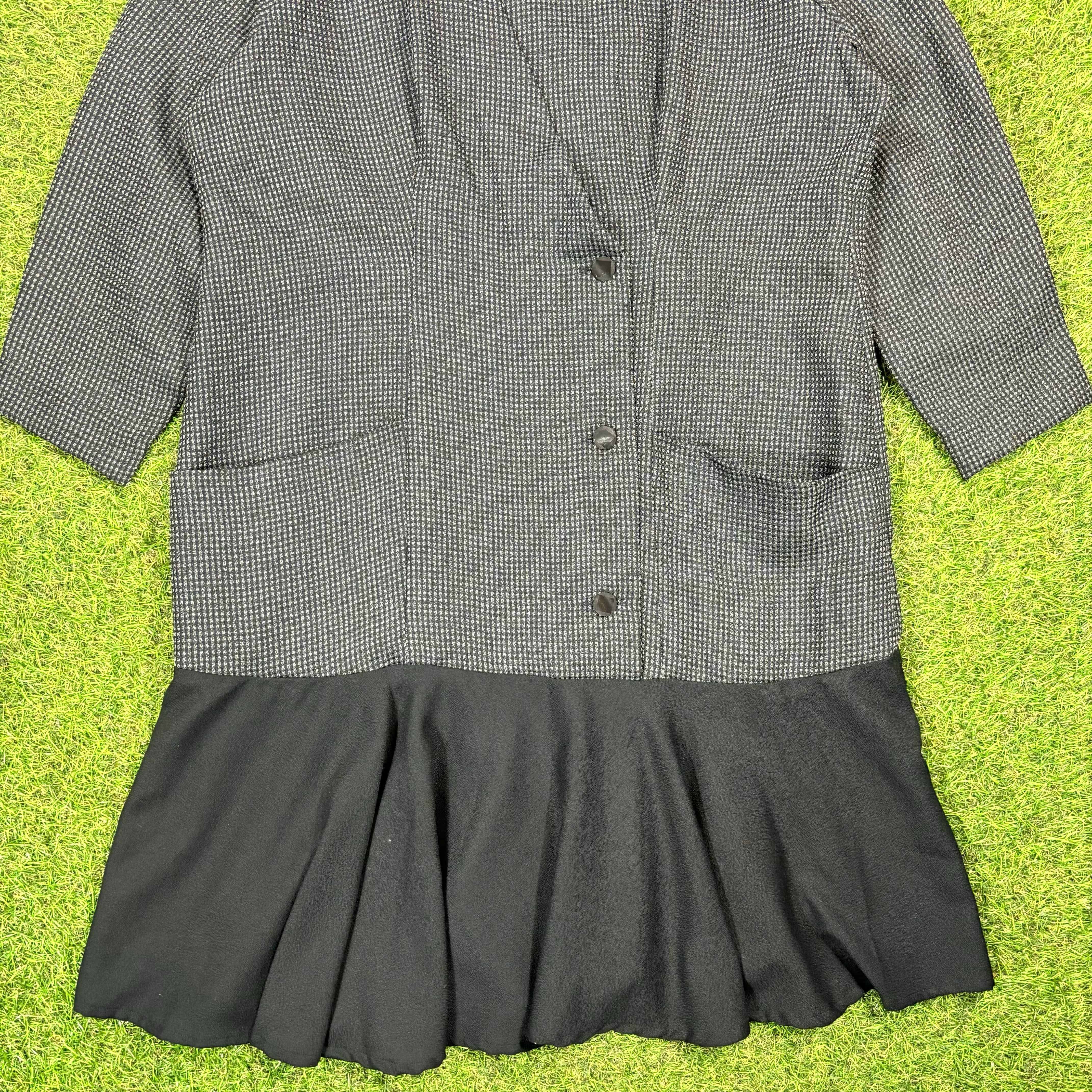【Lady's】 70s グレー ブラック 切り返しデザイン ワンピース / 70年代 古着 Vintage ヴィンテージ レトロ レディース モノトーン