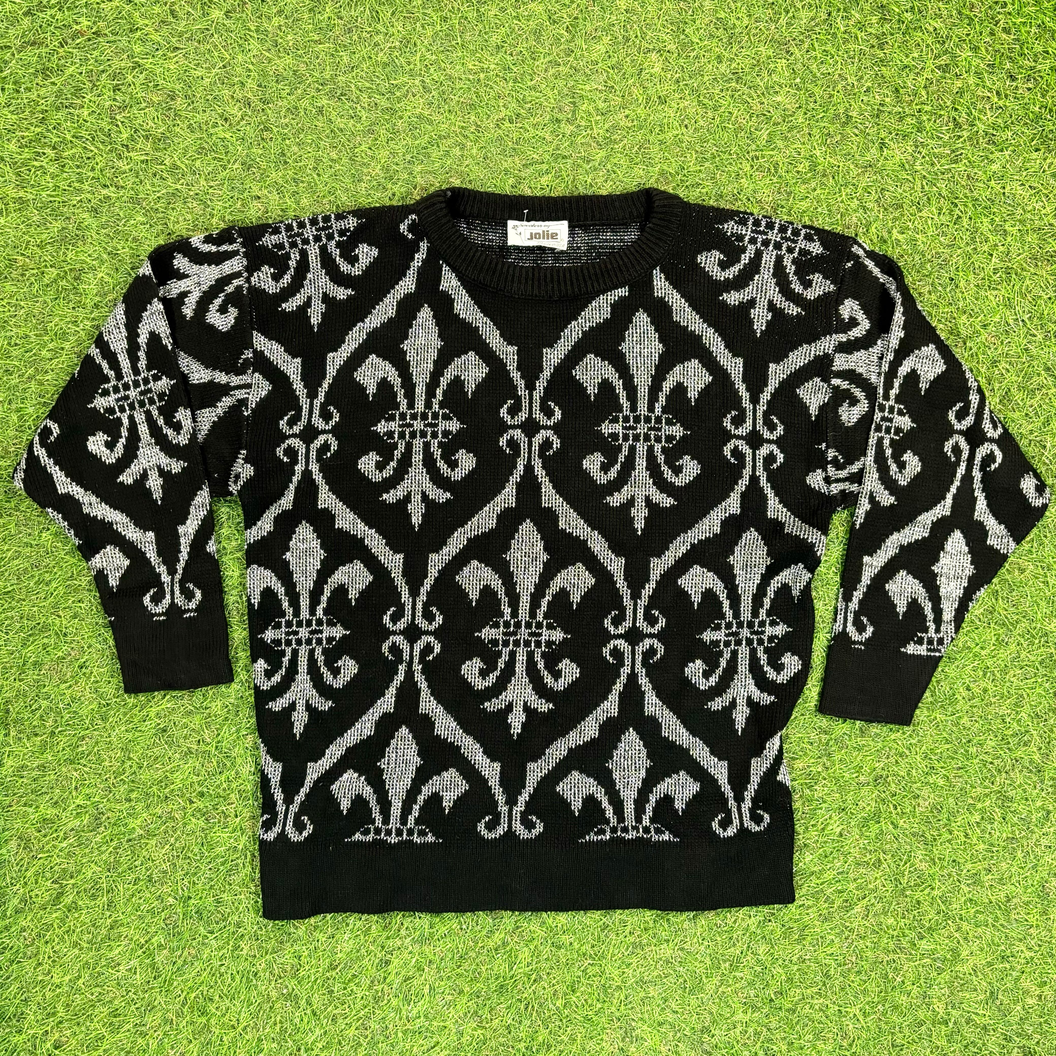 【Lady's】 80s - 90s 百合モチーフ 銀ラメ ブラック ニット セーター / Made In USA アメリカ製 80年代 90年代 古着 Vintage ヴィンテージ 黒 レディース
