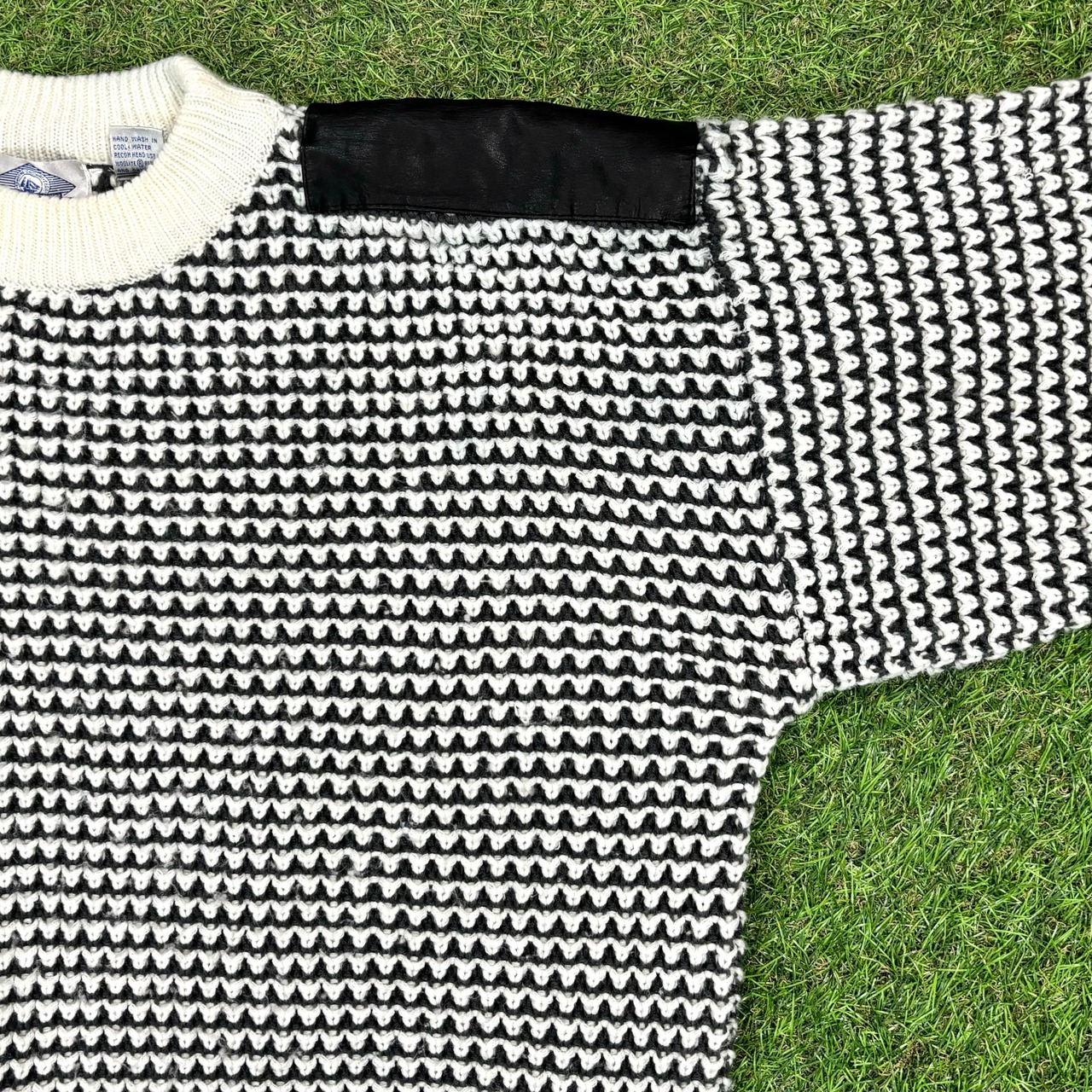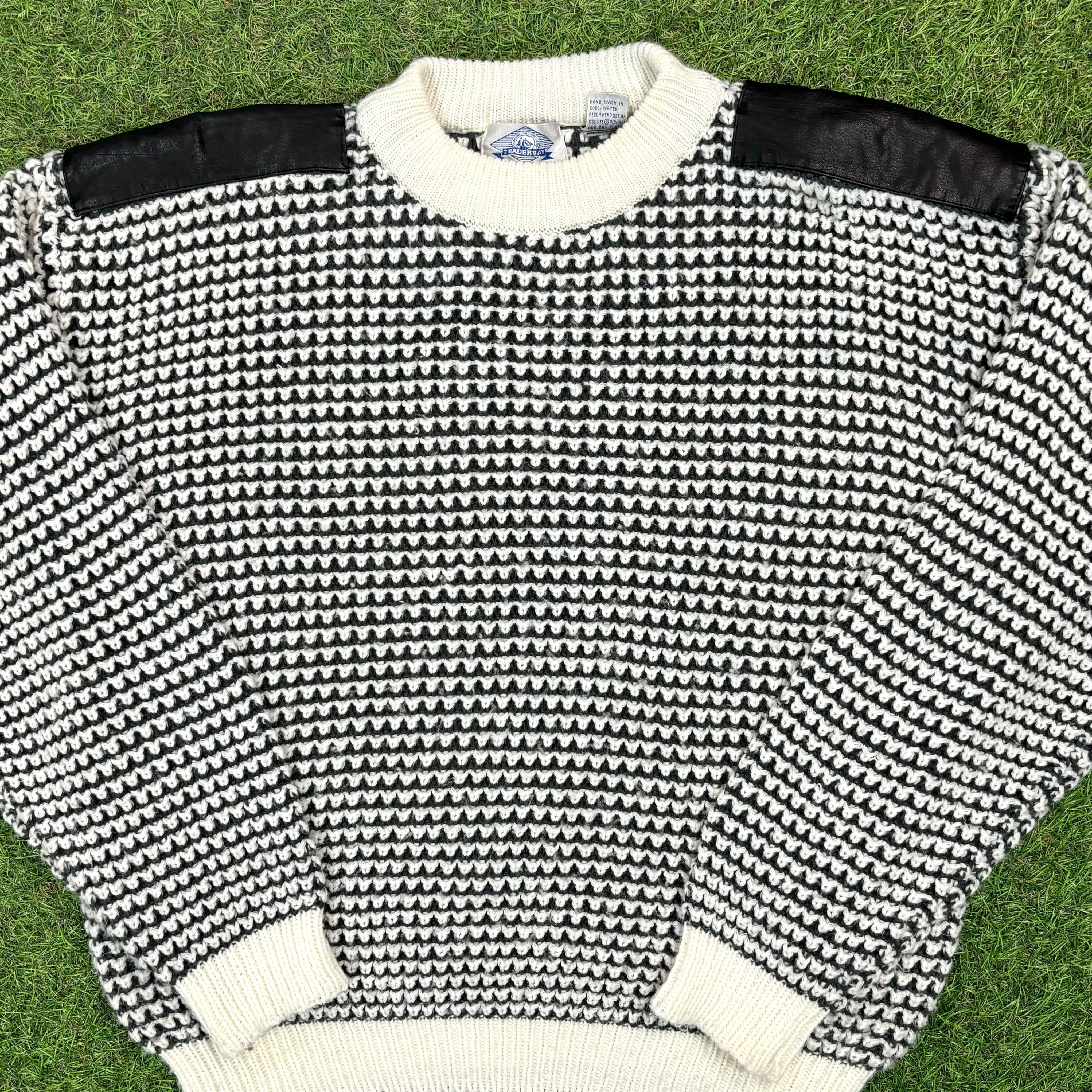 【Men's】 90s レザー切り替えしデザイン アクリル ニット セーター / 90年代 大人古着 Vintage ヴィンテージ 古着