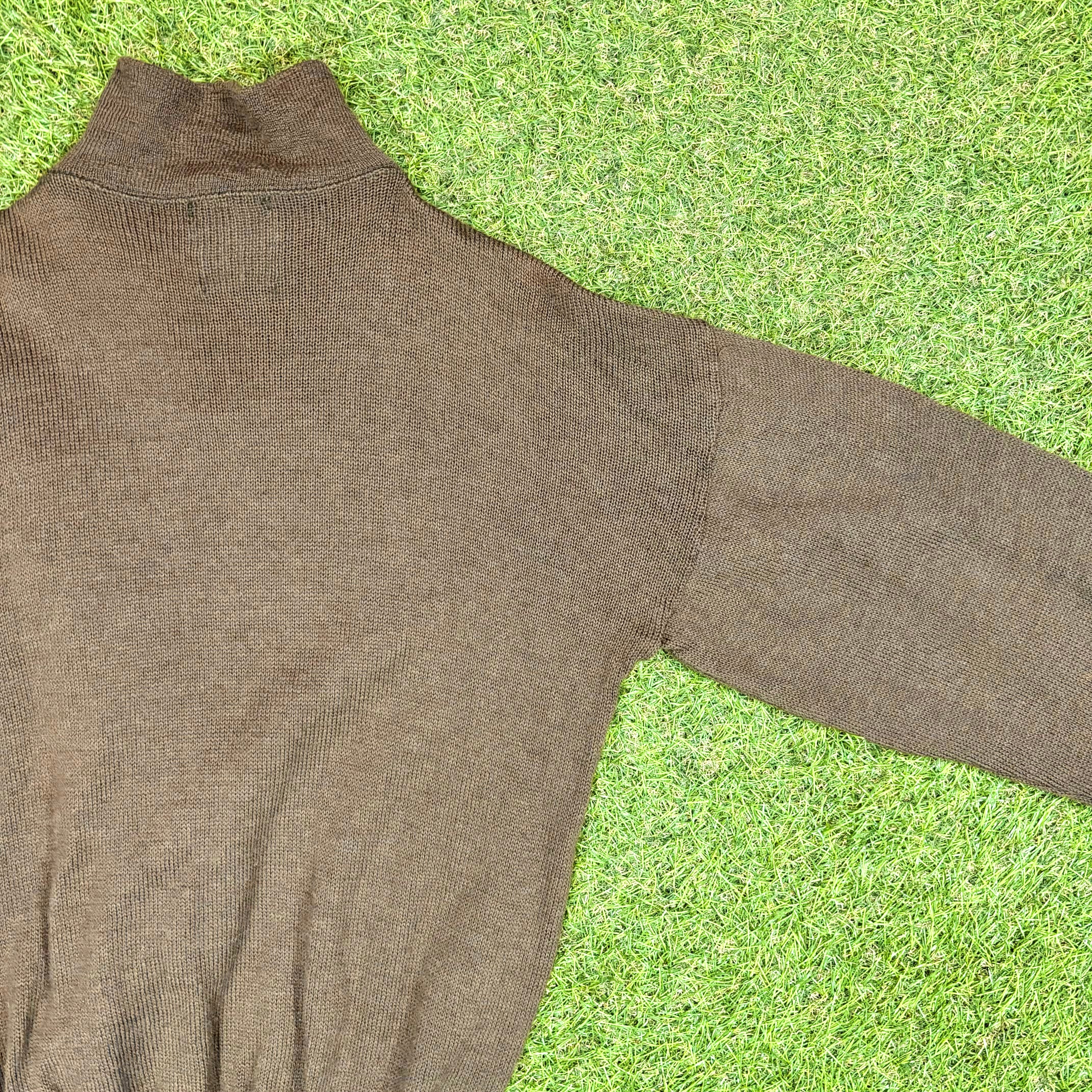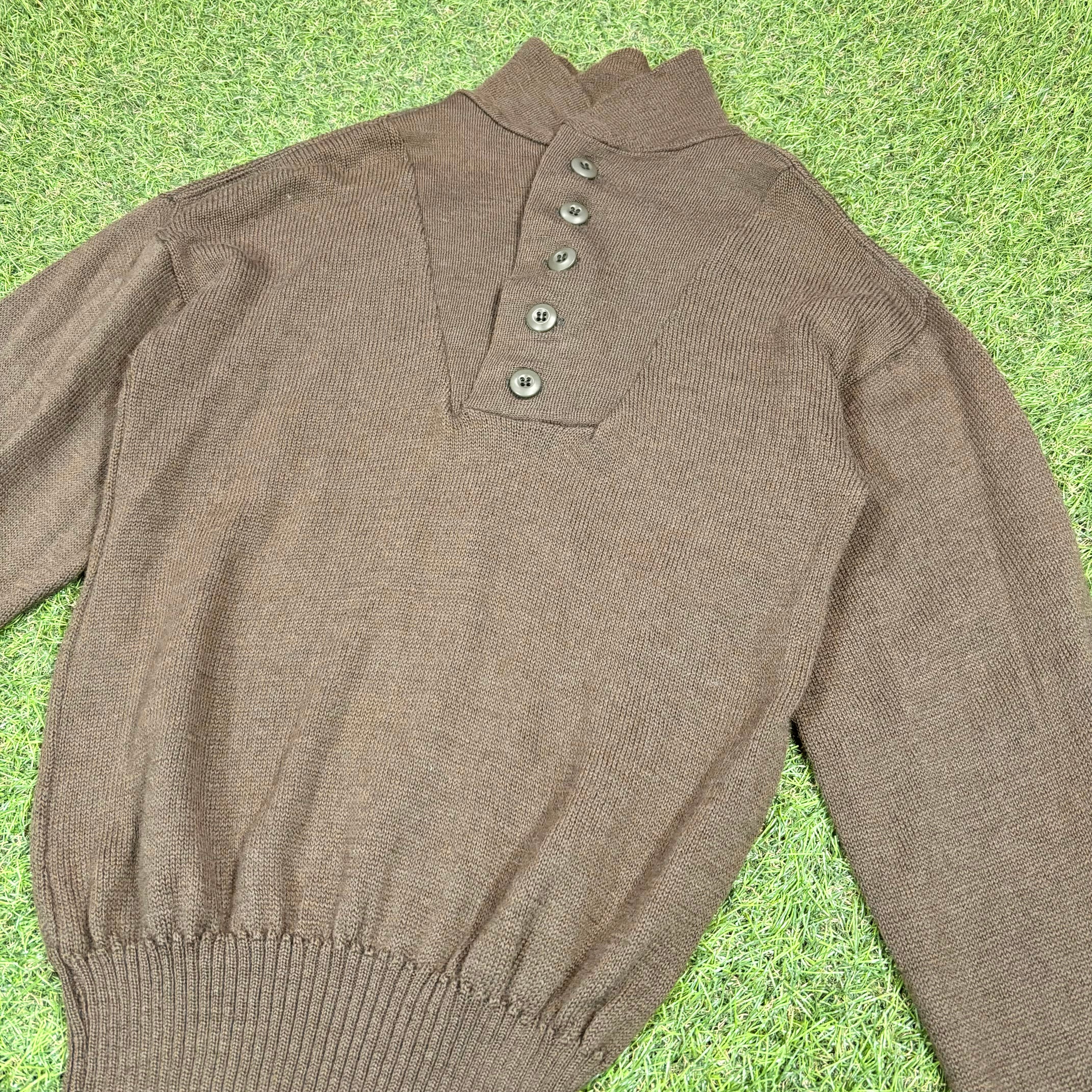 【Men's】 80s US ARMY オリーブ ブラウン ニット セーター / ミリタリー アメリカ軍 カーキ ハーフボタン ヘンリーネック 大人古着