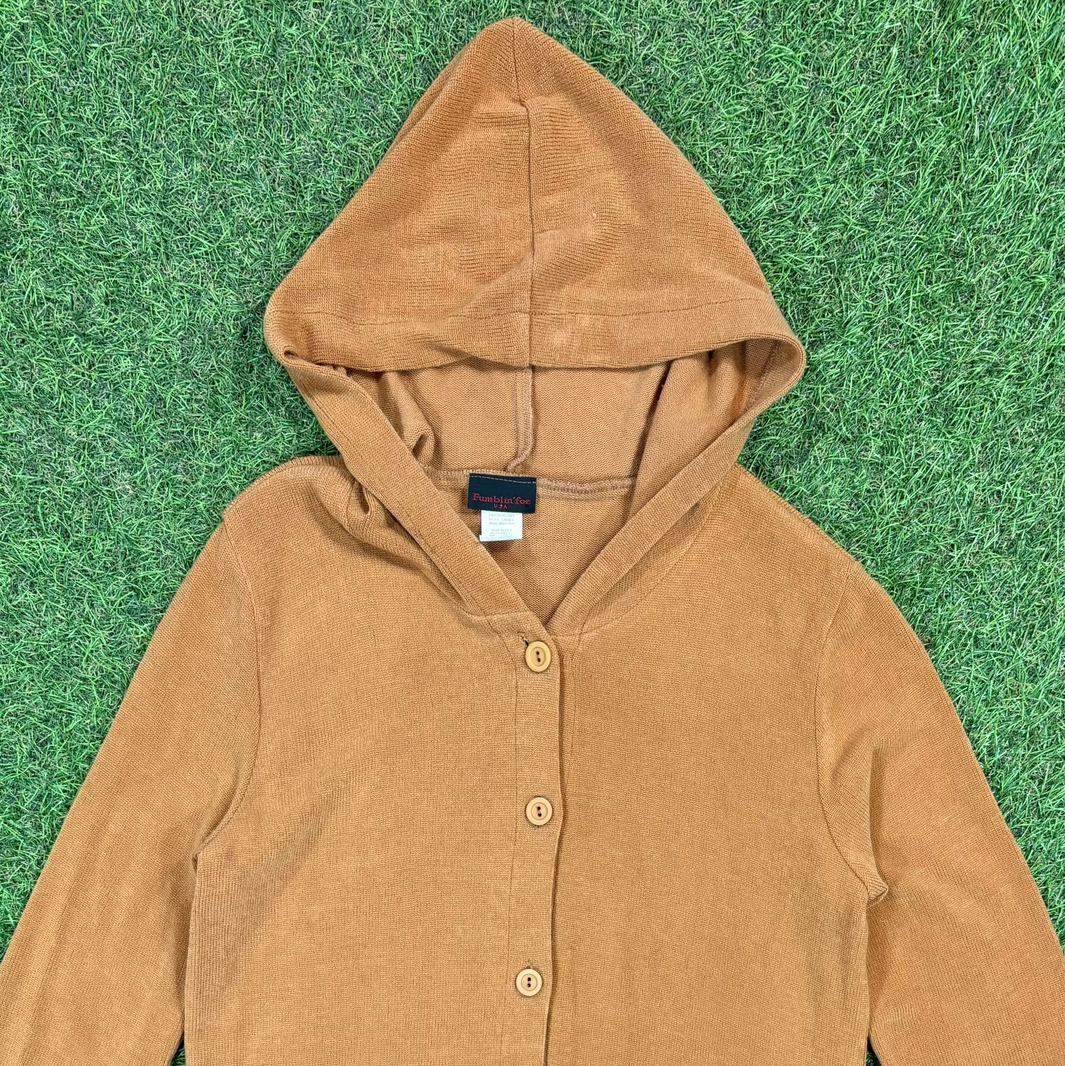 【Lady's】 ブラウン フード付き ロング丈 ニット カーディガン / Made In USA アメリカ製 古着 カーデガン レディース 大人古着