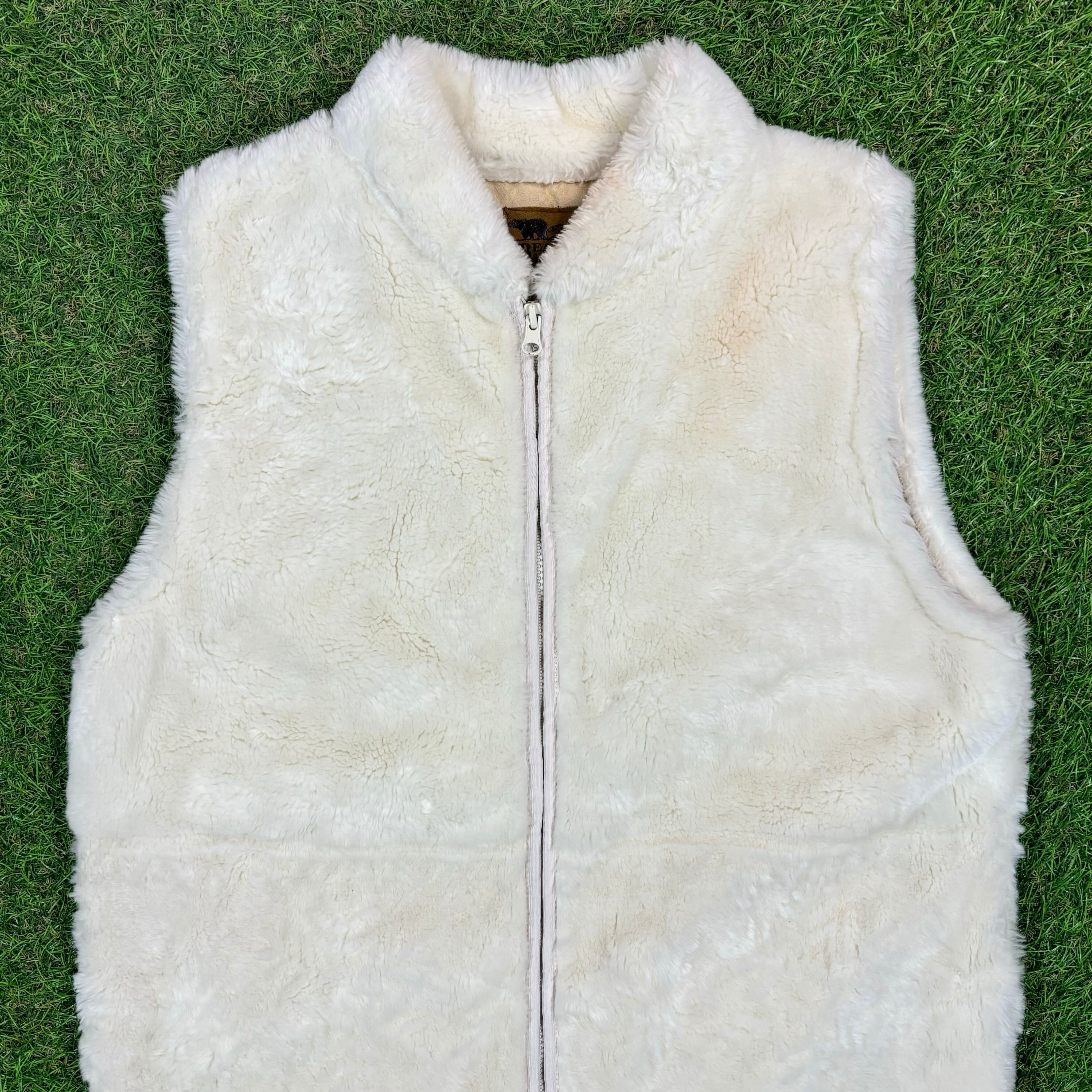 【Lady's】 90s ホワイト ボア ジップアップ ベスト / Made In USA アメリカ製 90年代 古着 白 ジップベスト