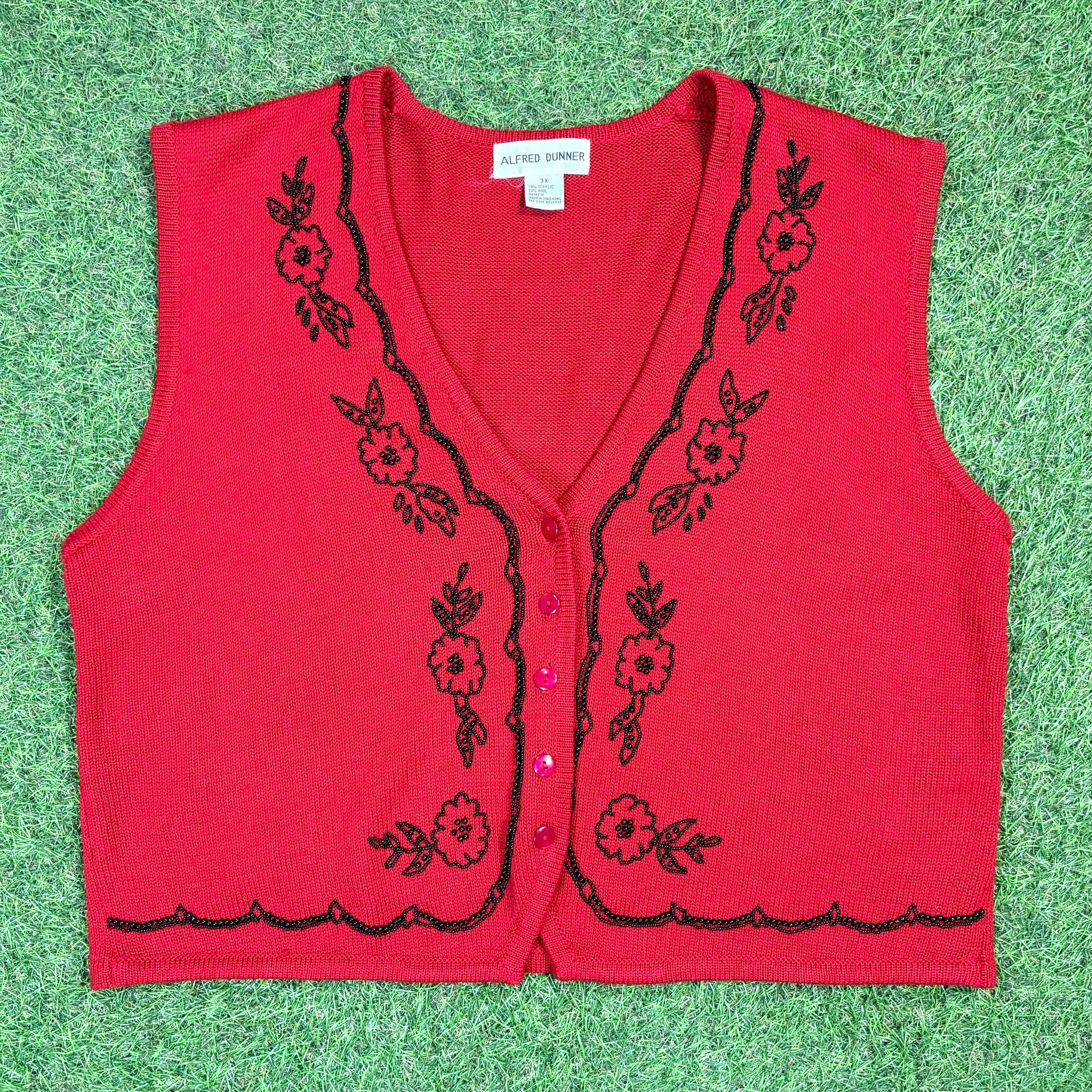 【Lady's】 90s オーバーサイズ ニット デザイン ベスト / 90年代 古着 赤 レッド レディース Vintage ヴィンテージ