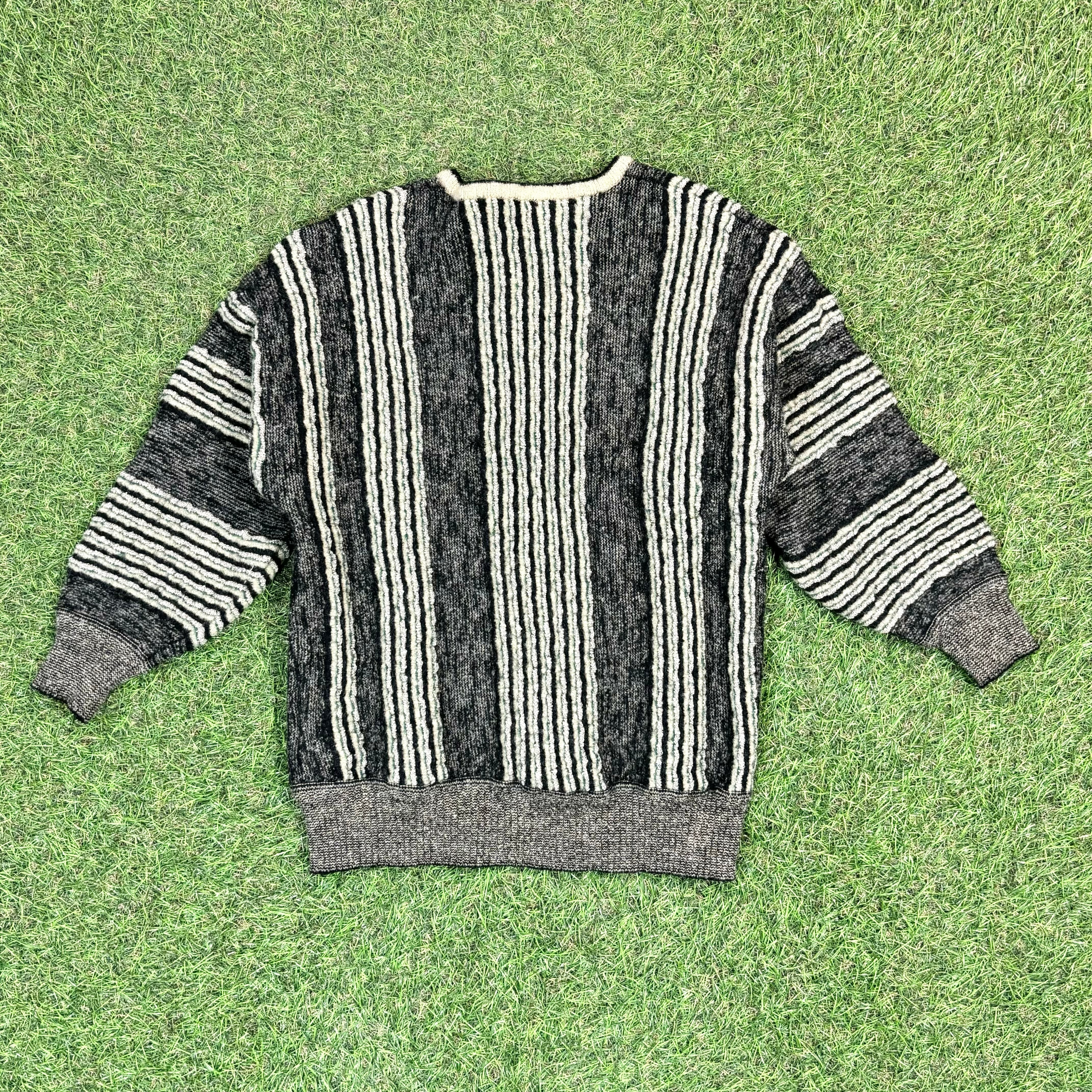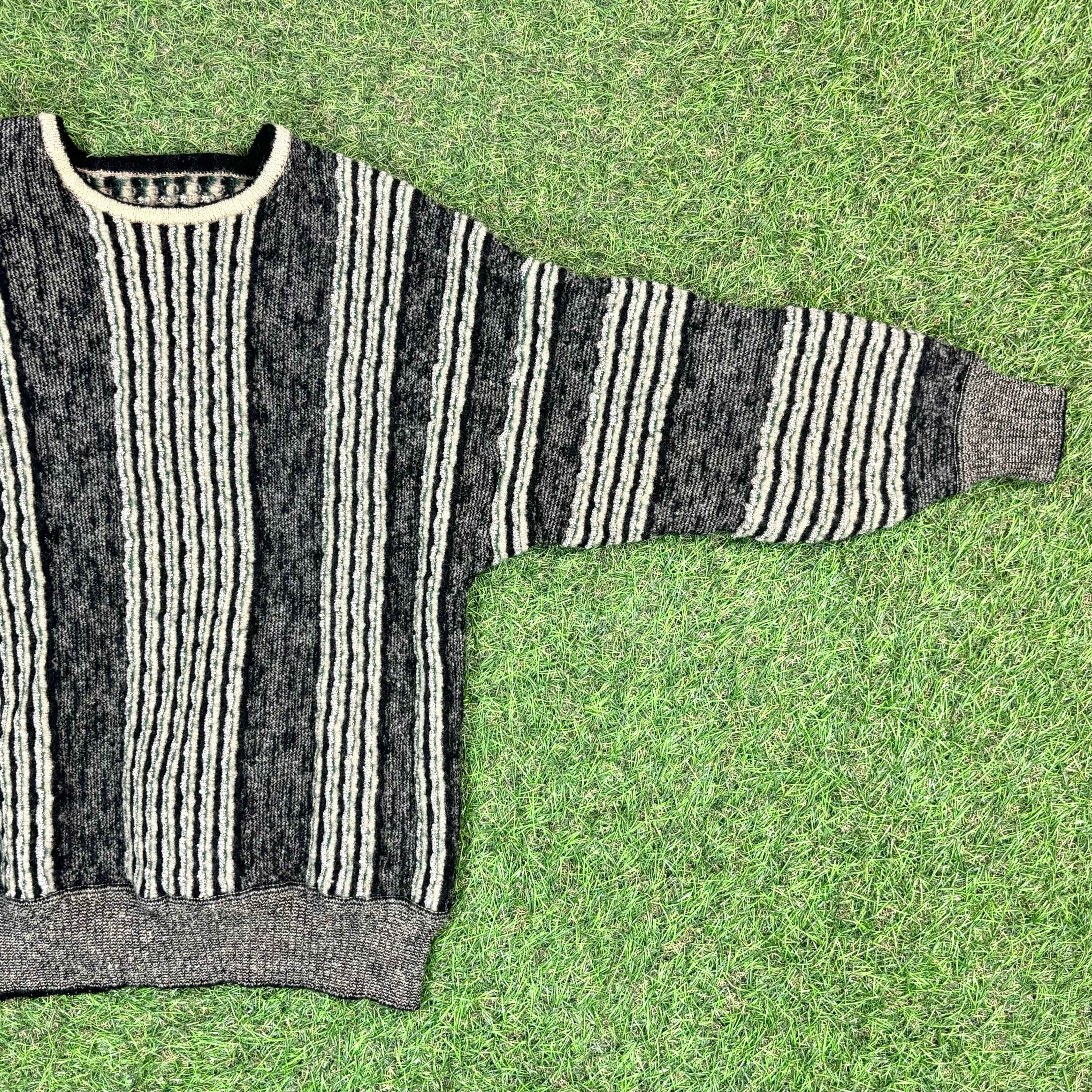 【Lady's】ストライプ 7分袖 3Dニット セーター / Made In USA アメリカ製 ニット 立体 レディース トップス 大人古着