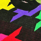 【Lady's】 90s カラフル デザイン アクリル ニット セーター / Made In USA 90年代 古着 アメリカ製 トップス 黒 ブラック レディース