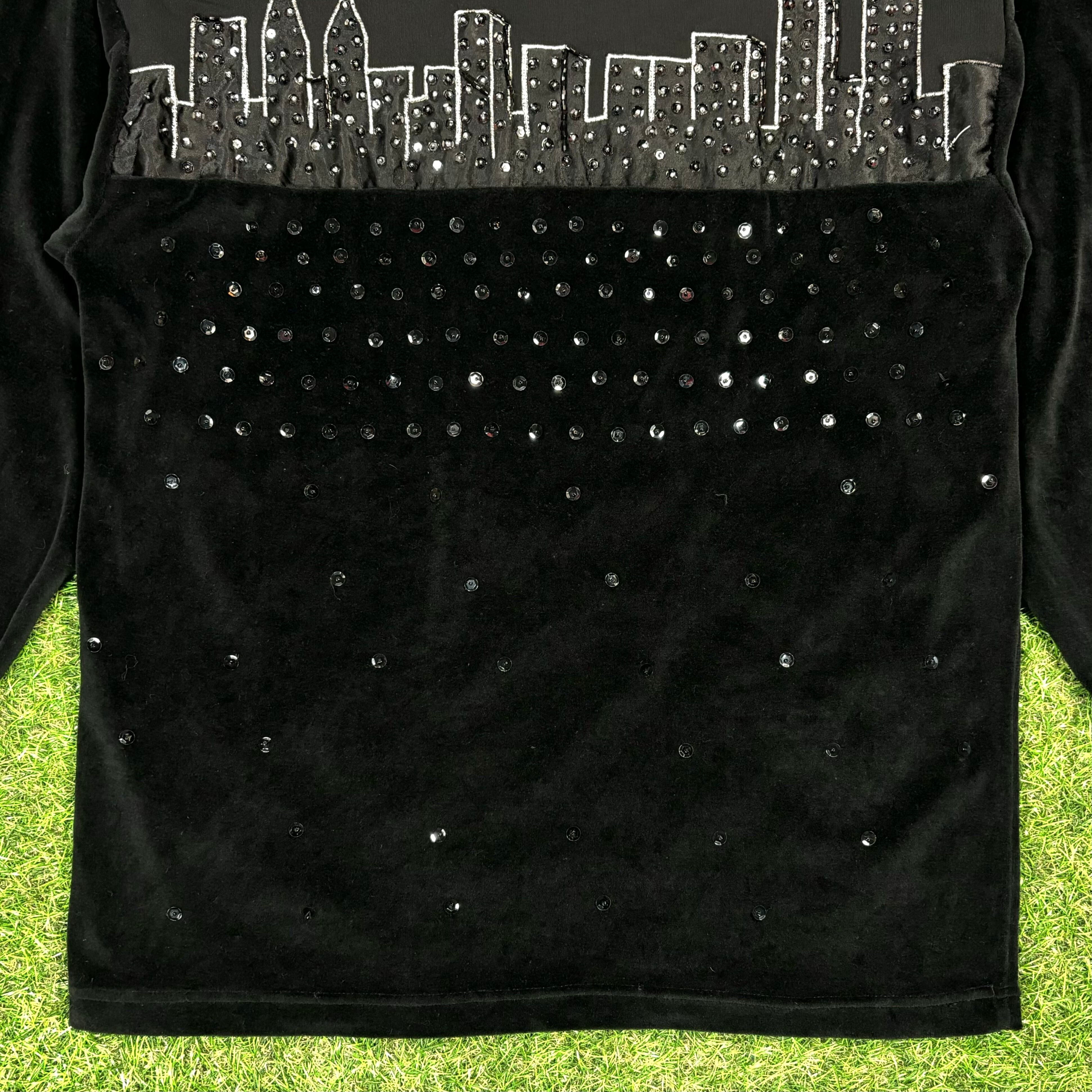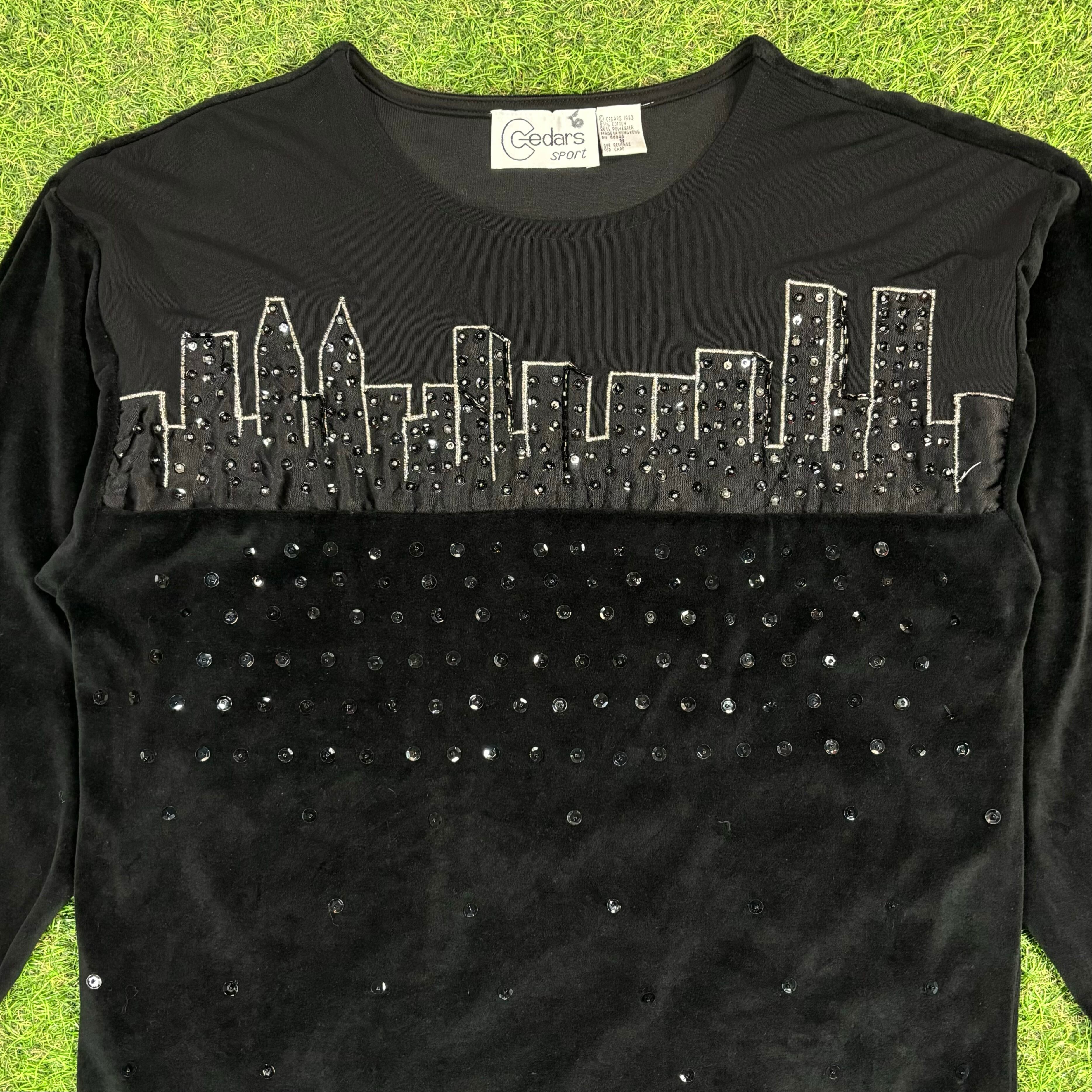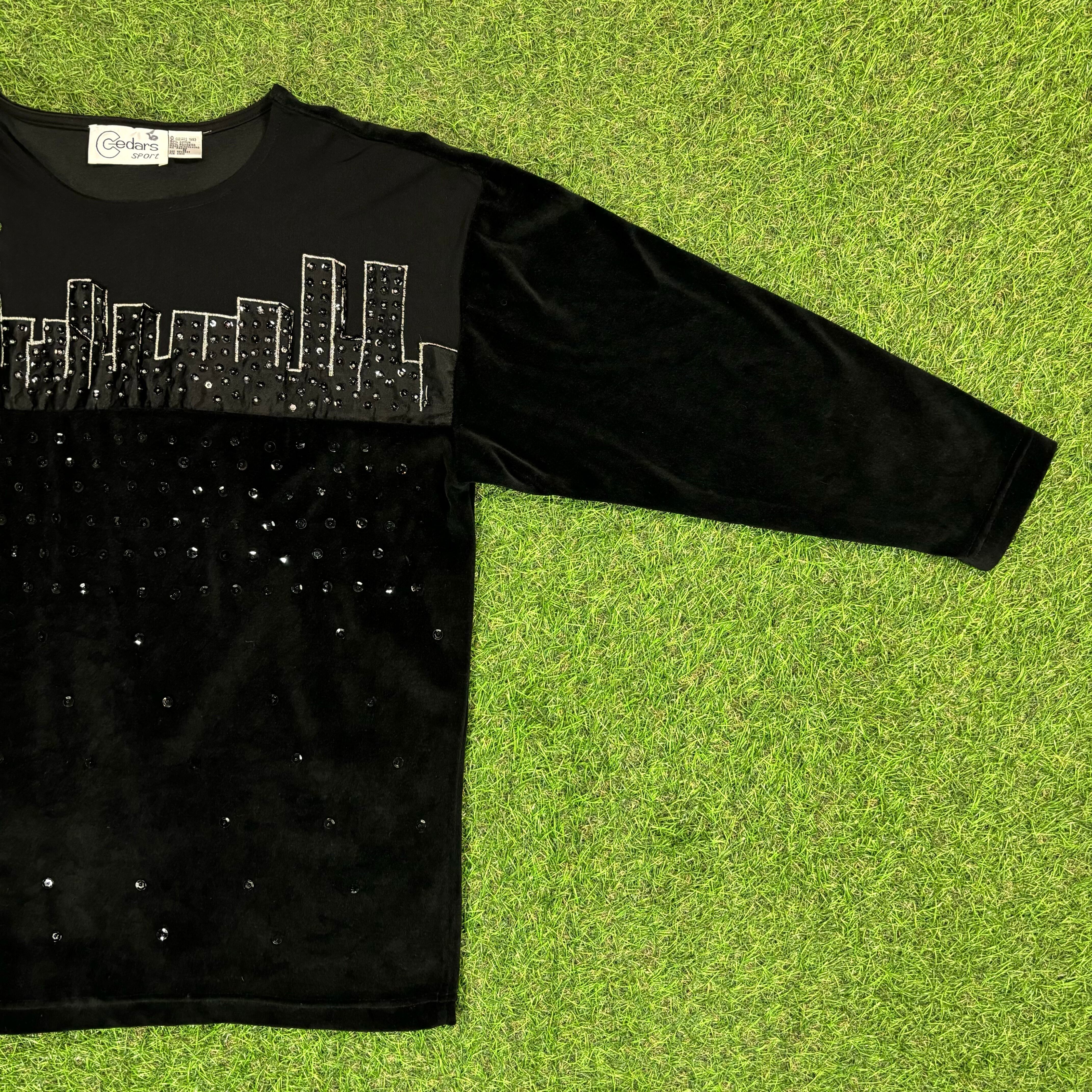 【Lady's】 80s ベロア & シアー 素材 ブラック トップス / 80年代 古着 レディース Vintage ヴィンテージ モノトーン 白黒