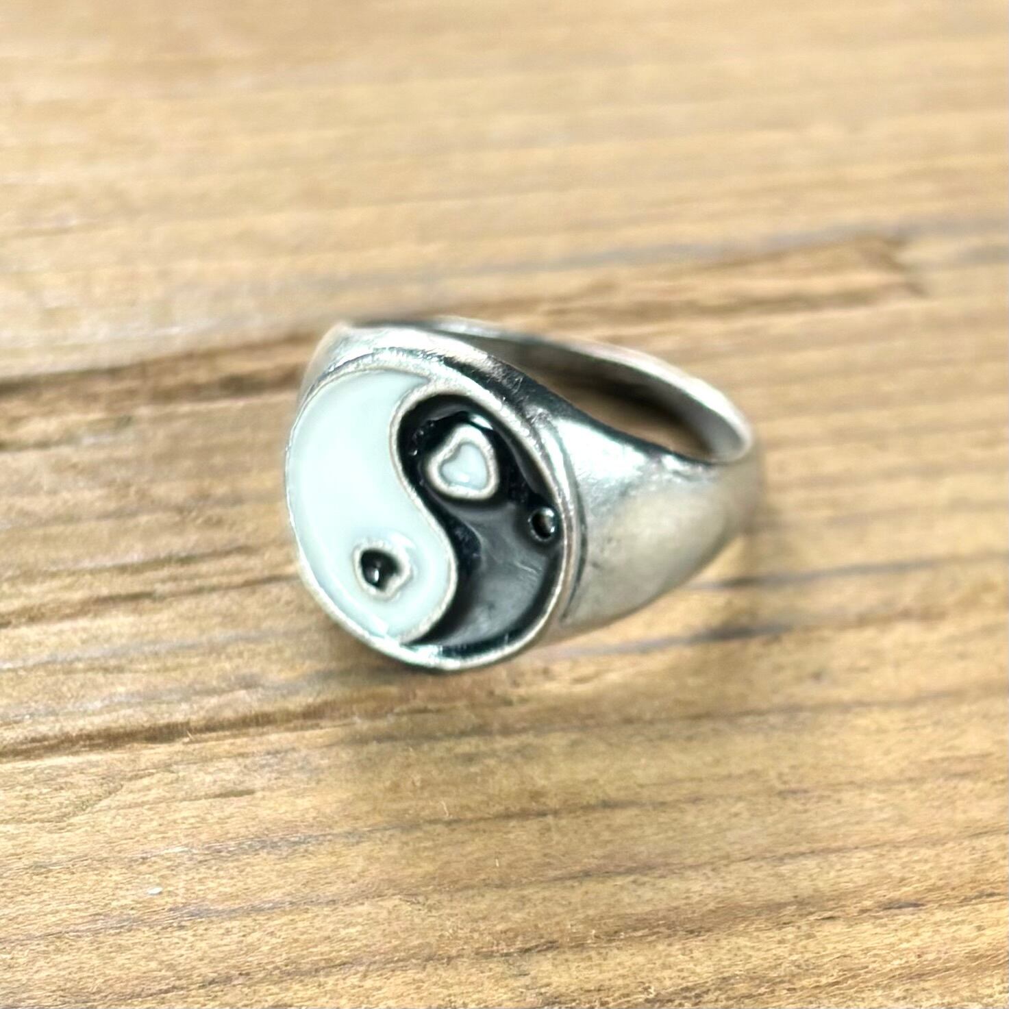 【Unisex】ハート 陰陽 リング 11号 B / 古着 yin yang ヒッピー 指輪