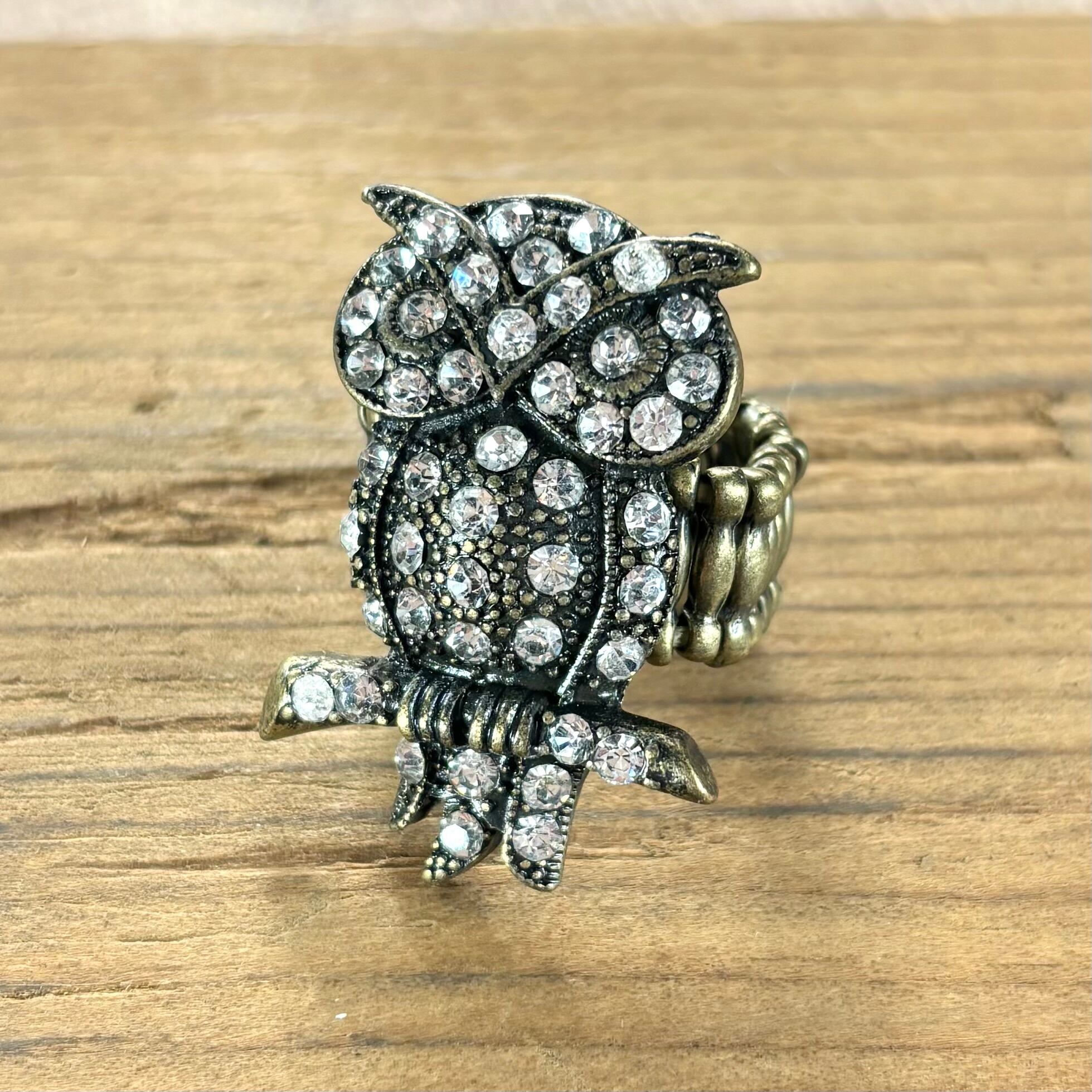 【Unisex】フクロウ ビジュー デザイン リング / アクセサリー ゴム 指輪 鳥