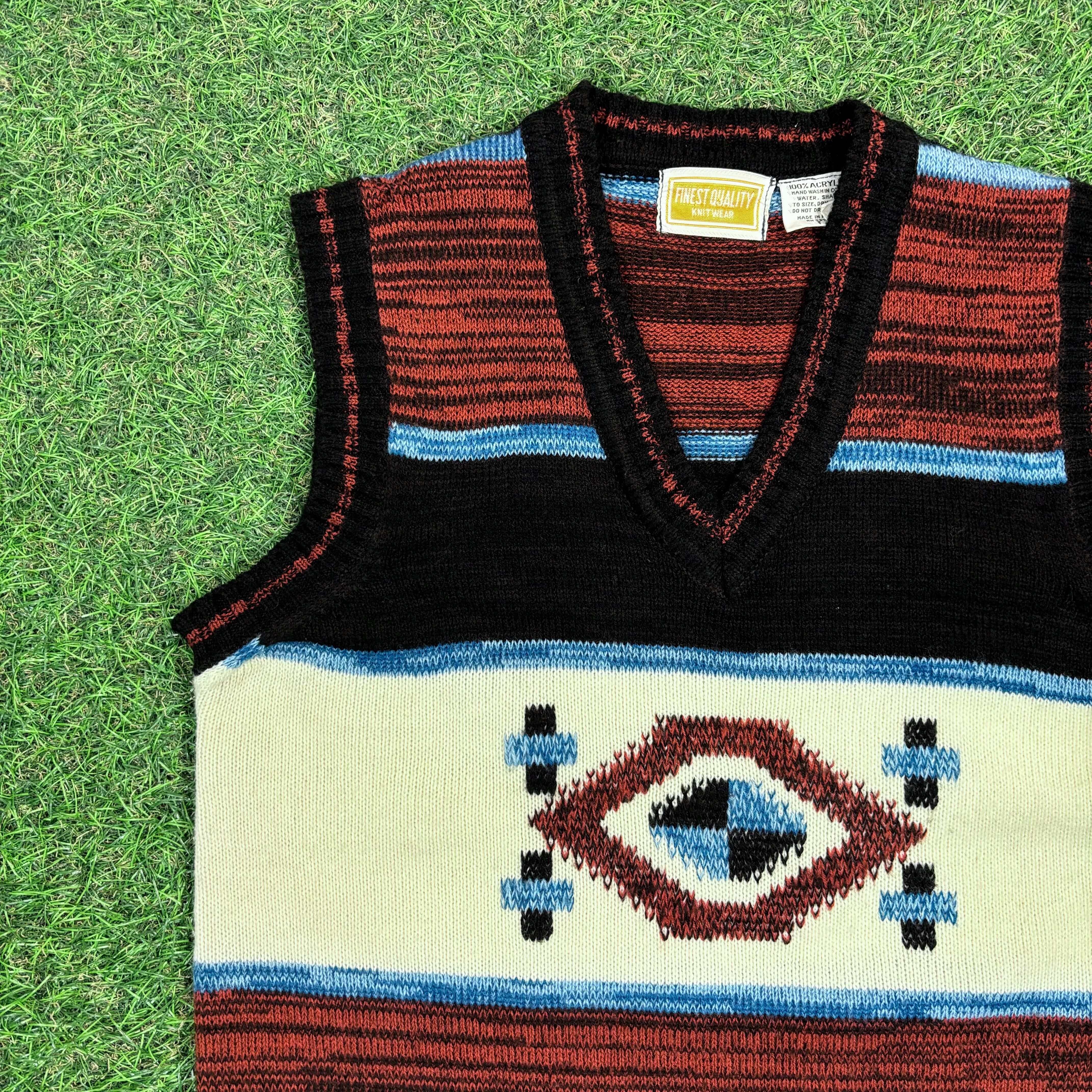 【Lady's】 70s ネイティブ 柄 アクリル ニット ベスト / 70年代 古着 レディース ニットベスト Vintage ヴィンテージ
