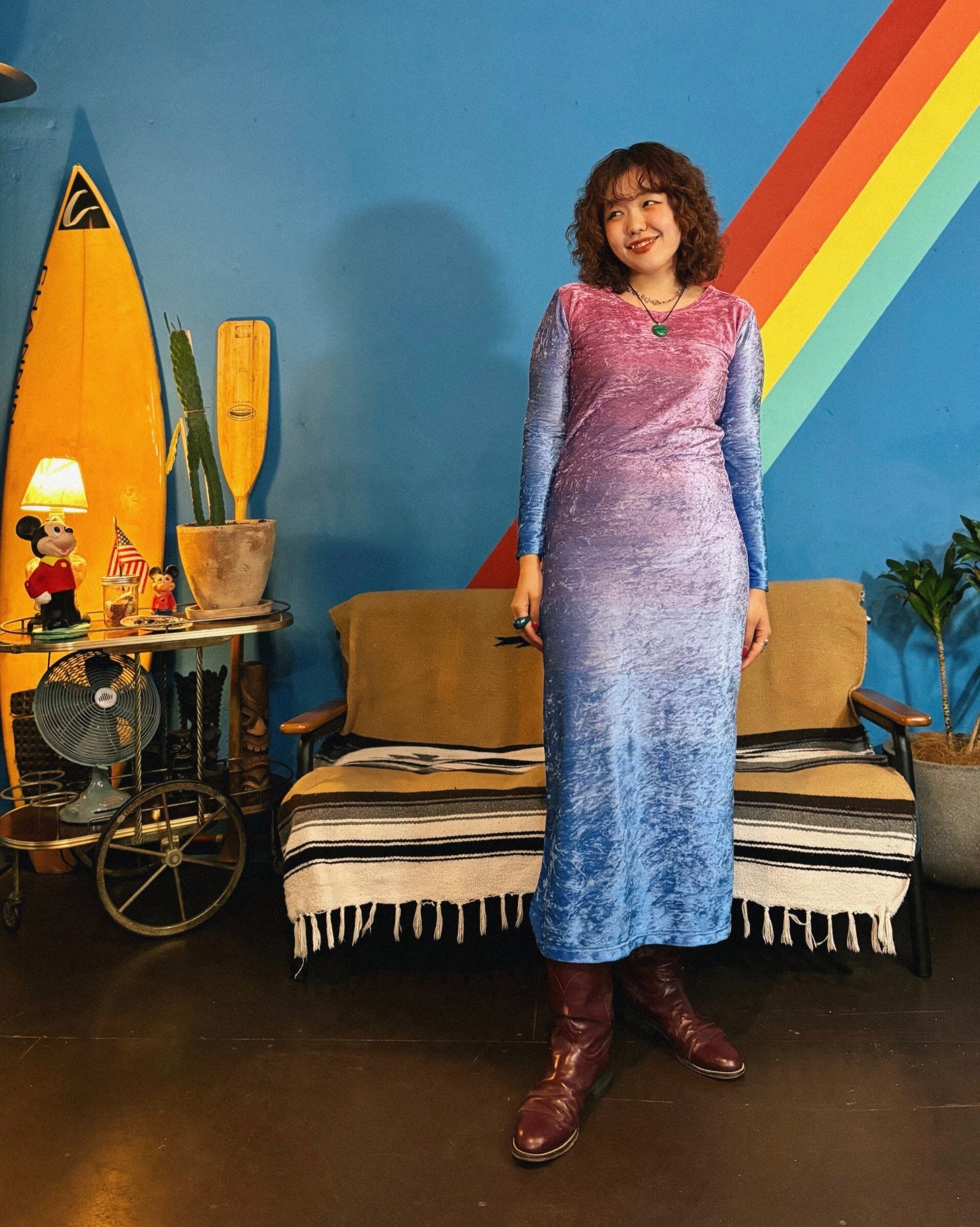 【Lady's】 ユニコーン カラー ベルベット ロング ワンピース / 古着 ワンピ レディース カラフル